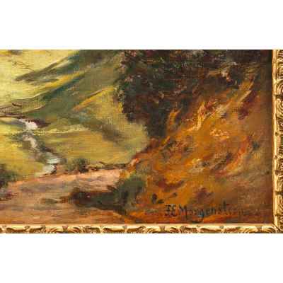 Friedrich Ernst Morgenstern (Frankfurt 1853-1919) — немецкий пейзажист. Сын Карла Моргенштерна, последний представитель крупной династии живописцев. В 1872г., после окончания своего художественного обучения он регулярно бывает в Париже, однако до 1887г. постоянно возвращается во Франкфурт, где он брал уроки живописи у Иоганна Генриха Хасзелхорста, Густава Кауперта и Эдуарда фон Штайнле, одновременно работая в художественном ателье его отца. Регулярно бывал в творческих командировках в Англии, Шотландии, Франции, Голландии, Бельгии и Италии. После смерти его отца в 1893г. увлекается импрессионизмом и под влиянием этого художественного направления вырабатывает иную манеру письма.