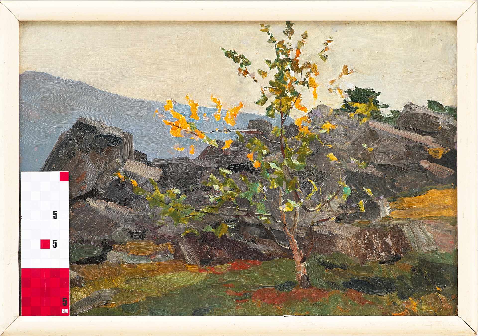 На основании стилистического и технологического сходства с эталонами, принадлежность исследуемой работы кисти уральского художника А. Бурака подтверждается.
