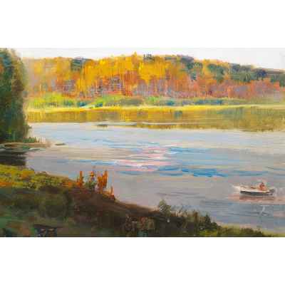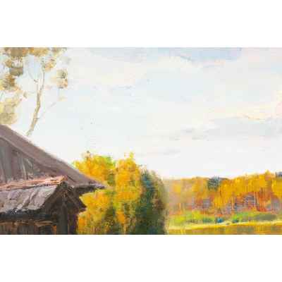 Представлен типичный пейзаж, написанный в соответствии с композиционными принципами советской пейзажной живописи второй четверти XX в. Композиция и подбор колорита также соответствует свойственным для живописи того времени принципам, составляющим традицию пейзажей такого типа. Избранная автором тема пейзажа и манера письма воспроизводит художественные принципы работ С. В. Герасимова (1885-1964).