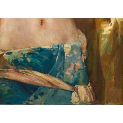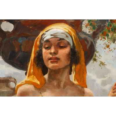 Произведение принадлежит кисти неизвестного художника, работавшего в стиле модерн на рубеже XIX - XX вв. Этот период был ознаменован появлением новых идей, образов и сюжетов. Цветовые соотношения предстают в сложном взаимодействии. Цвет декоративен и насыщен, напоен щедрой радостью бытия. Художник был вдохновлён работами Жана Леона Жерома, блистательного французского художника, воспевшего экзотику Востока.
