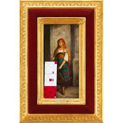 Образ театрально одетой женщины или девочки, напоминающей собой испанку или цыганку , написанной в стилистике салонной живописи, характерен для творчества французского художника А. Вийона (А. Villon).