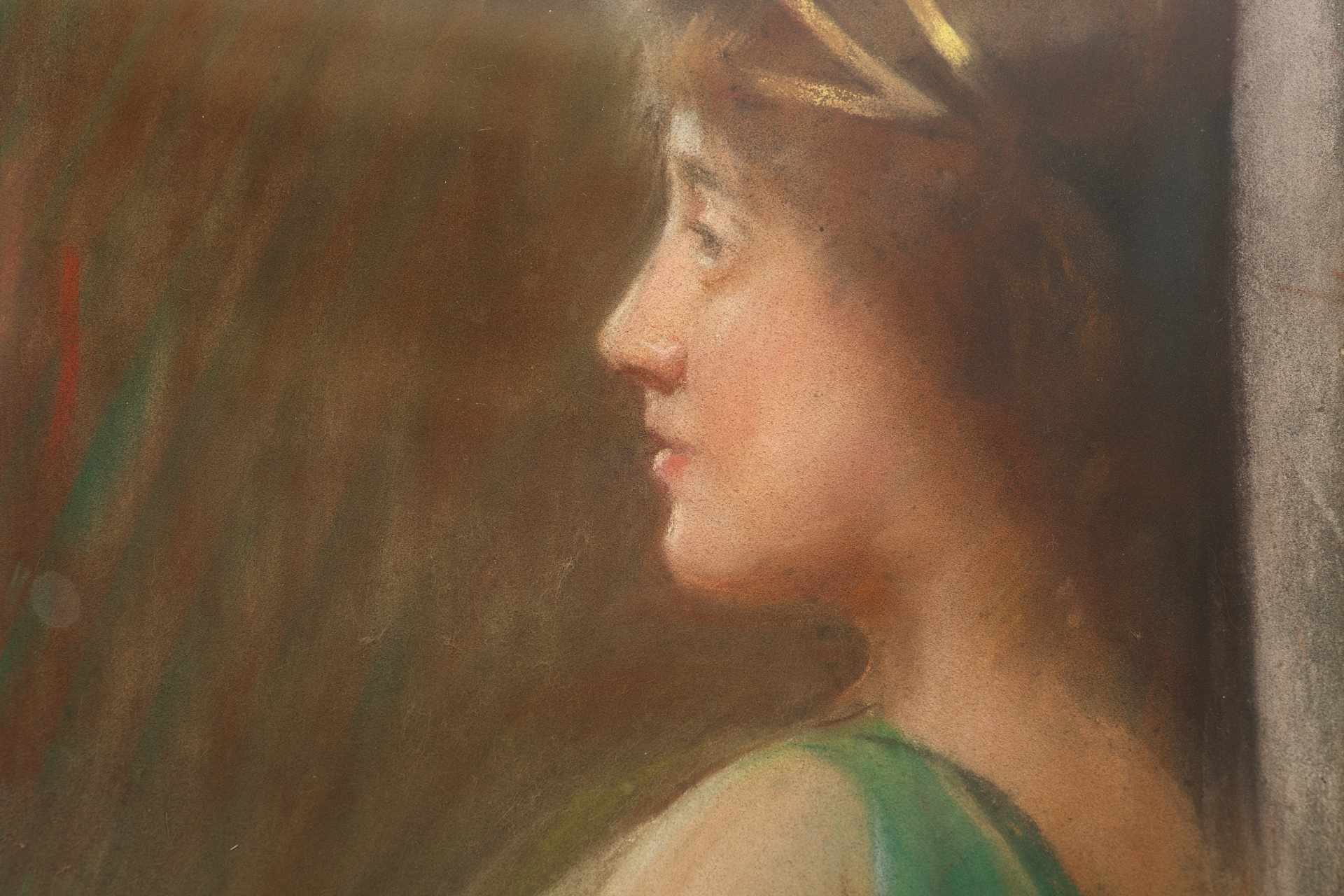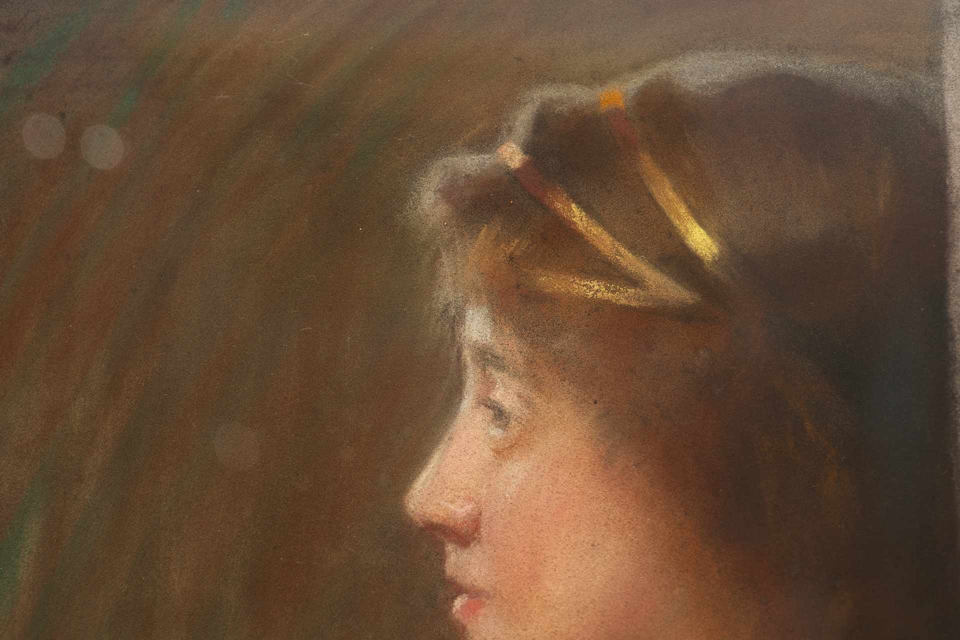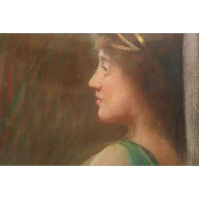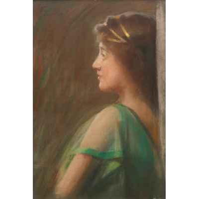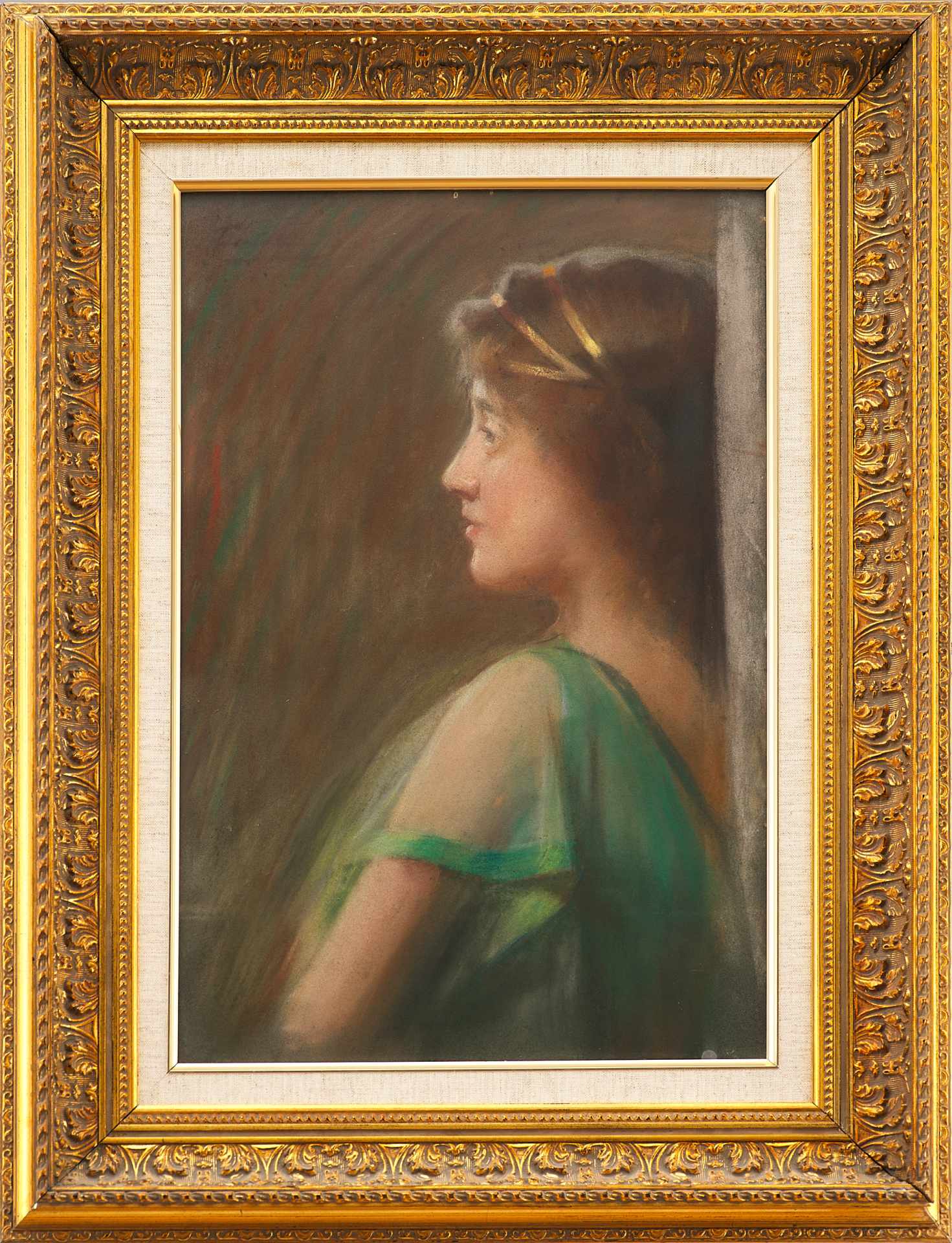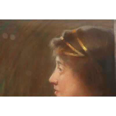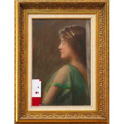Подлинность работы не вызывает, сомнений. На обороте бумажная наклейка, указывающая автора произведения — Михаил Михайлович Бабут художник, адрес его проживания и с надписью чернилами: №4 «Женская головка» (пастель). Цена 100 руб.