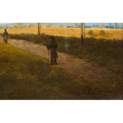 Внизу справа подпись: «I. Тіссіпо». Подпись имеет общий с живописью характер старения. Подпись лежит «в тесте» авторской живописи и совпадает с характером старения красочного слоя картины.