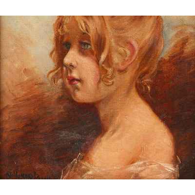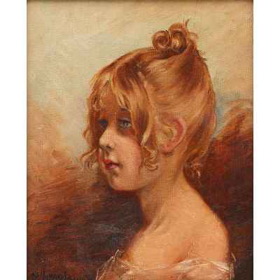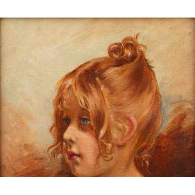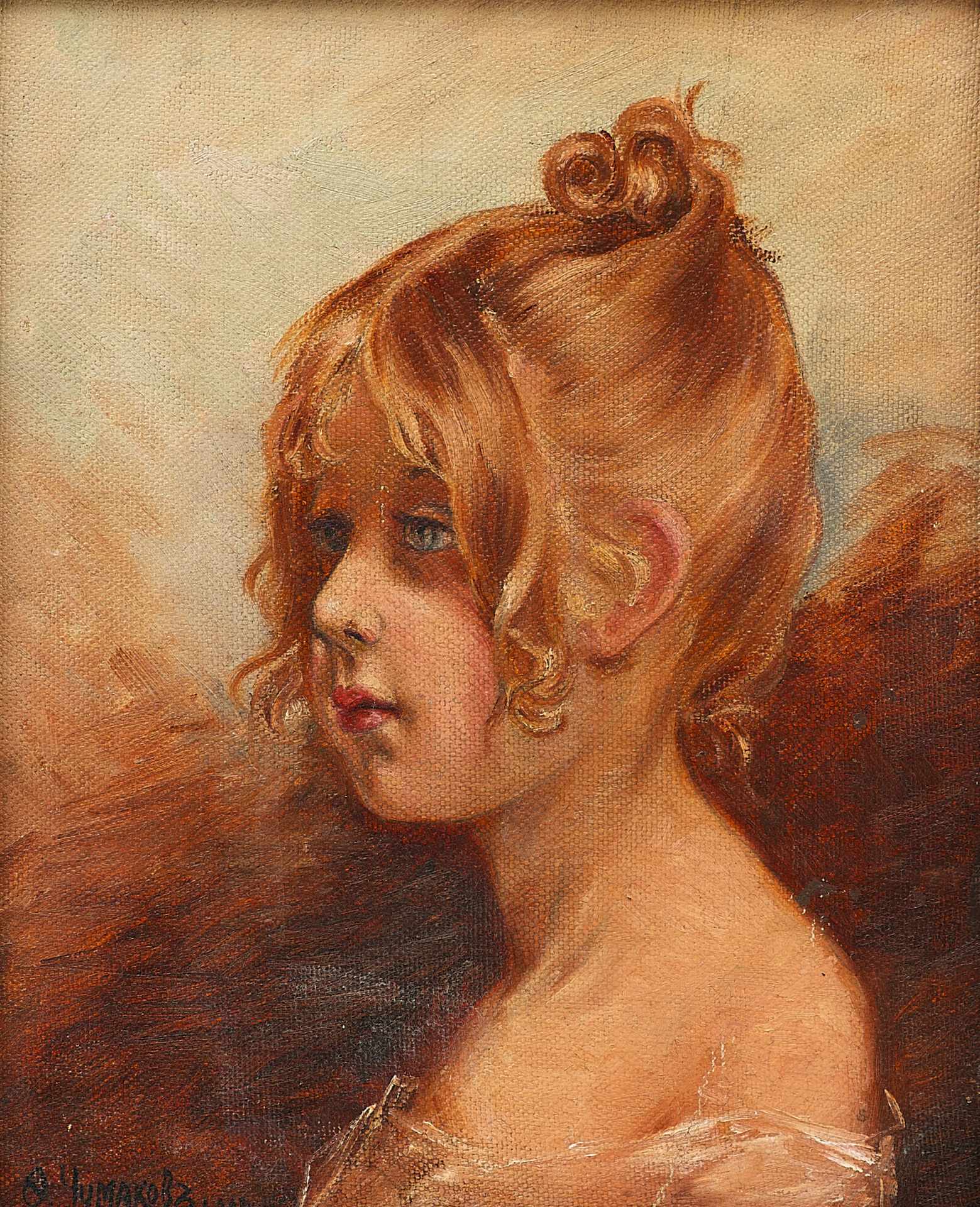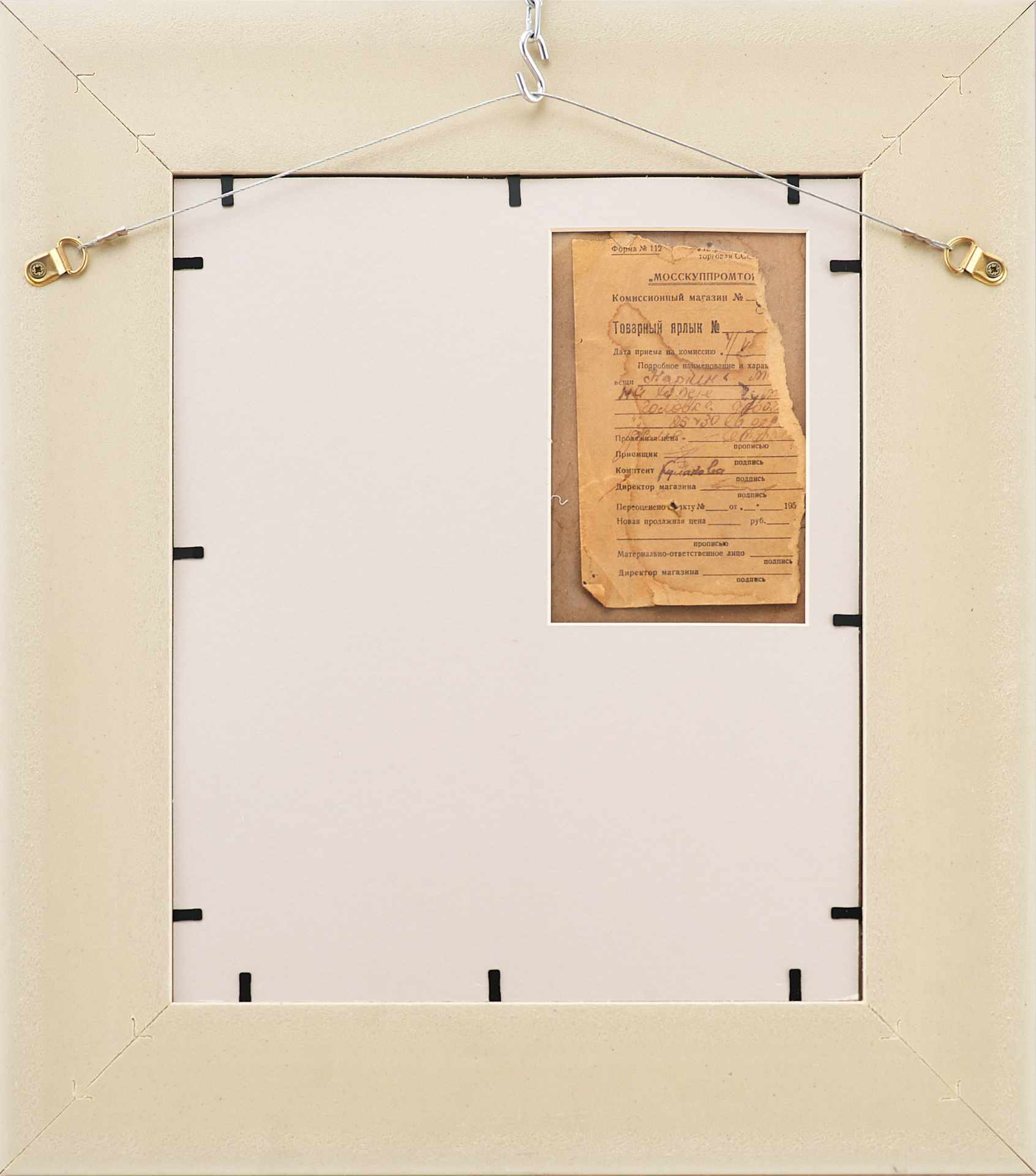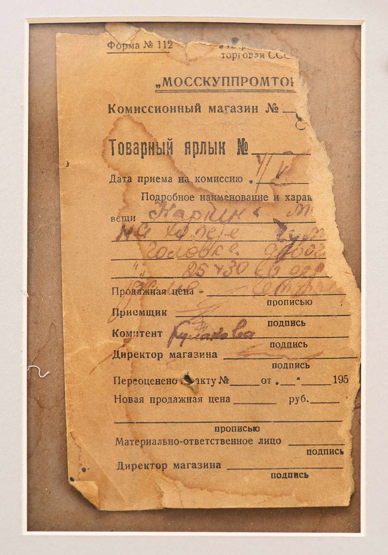 На обороте имеется бумажная наклейка Москуппромторга 1950-х гг. с указанием автора, названия картины, а также иных данных: «Коркин м(асло) на холсте Чум(аков) Головка девоч(ки) 25x30 в дер(евянной) раме». Состояние использованных в работе материалов соответствует указанной датировке - начало XXв. Работа выполнена на профессиональном уровне.
