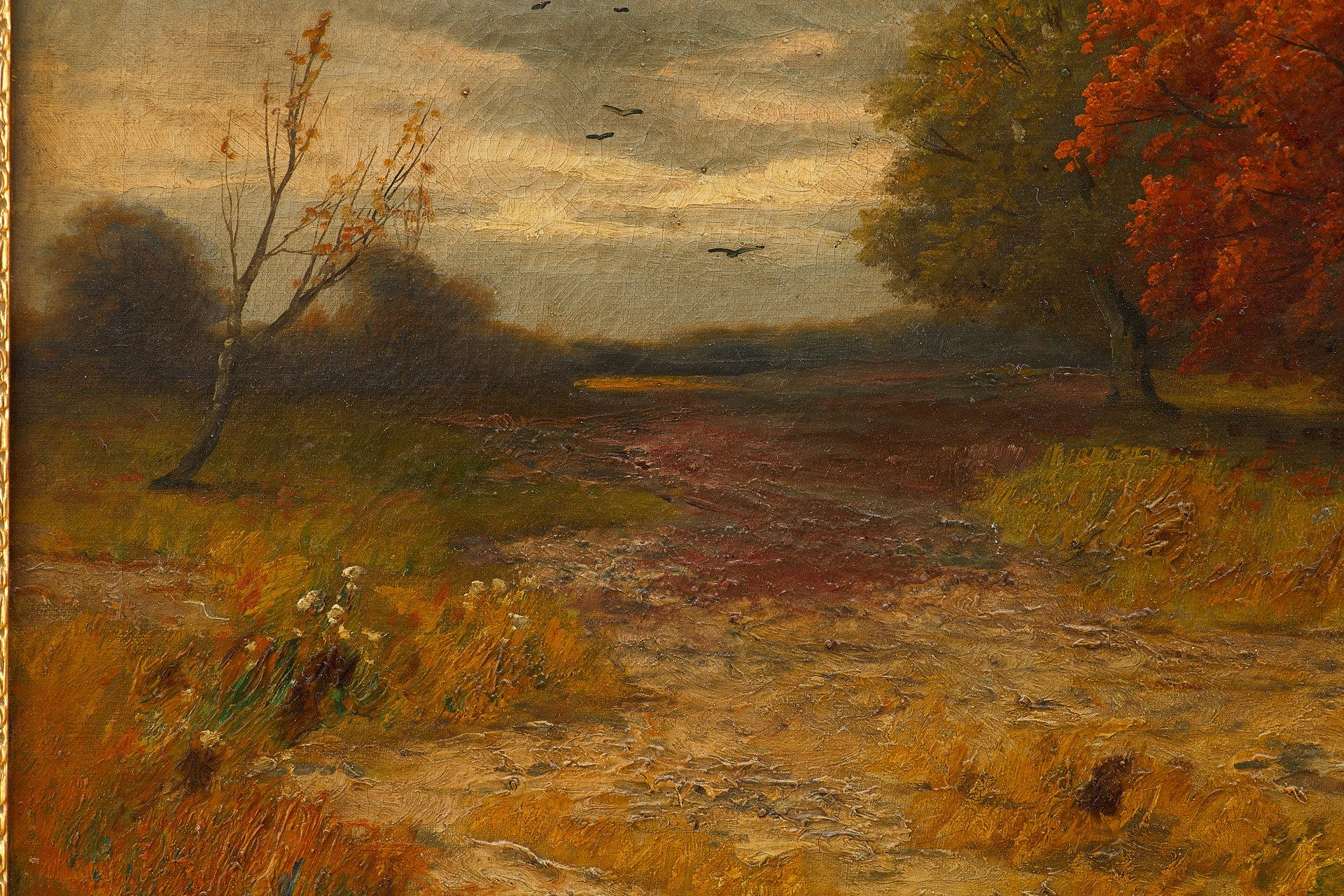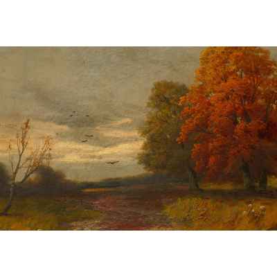 В современном контексте работа представляет коллекционный интерес, особенно для частных собраний и интерьерных решений в духе классической или загородной эстетики. Это декоративно завершённое произведение, отражающее культурные вкусы своего времени и эстетическую тягу к изображению природы в переходный сезон.