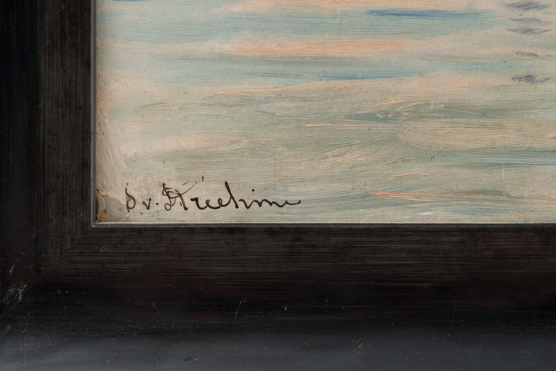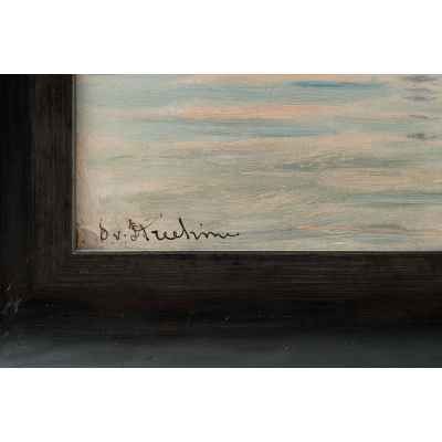 Картина выполнена Стефанией фон Стрешин (Stefanie von Strechine, 1858–1940) — немецкой художницей русского происхождения, специализировавшейся на морских и прибрежных пейзажах. Родившись в Одессе, она обучалась в Мюнхенской академии художеств под руководством профессора Виллройдера и с 1881 года жила и работала в Мюнхене. Её творчество сочетает романтические элементы с техникой, вдохновлённой импрессионизмом, что выражается в мягкой цветовой палитре и живом, подвижном мазке.