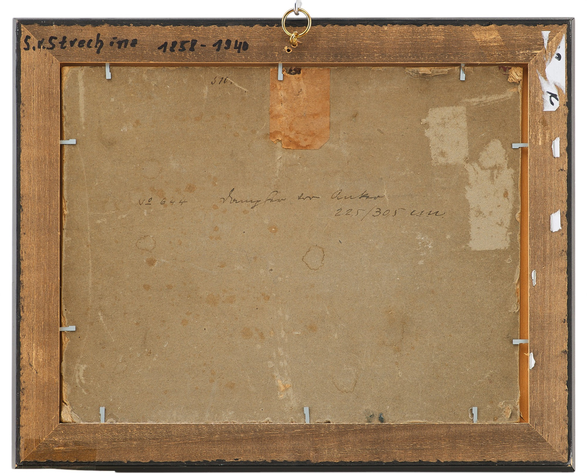 Слева внизу находится авторская подпись: S. v. Strechine, признанная подлинной, сопоставимой по характеру с другими работами художницы. Стефания фон Стрешин активно выставлялась с конца XIX века, в том числе в Лондоне, а её произведения высоко ценились, включая приобретение работы «Тифлис» принцем-регентом Леопольдом во время его пребывания в Санкт-Петербурге.