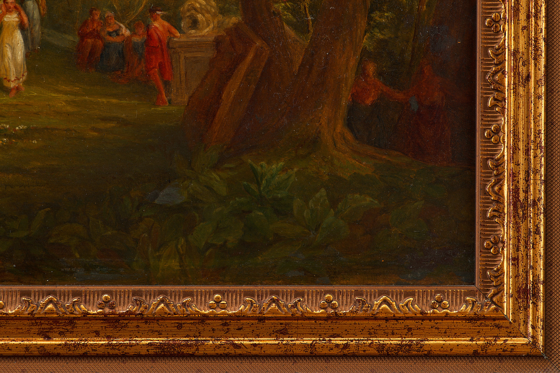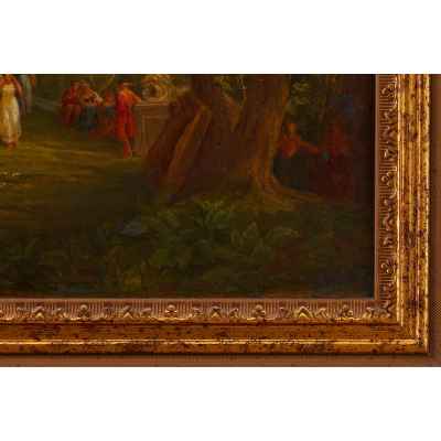 Работа датируется концом XVIII века, что соответствует зрелому периоду европейского классицизма, предшествующего подъёму романтизма. Картина написана маслом на дереве, что говорит о предпочтении художником плотной и тёплой основы, придающей композиции глубину и устойчивость цвета.