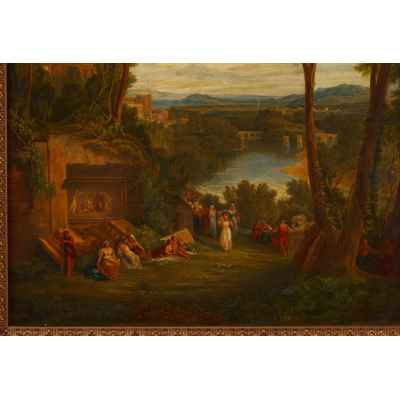 Автор картины неизвестен, однако по манере исполнения и стилистике можно отнести его к кругу французской академической школы XVIII века. Художник демонстрирует высокую профессиональную подготовку, свойственную мастерам, ориентировавшимся на образцы Клода Лоррена и Никола Пуссена — признанных столпов классицизма, чьи пейзажи отличались архитектурной логикой и тематическим возвышением.