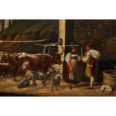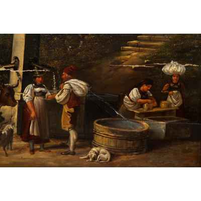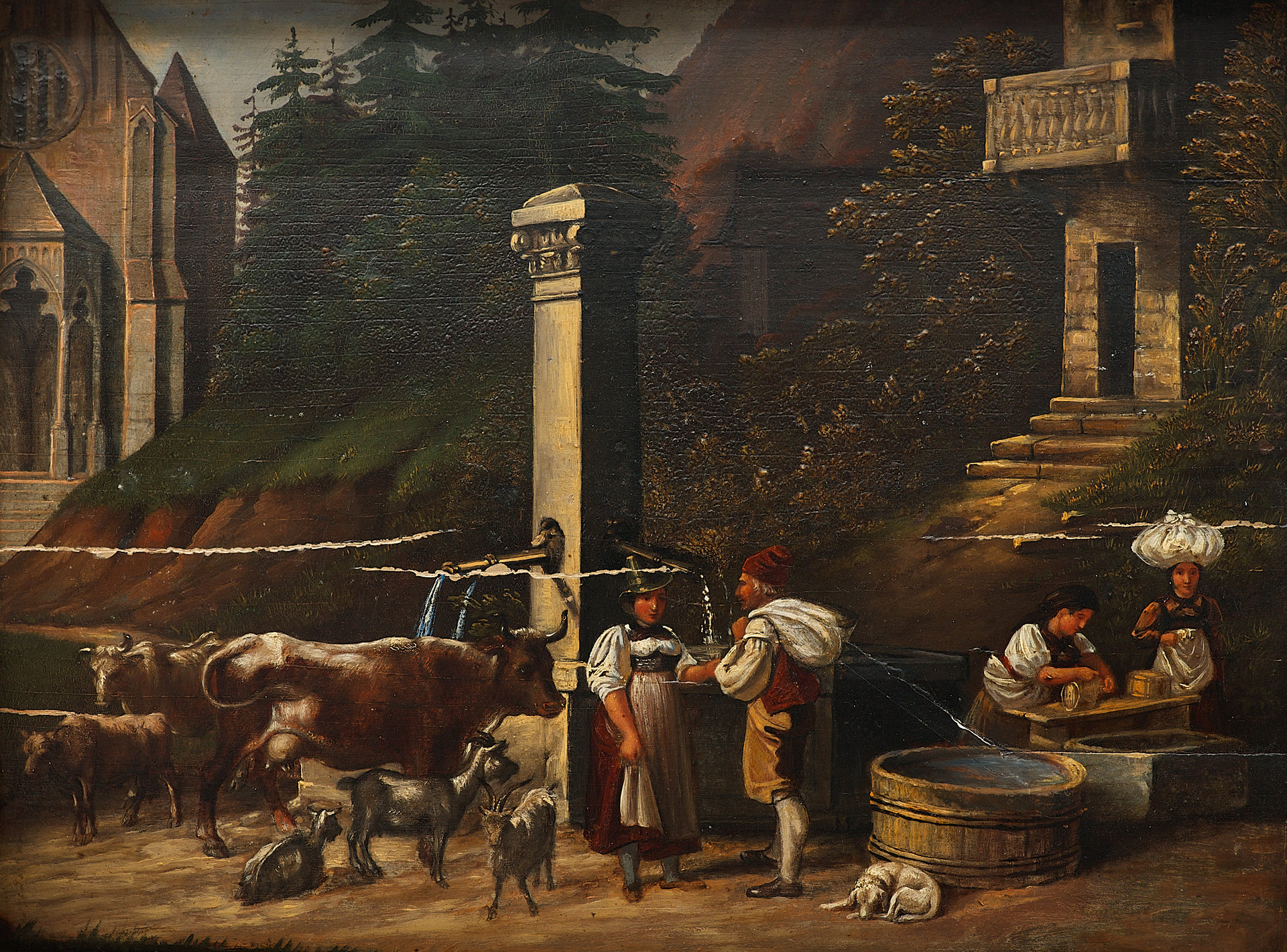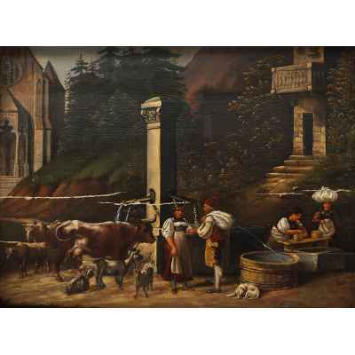 Картина «Городская сцена у колодца» Европа середина ХIХ века