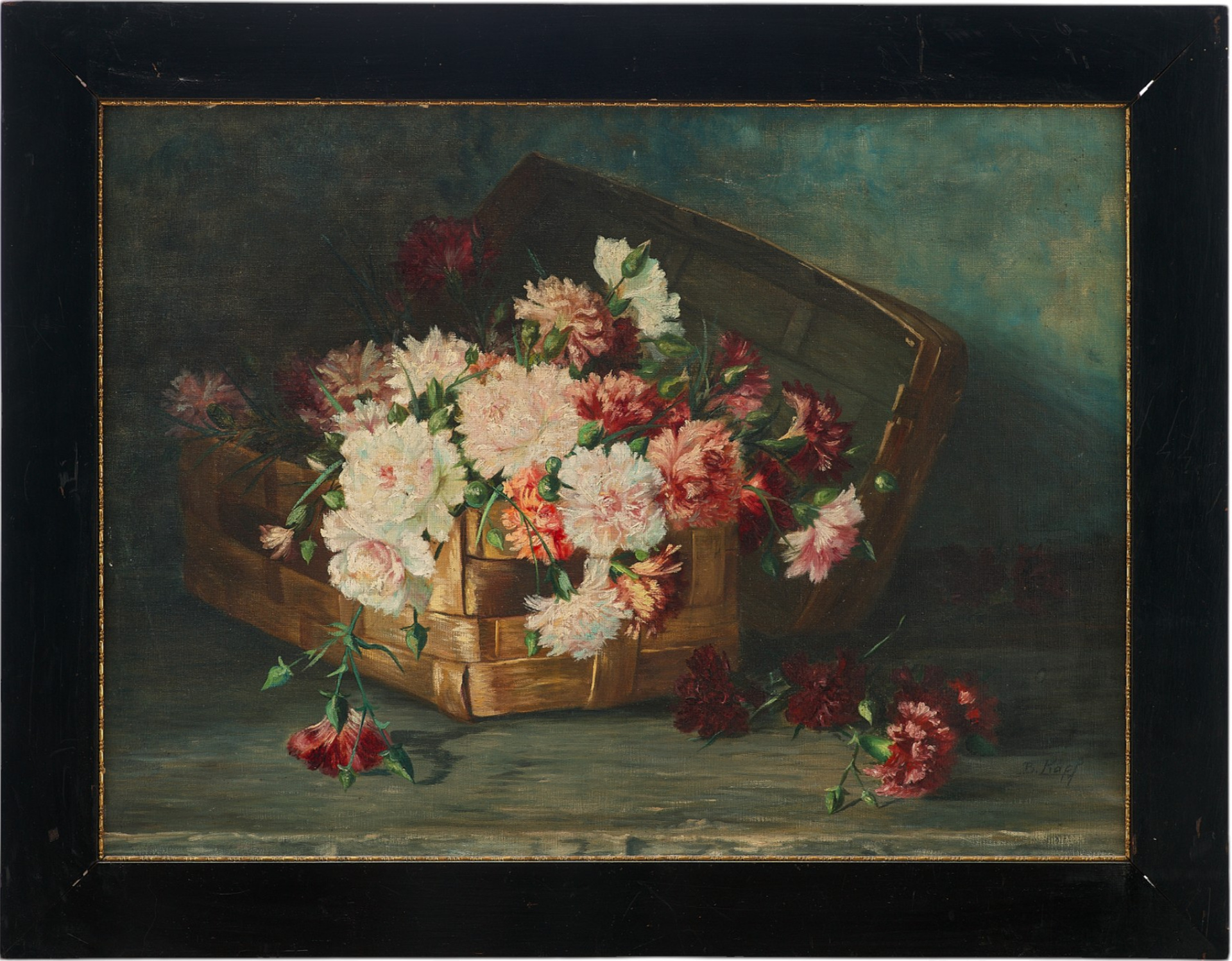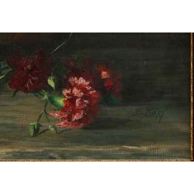 Работа написана художником В. Капфом (подпись в правом нижнем углу: B. Kapf) в начале XX века. Этот период характеризуется постепенным отходом от академических канонов и усилением индивидуального подхода к жанру натюрморта, который уже не был связан с символикой или программным содержанием, а становился пространством для личного выражения художника. Подобные произведения часто использовались как учебные или декоративные работы, но в них проявлялось и мастерство владения техникой, и изысканная цветовая интуиция.