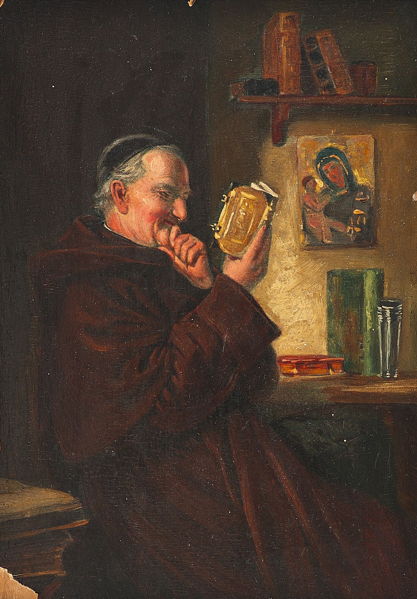 Тема монашества и бытовой религиозности пользовалась широкой популярностью среди немецких живописцев этого периода. Композиционные и стилистические решения картины перекликаются с произведениями таких мастеров, как Эдуард фон Грютцнер, Петер Фенди, Эрнст Новак и Эрвин Эйхингер, нередко изображавших монахов в уединённой или ироничной обстановке.