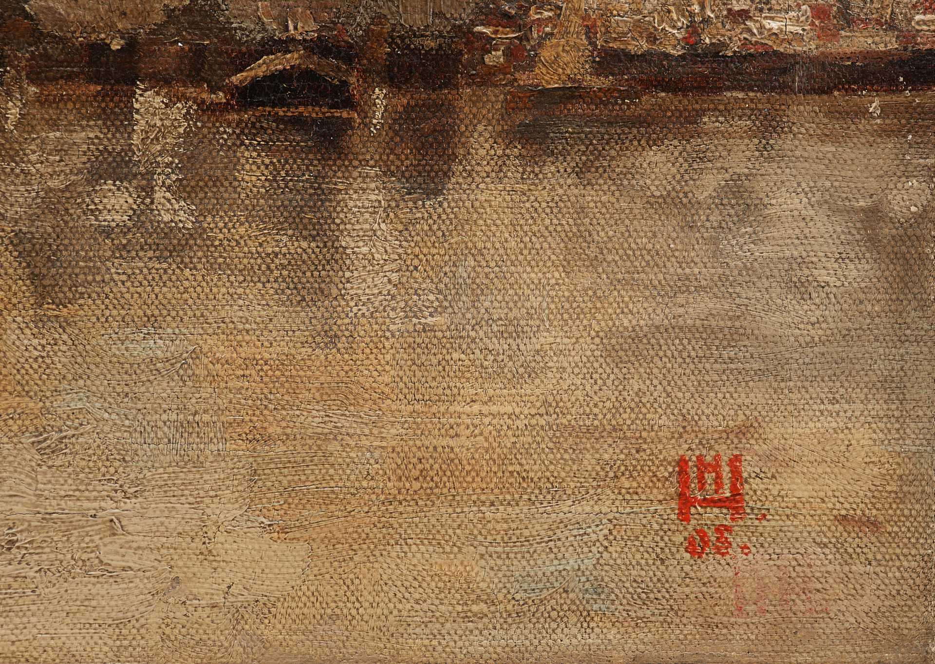 Несмотря на отсутствие подписи, композиция выполнена на высоком профессиональном уровне. Архитектура, суда и отражения на воде переданы с мастерством, свидетельствующим о серьёзной художественной подготовке. Композиционная уравновешенность и внимание к деталям делают работу выразительным примером портовой европейской живописи начала XX века.