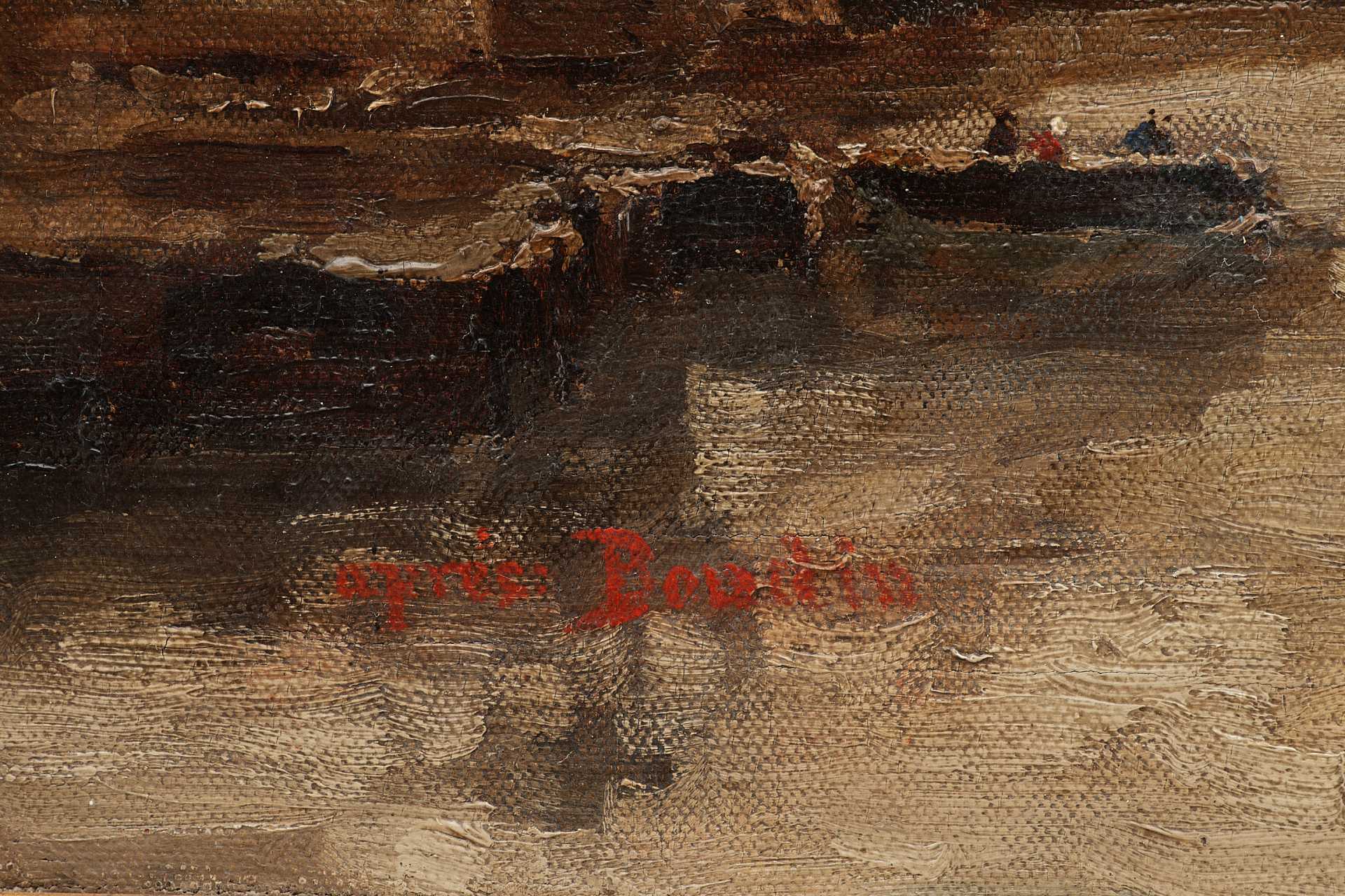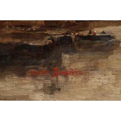Работа датирована 1905 годом, написана маслом на холсте. Автор картины неизвестен, однако по стилистике она близка к произведениям школы Эжена Будена (Eugène Boudin, 1824–1898) — французского пейзажиста, одного из предшественников импрессионизма, который воспевал морские виды и атмосферу северных портов Франции. Влияние Будена ощущается в мягком моделировании света, неброской колористике и внимании к погодной динамике.