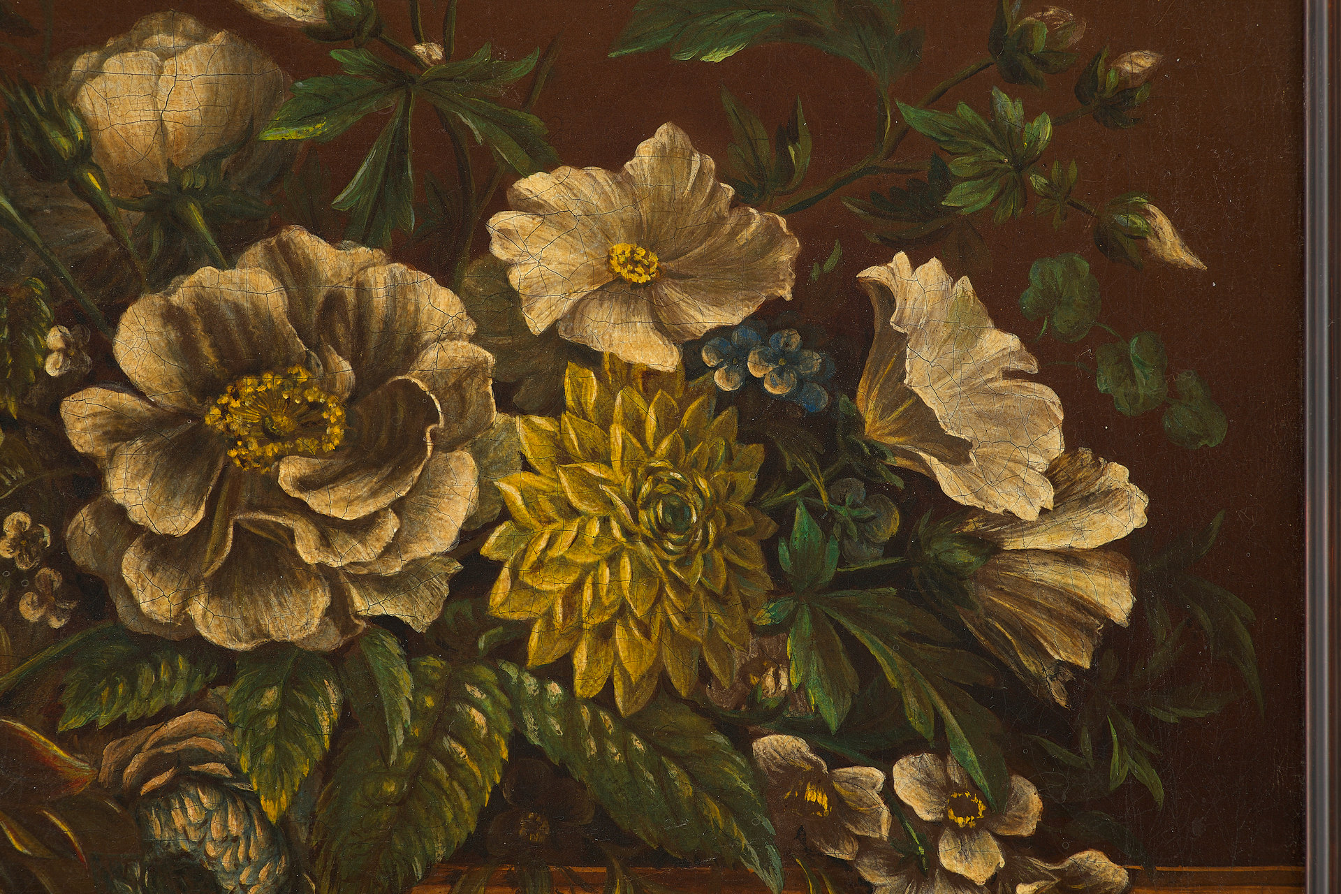 Сегодня картина представляет антикварную и коллекционную ценность, особенно интересна любителям классического натюрморта с цветами, оформленного в эффектной раме. Подобные работы часто становятся центральными элементами частных собраний или изысканным украшением классических интерьеров.