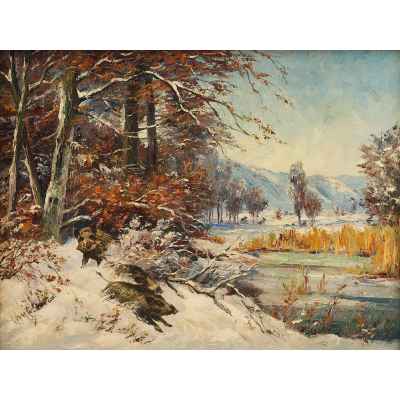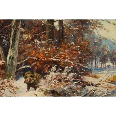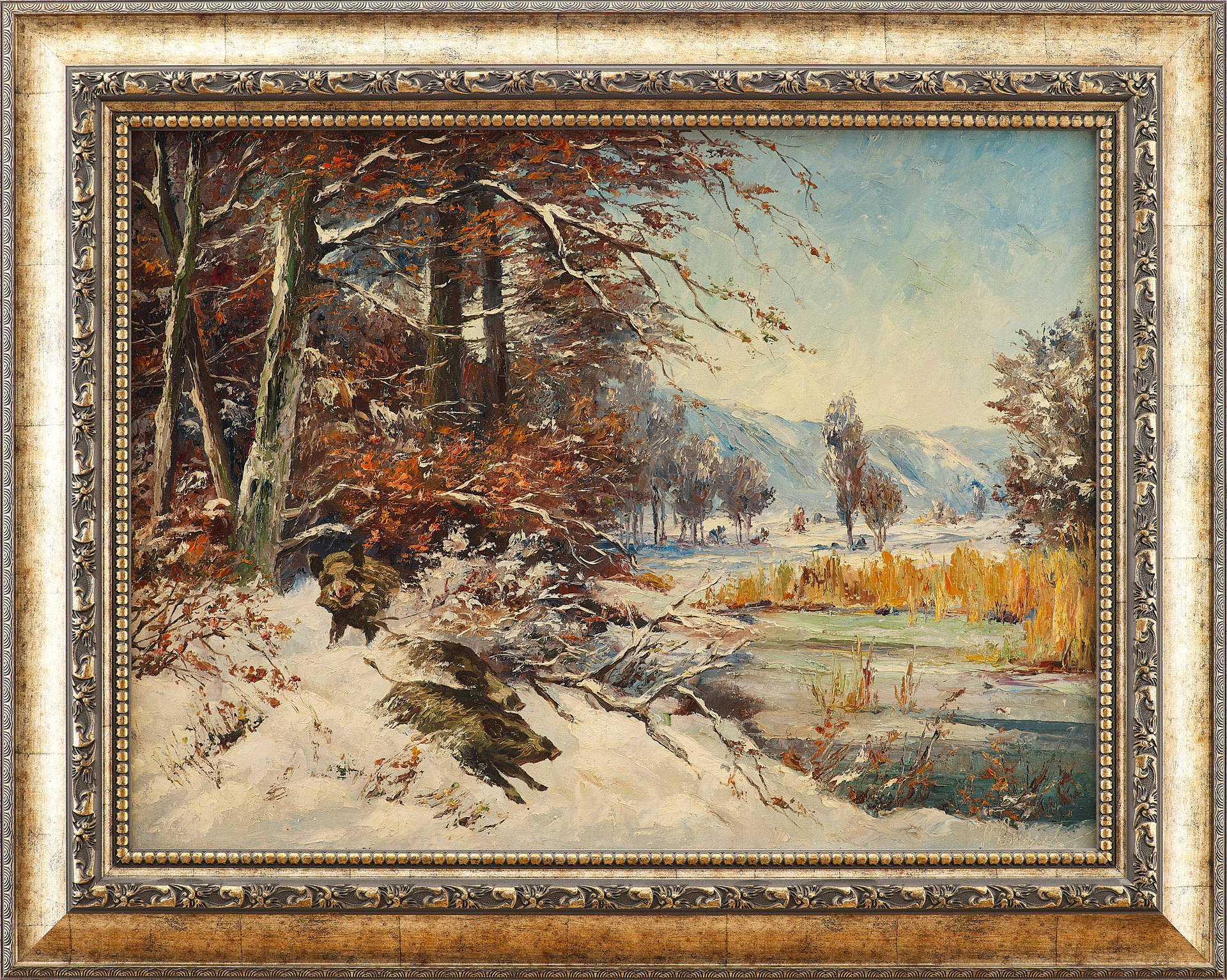 Картина «Кабаны в зимнем лесу» Европа Начало XX века