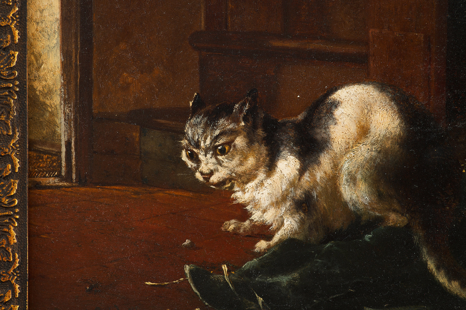 Картина «Незваный гость» — яркий пример анималистической живописи викторианской эпохи, в которой жанровая сцена обретает эмоциональную насыщенность благодаря выразительности поведения животного. Подпись художника на лицевой стороне картины подтверждена экспертизой как подлинная.
