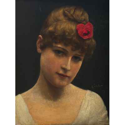 Картина «Молодая красавица с розой в волосах» Европа последняя четверть ХІХ века