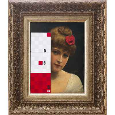 Картина «Молодая красавица с розой в волосах» создана Альфредом Сейфертом (Alfred Seifert, 1850–1901) — чешско-немецким живописцем, получившим признание за свои жанровые сцены и портреты женщин, выполненные в стиле салонного академизма. Представленное изображение — это камерный женский портрет, написанный на тёмном фоне, с акцентом на нежных чертах лица, светлой коже и выразительном взгляде модели. В волосы девушки вплетена ярко-красная роза — акцент, подчёркивающий романтичность образа.