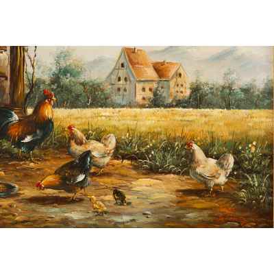 Картина "Куры на крестьянском дворе" Европа первая половина XX века
