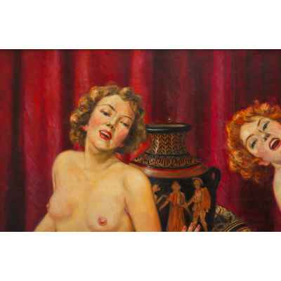 Картина относится к жанру аллегорической композиции в рамках академического направления, с явной отсылкой к античным сюжетам, в частности к культу Диониса. Изображённые фигуры напоминают вакханок — мифологических спутниц бога виноделия и безумия, которые часто становились символом свободной женской природы и неукротимой жизненной силы. Этот сюжет пользовался особой популярностью у европейских художников с эпохи Возрождения и особенно — в декоративной живописи XX века.