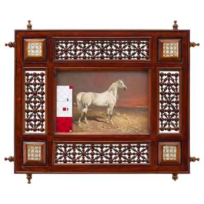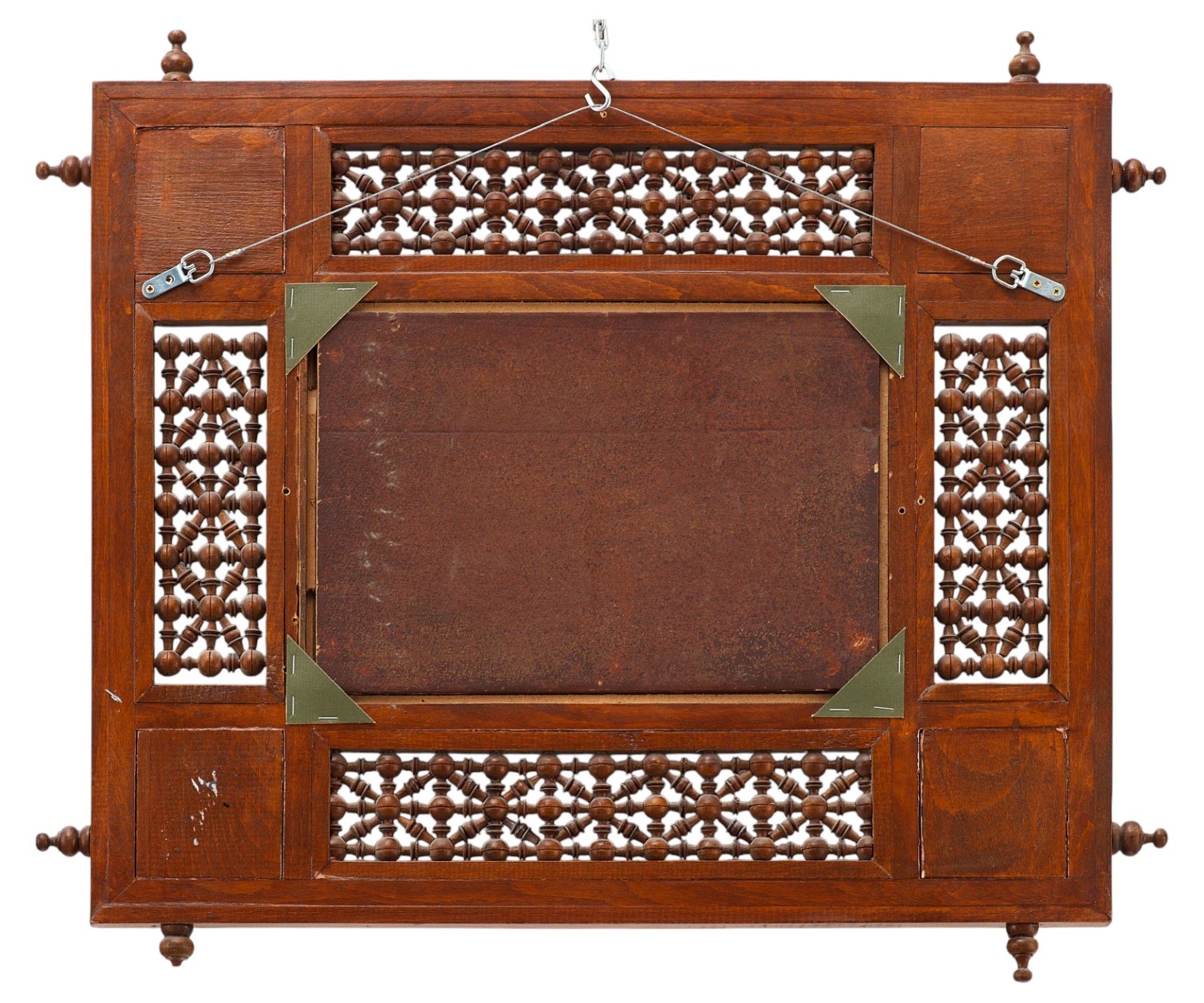 Работа подписана в левом нижнем углу: Haag, подпись подтверждена как подлинная. Картина написана маслом на картоне, отличается хорошей сохранностью и тщательно подобранной декоративной рамой восточного стиля, что подчеркивает тематику произведения. В настоящее время произведение представляет значительный интерес для коллекционеров благодаря авторству, тематике и качеству исполнения, а также принадлежит к разряду антиквариата с коллекционной ценностью.