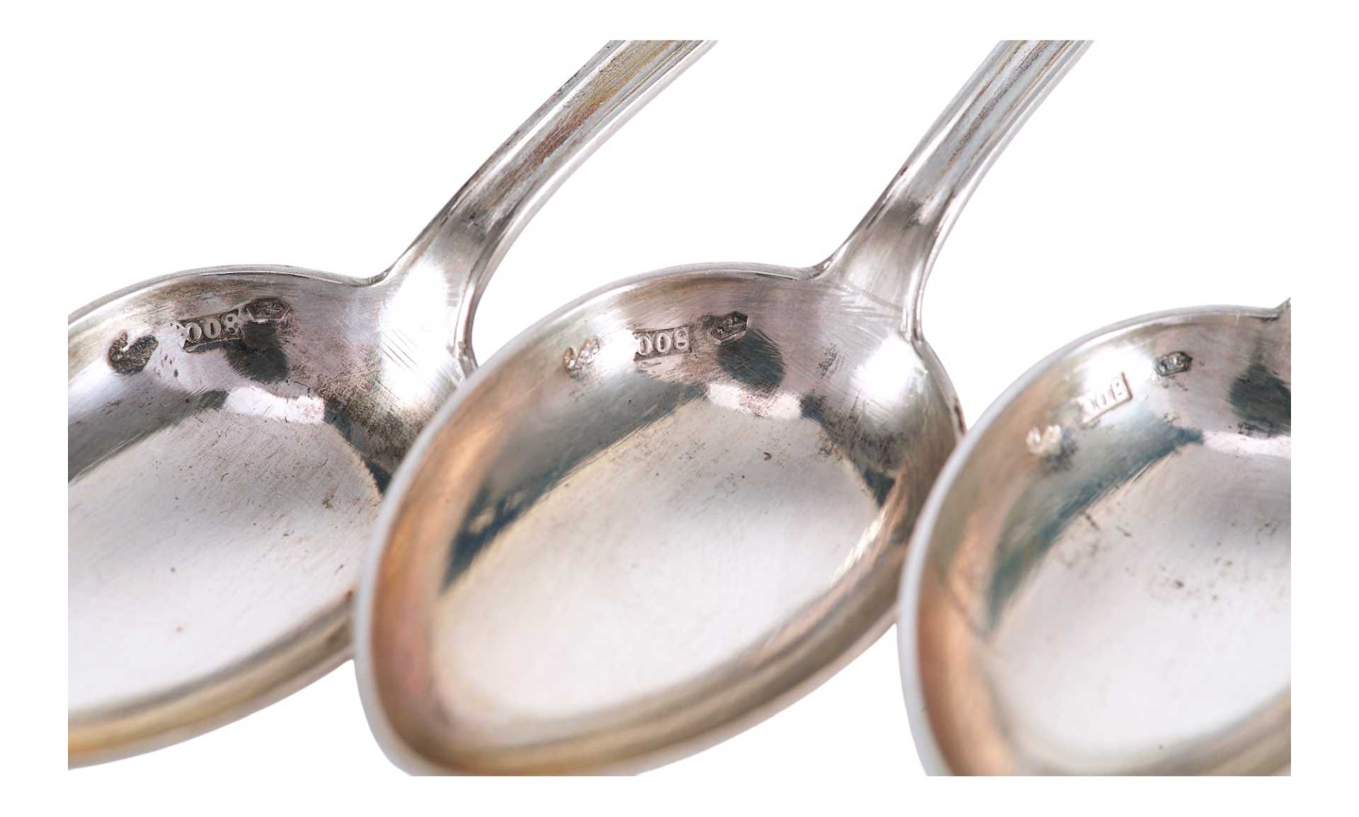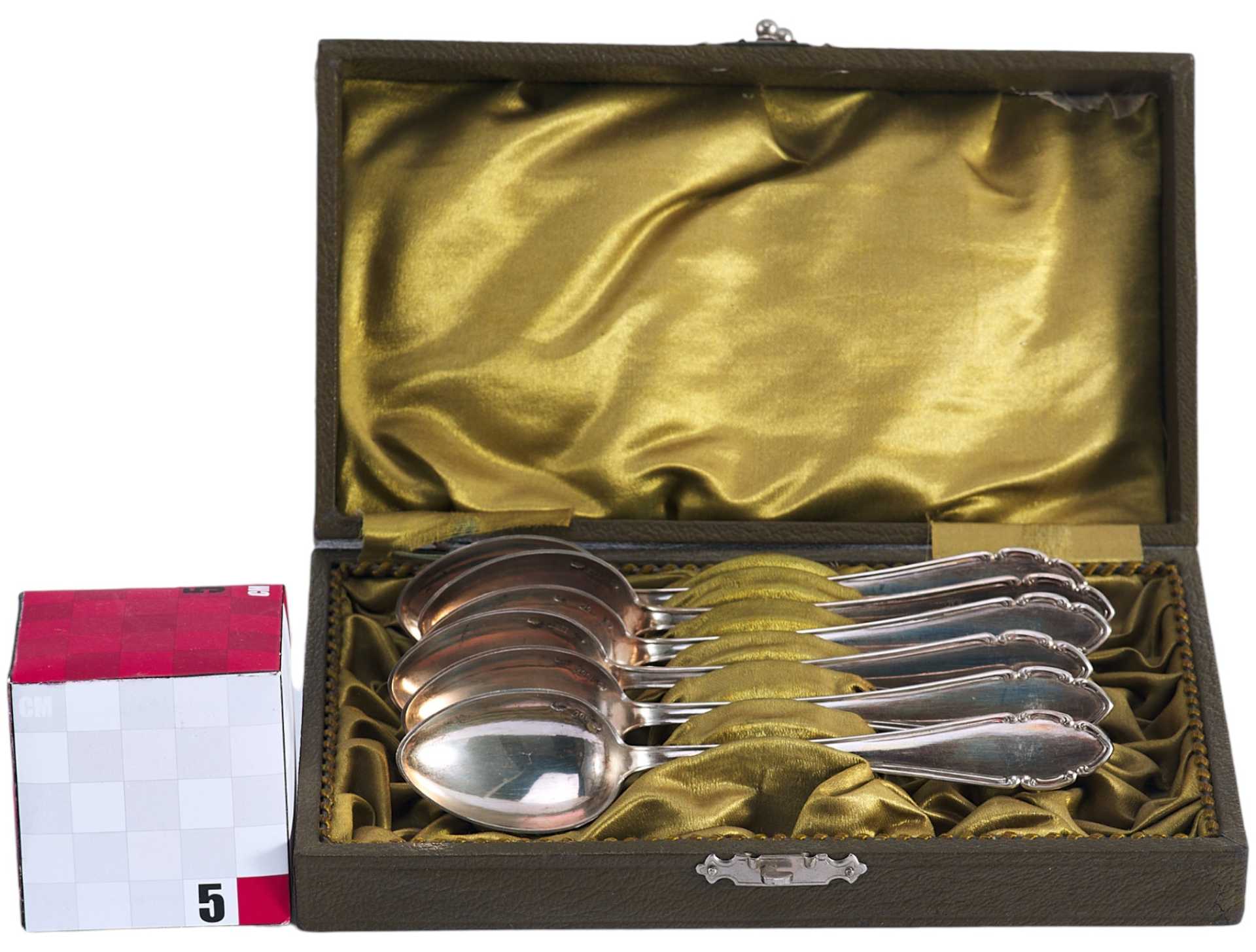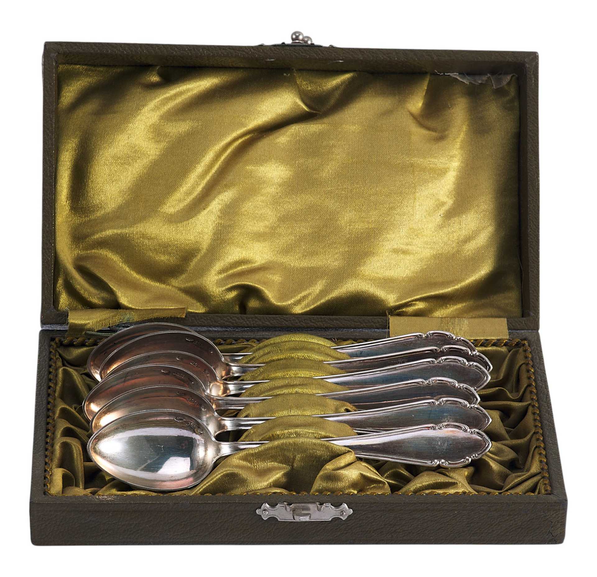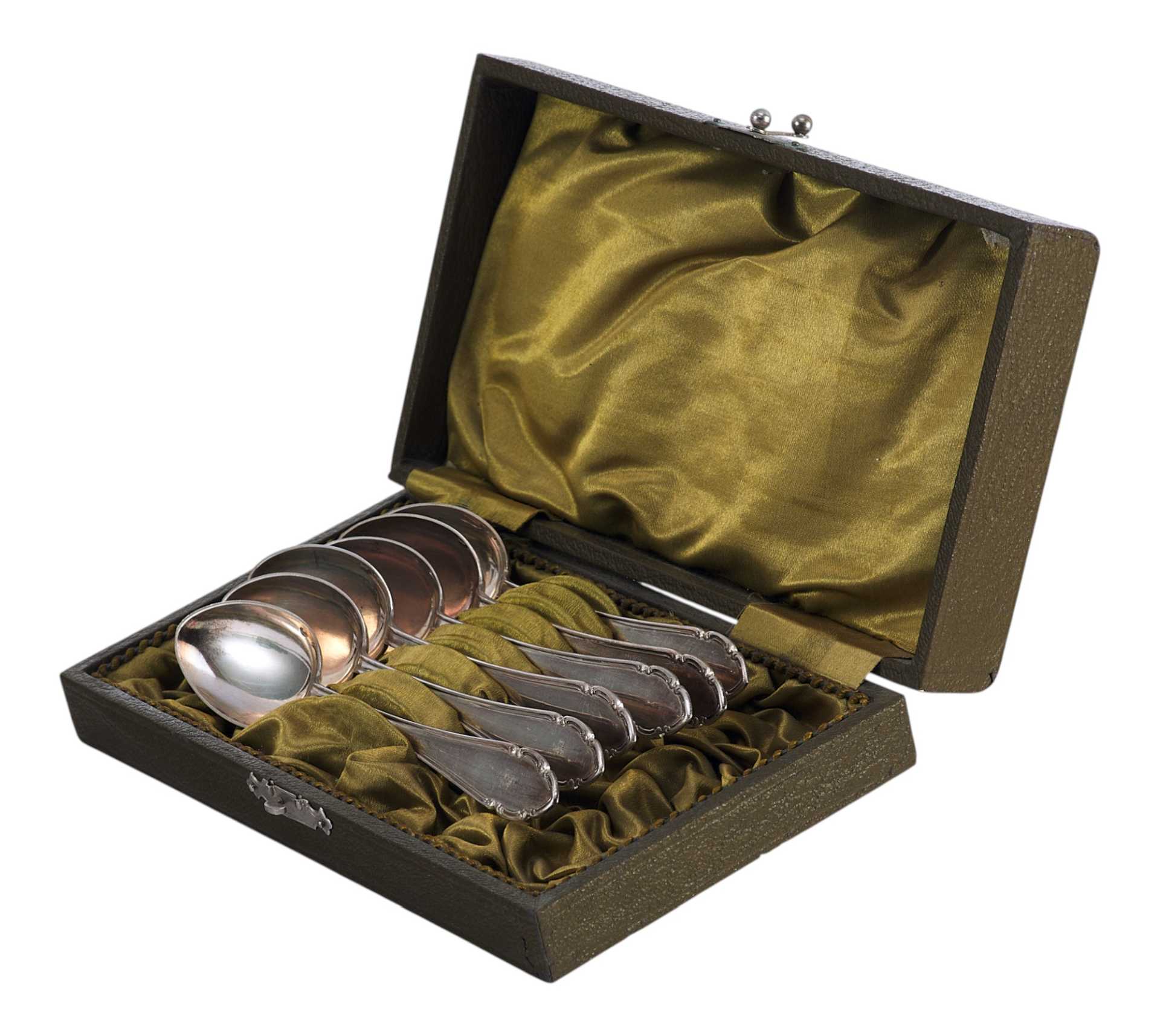 Набор чайных ложек серебро 800 пр. 131,5 гр. Австрия нач. ХХ в. фирма Випценса Карла Дуба, Вена (Австрия) после 1922 г