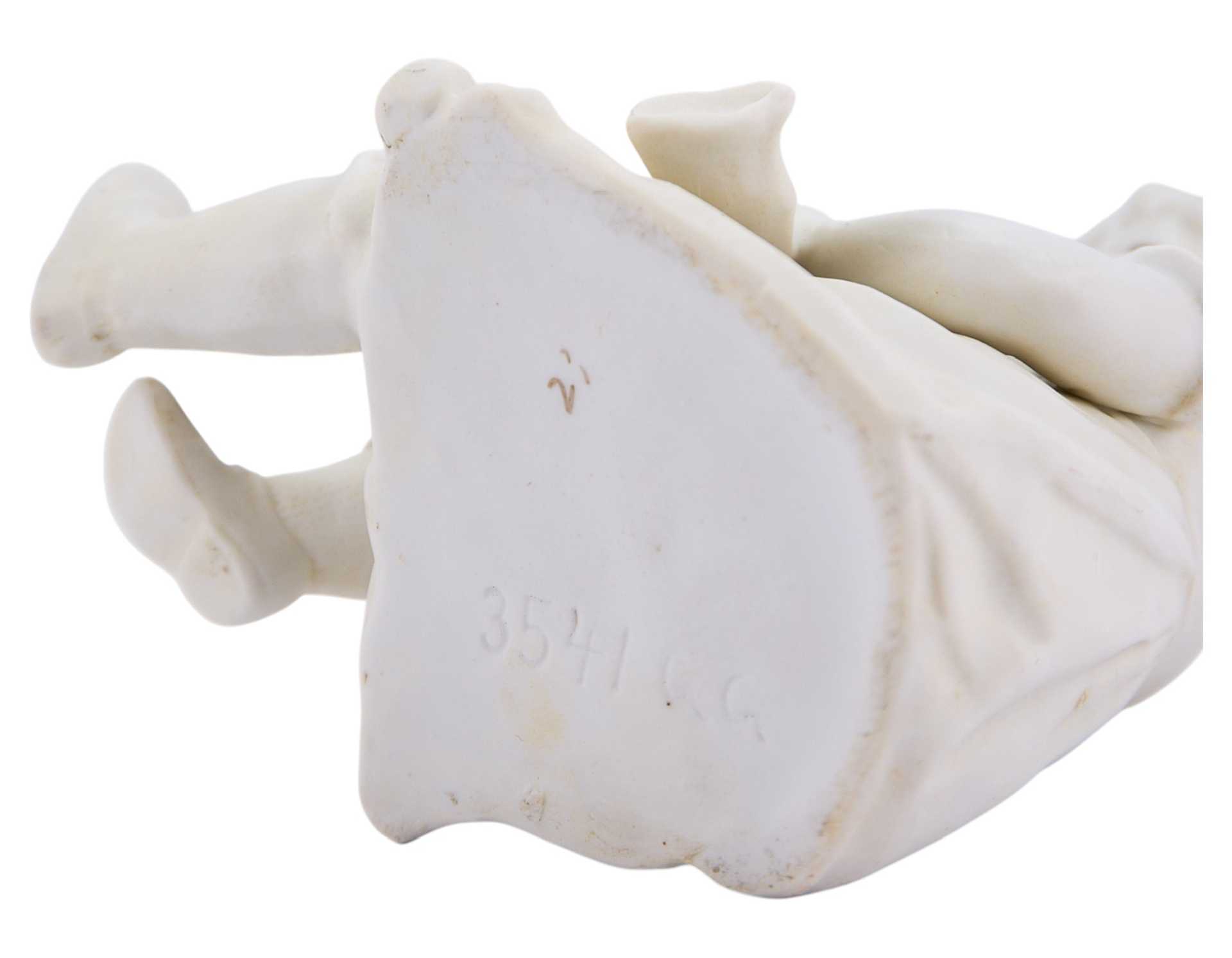 шерсти. На основании скульптуры клеймо «в тесте»: 3541 GG. Мотив детского образа, созданного в бисквите, клеймо указывают на имитацию скульптуры из серии детских фигурок французского фарфорового завода в Севре. Особенности меткого фарфора, используемого на севрской мануфактуре в первой половине и в середине XVIII в. заставили французких
