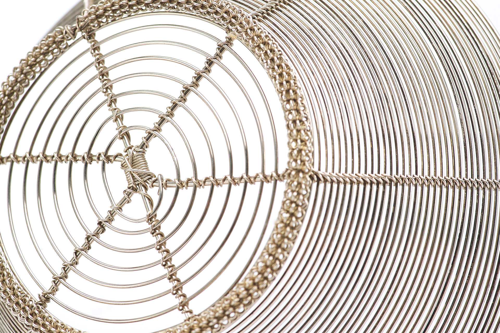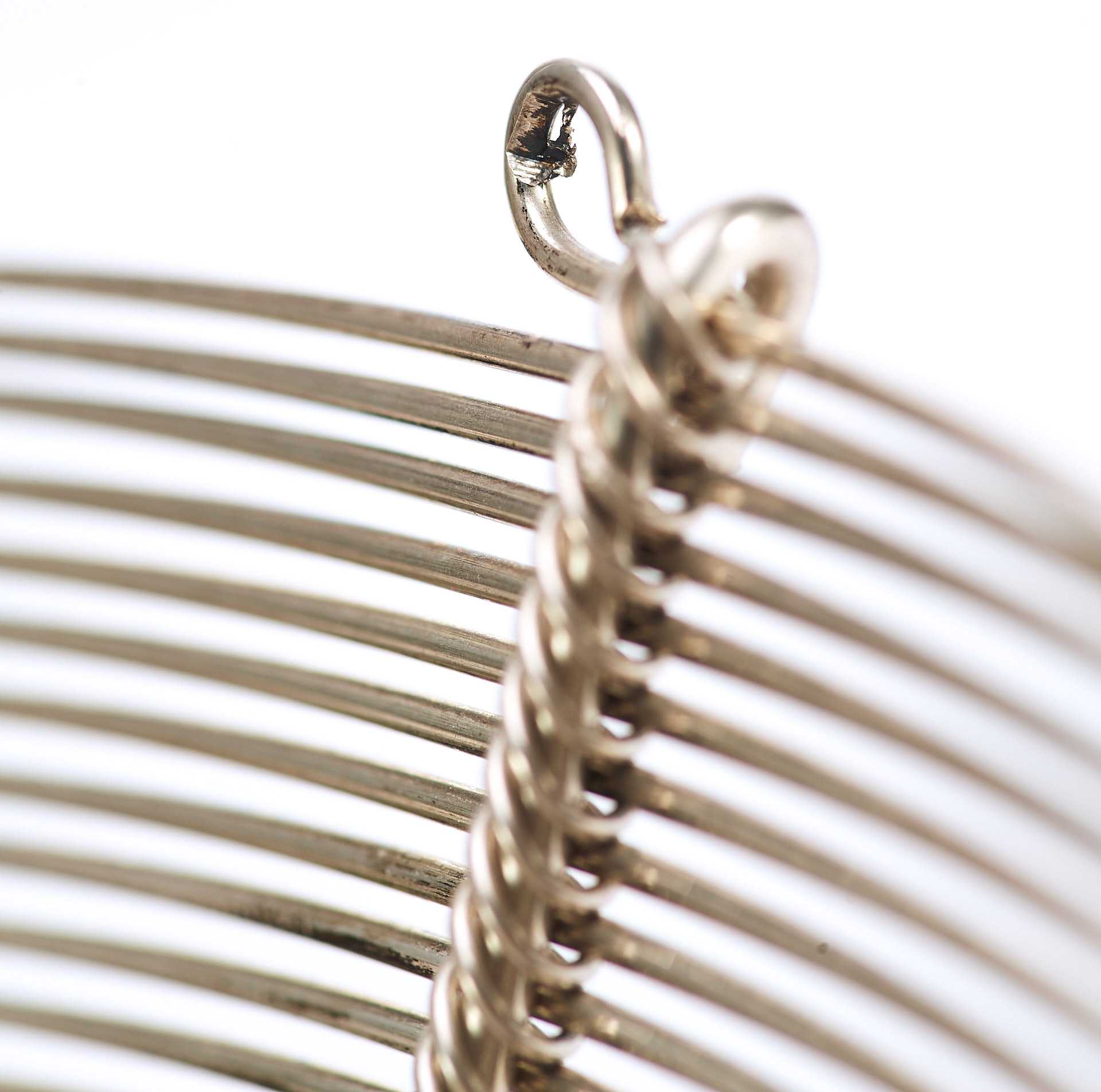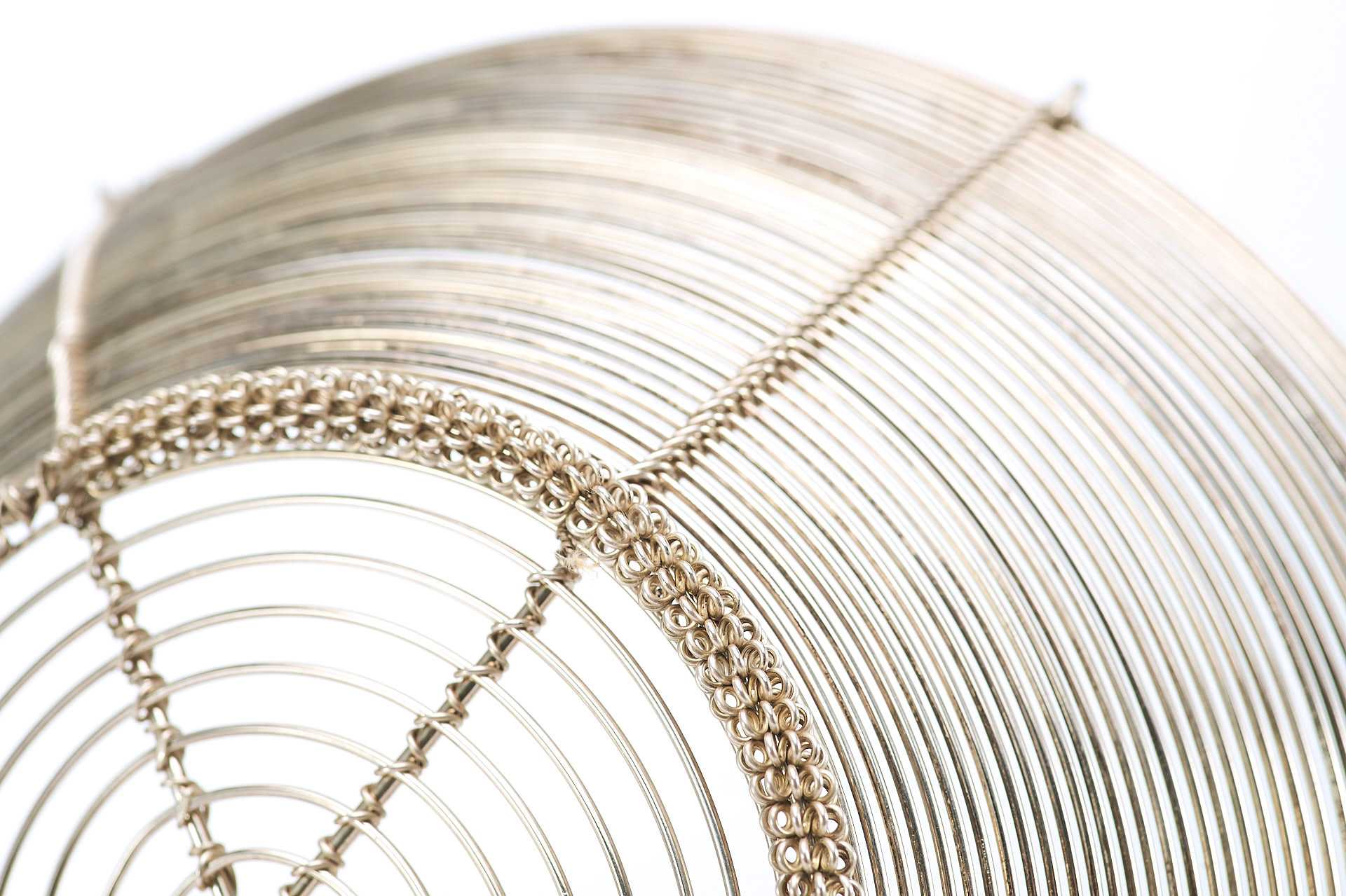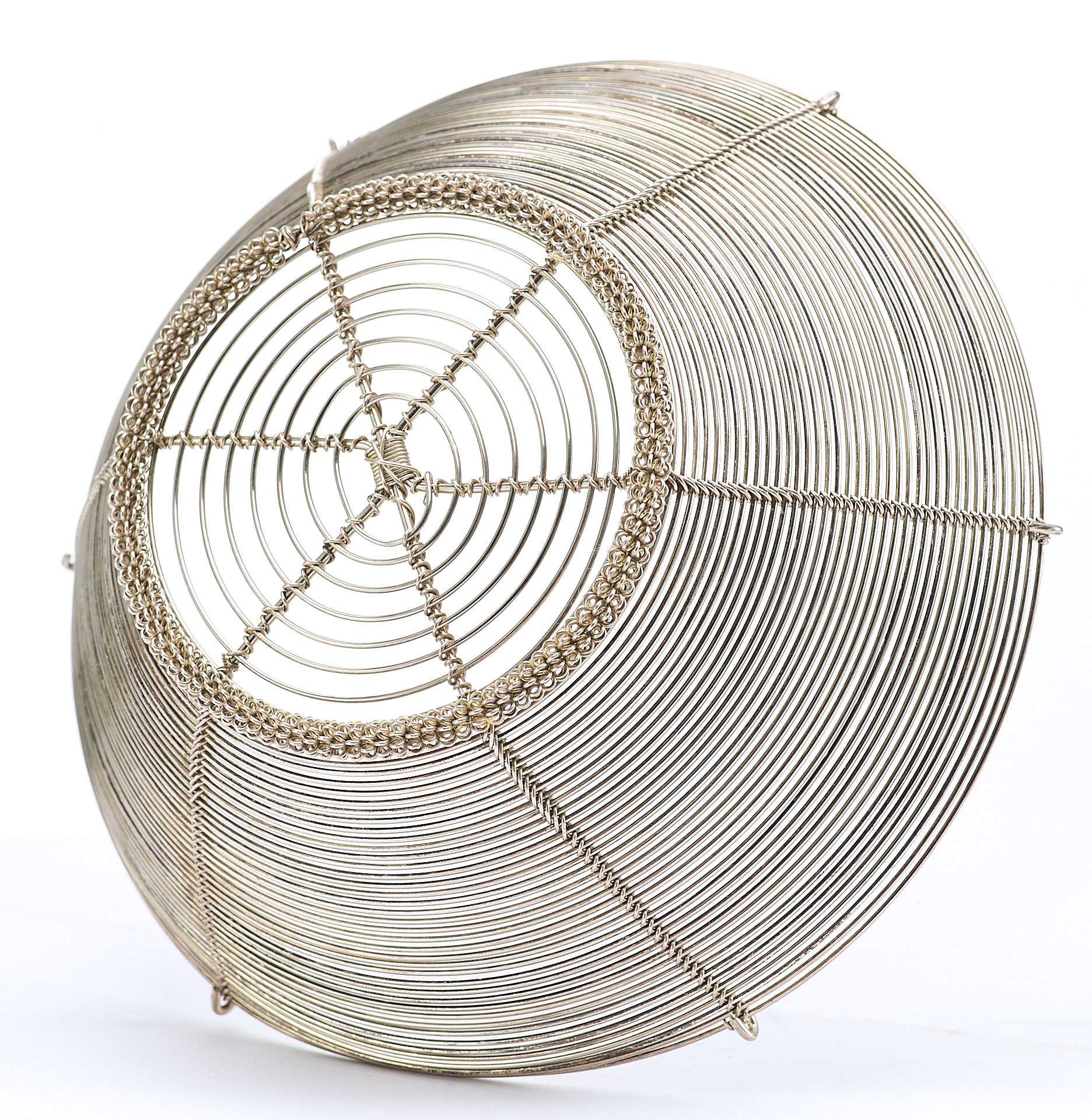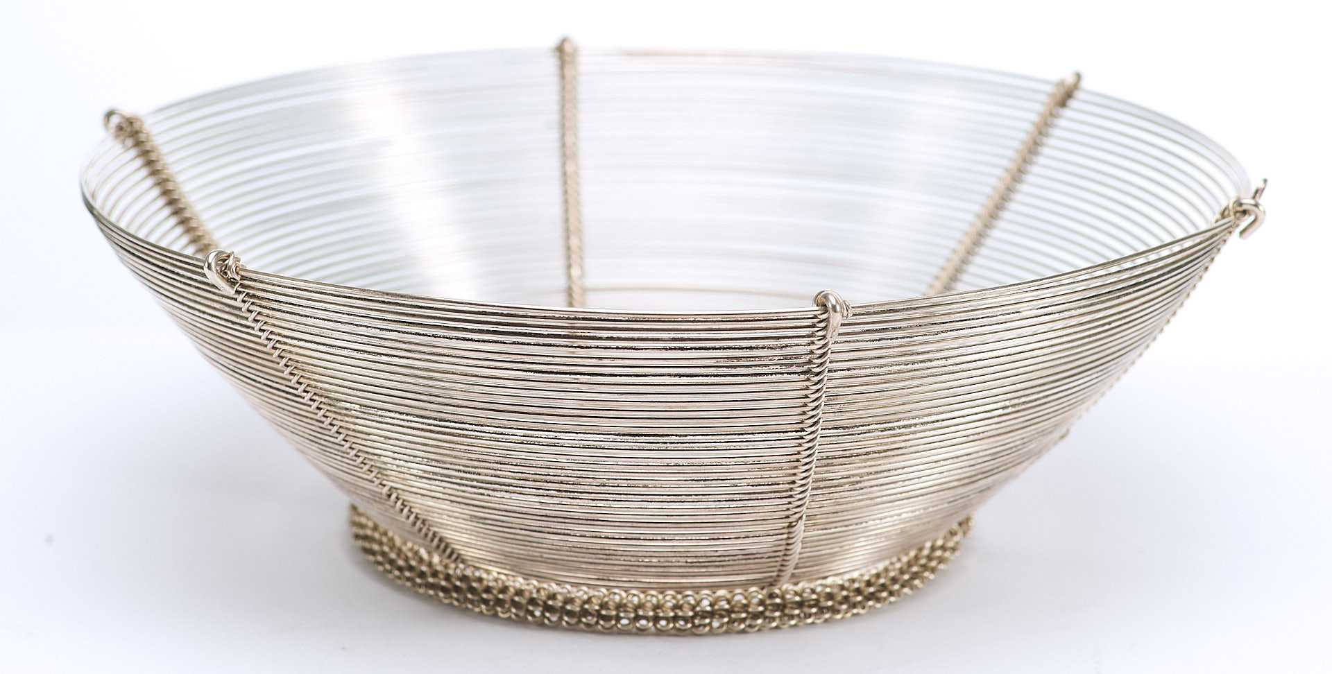 Представлена сухарница сделанная из серебряной проволоки средней толщины. Сухарница - ваза или корзинка для подачи хлева, печенья, сухарей, выпечки.