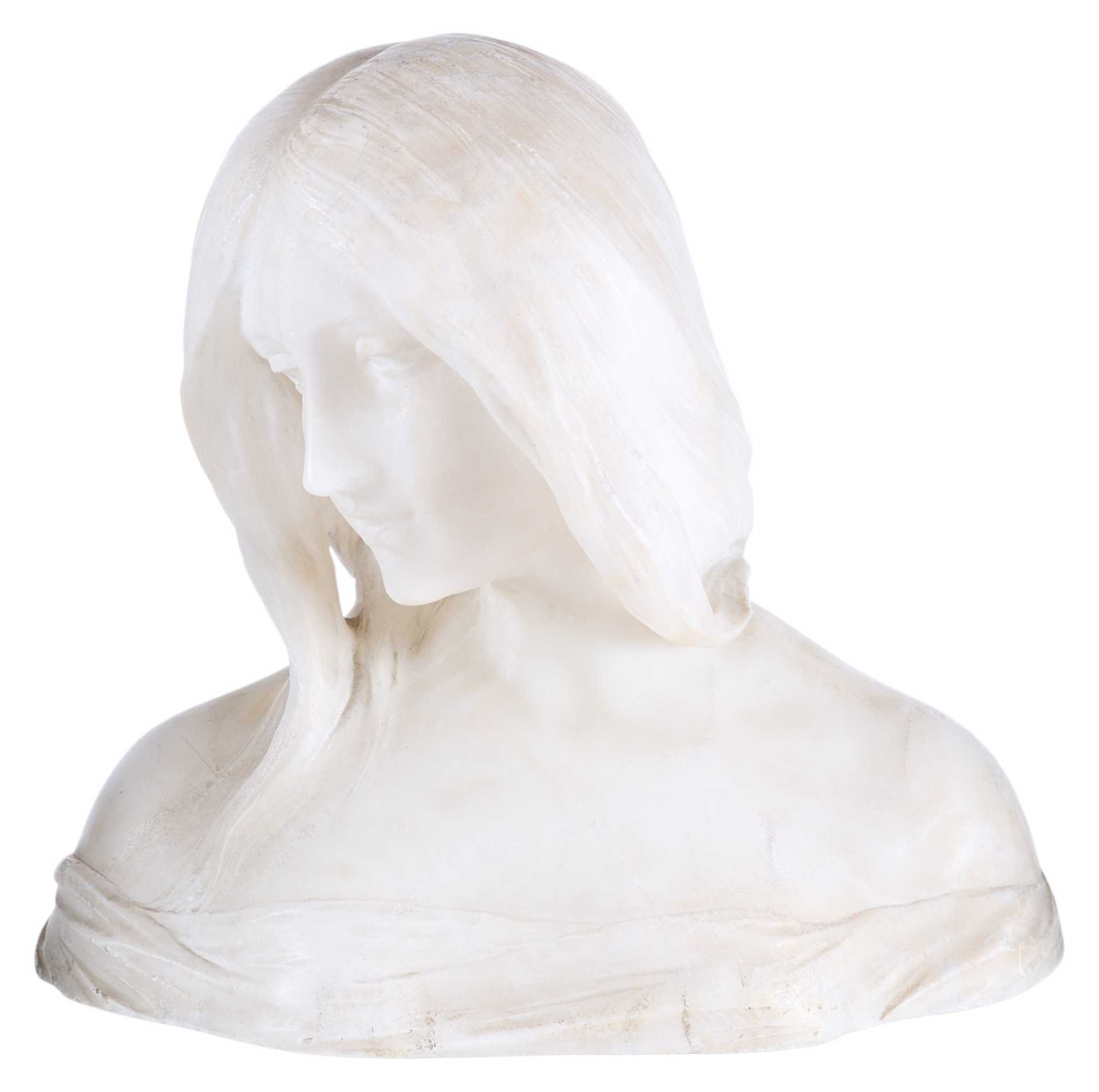 Бюст девушки вырезанный вручную из алебастра. Алебастр как камень (кальцит) мягкий, прозрачный, блестящий и как