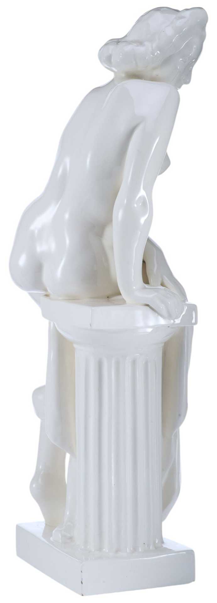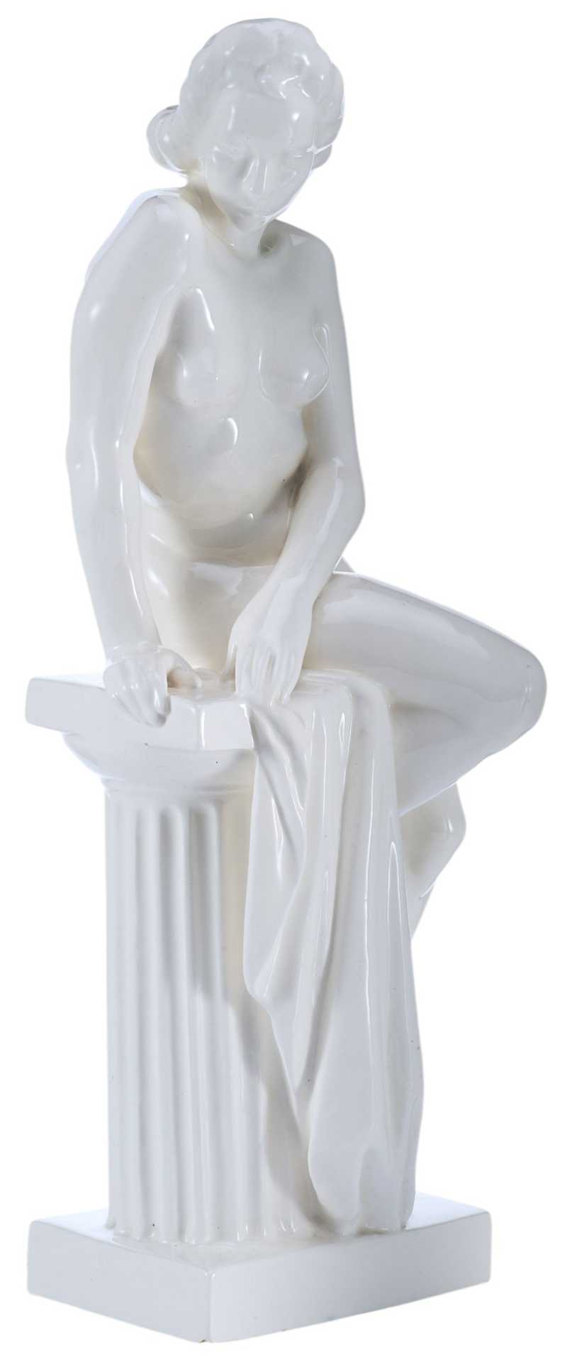 Фаянсовая скульптура обнаженнойженщины, садящейся на постамент в виде колонны, прикрытый драпировкой. Данную скульптуру можно отнести к популярному жанру «ню».