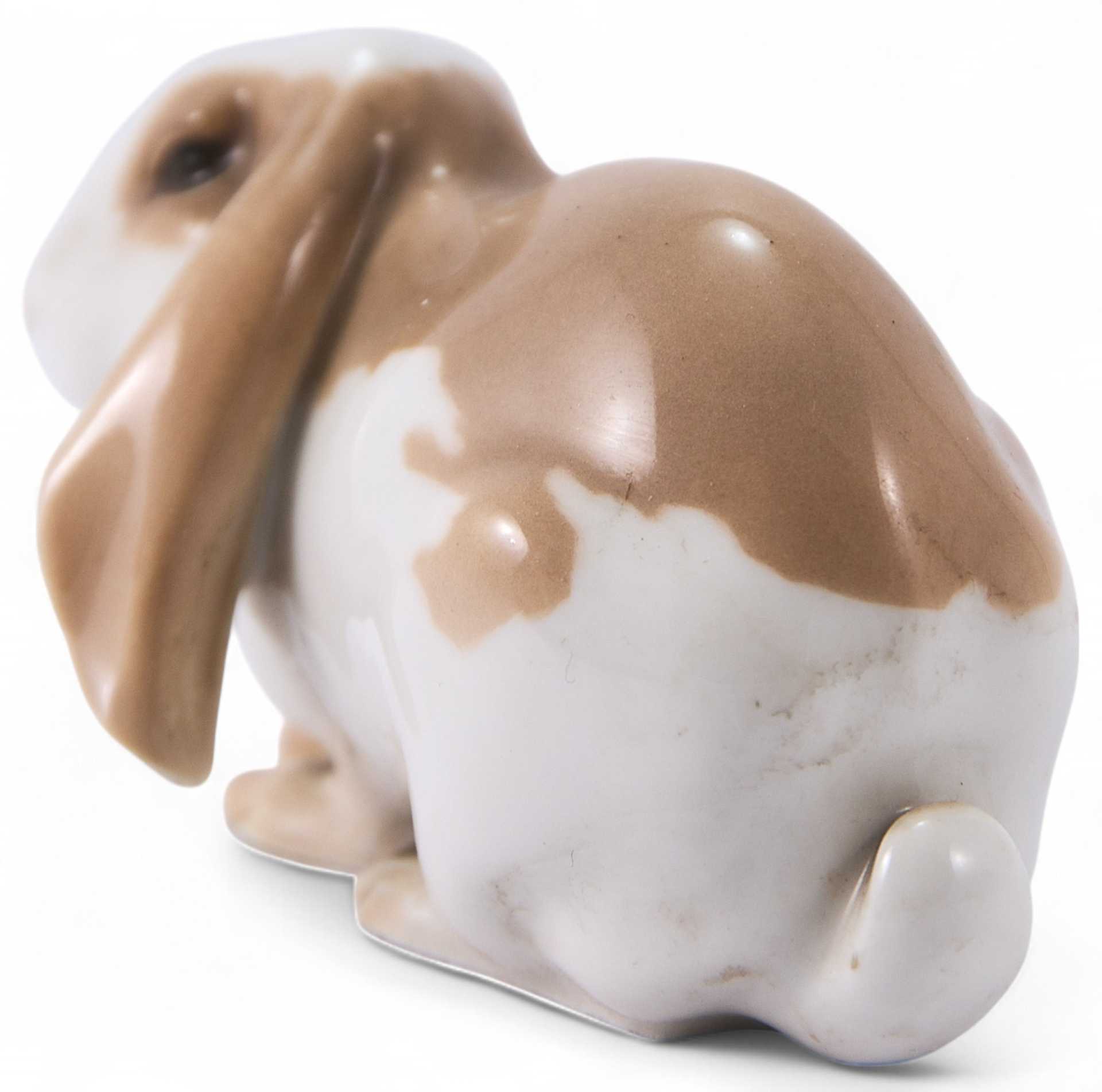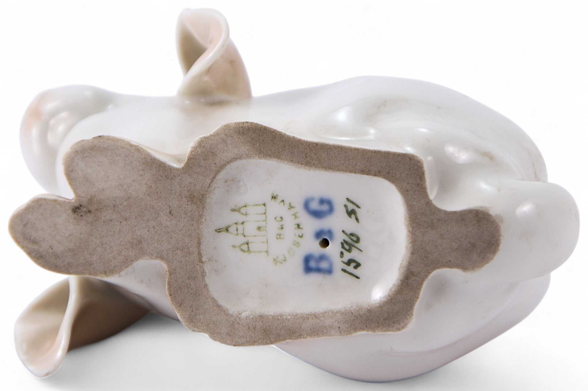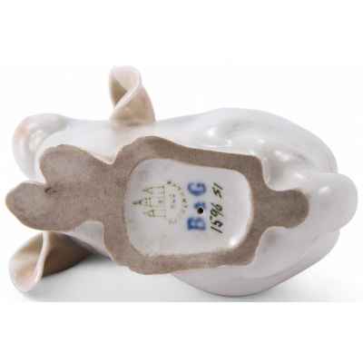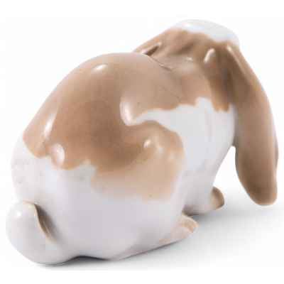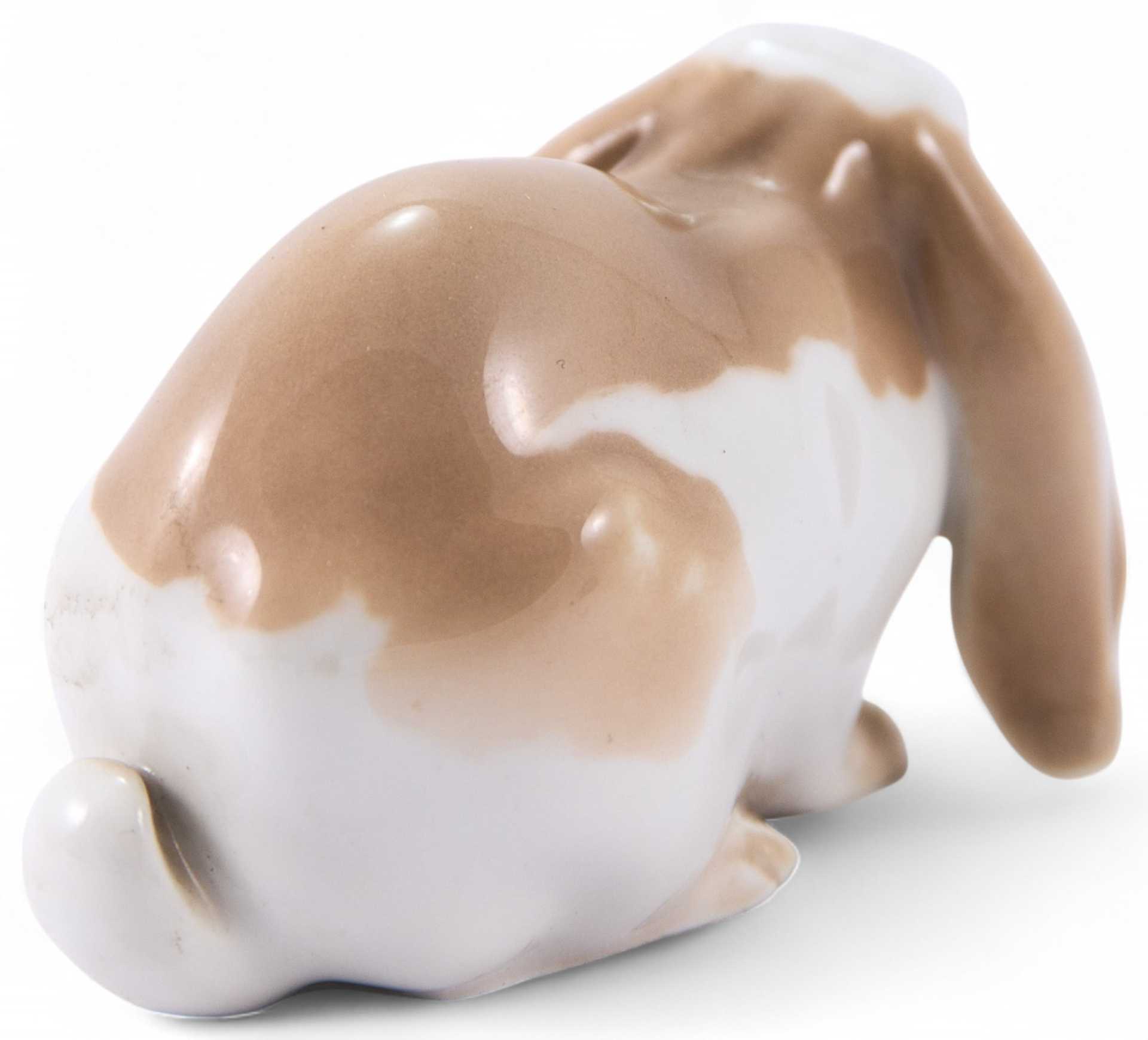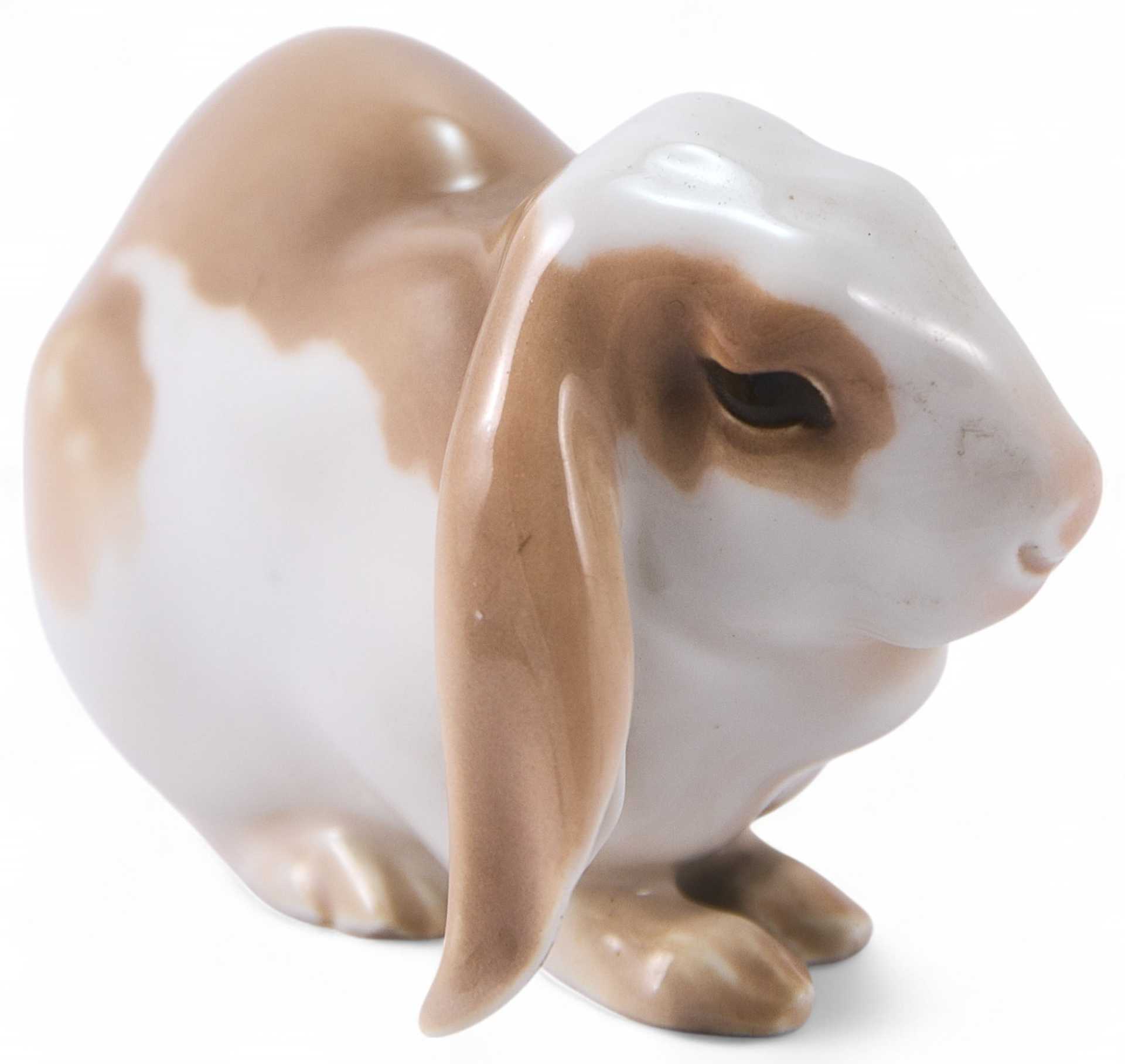 Скульптура сидящего кролика. На основании фигуры клеймо изготовителя - фабрики Бинг и Грендаль (Дания), периода 1915-1947 годов. Bing & Grondahl Factory (фабрика Бинг и Грёндаль, фабрика и Грондал) Основана в 1853 году. Основатели: молодой художник и скульптор Фредерик Вильхелм Грондал (Fred. Vilh. Grondahl (1819-1856)) - технический директор, и успешные предприниматели из Копенгагена братья М.Х. и Д.Х. Бинг (М.Н. Bing (1819 - 1883), J.H. Bing (1811 -1896)) - экономические директора. Изображения трёх башен на фабричной марке - копии изображений башен на гербе города Копенгагена.