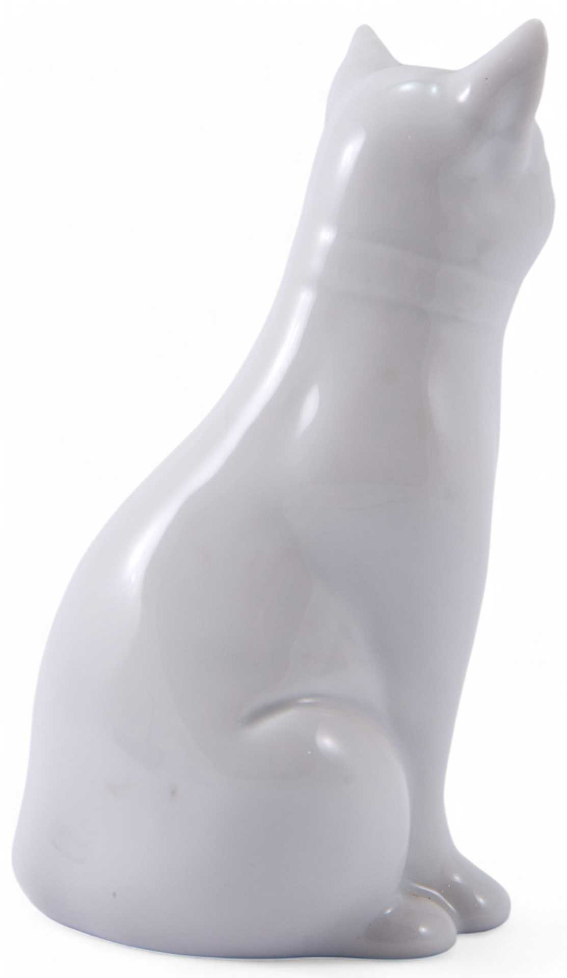 Скульптура сидящей кошки, на шее которой подвязан бантик. На основании клеймо фарфоровой фабрики (Herend), которое