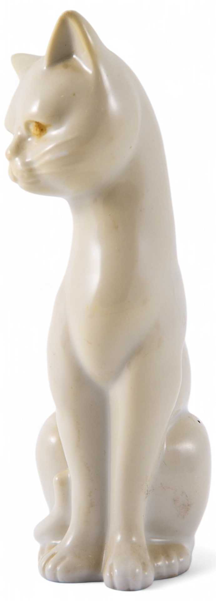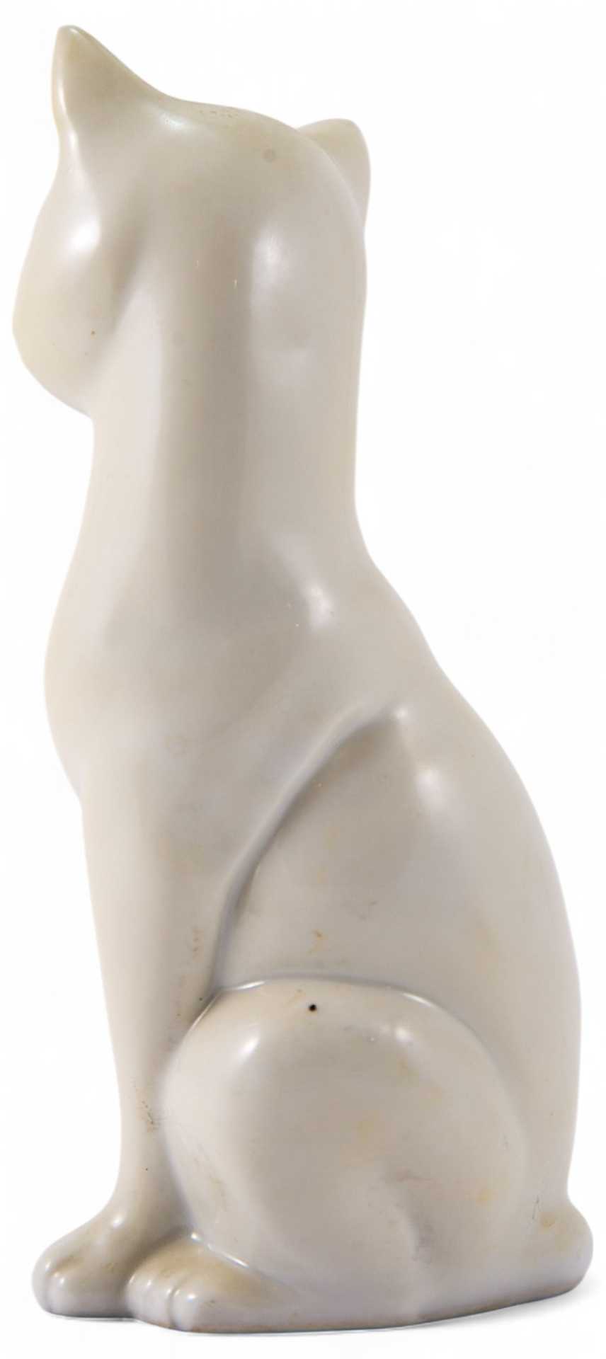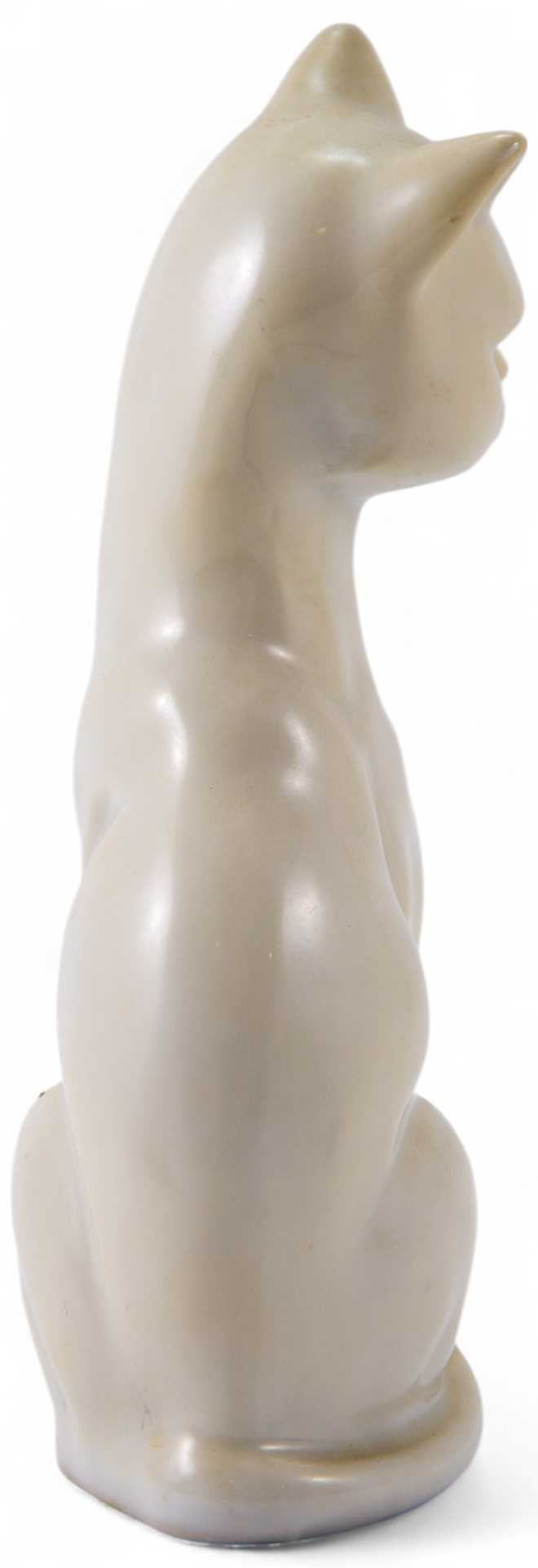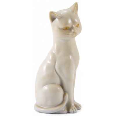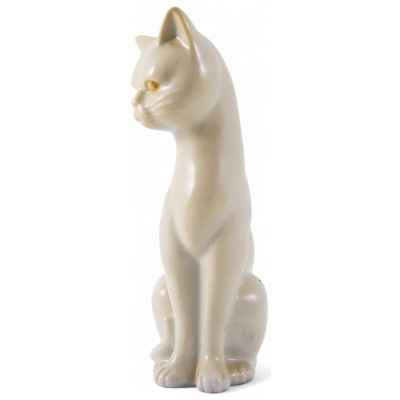 Представлена скульптура сидящей белой кошки.