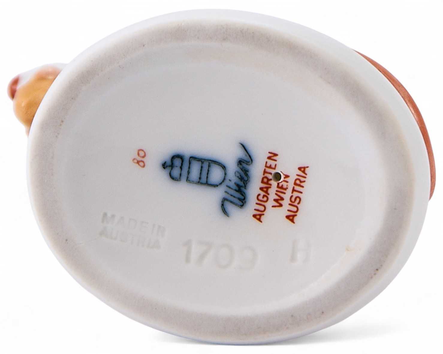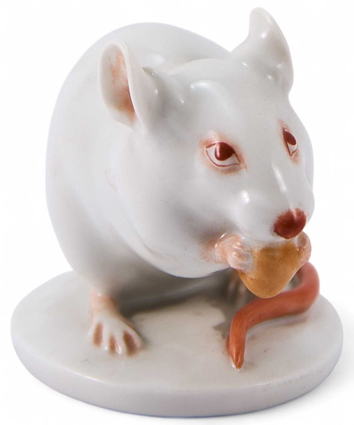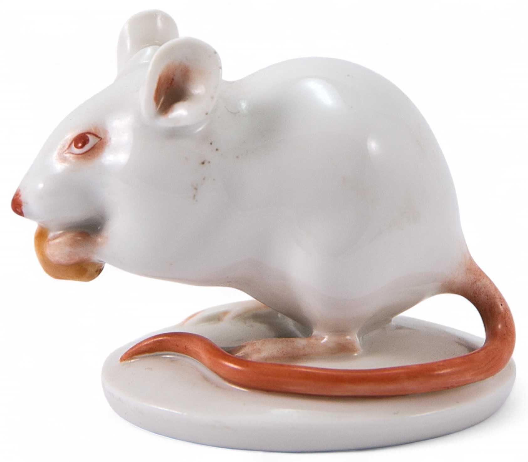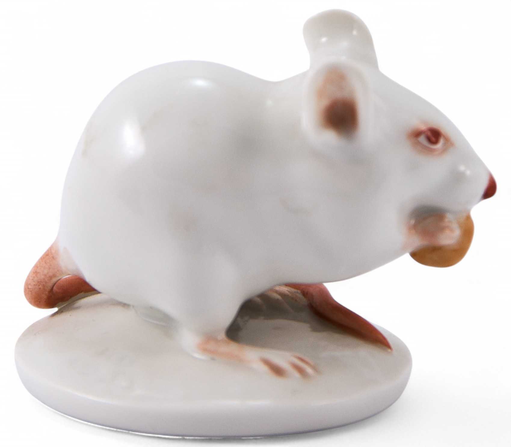 Представлена скульптура мышки с кусочком хлеба, которая произведена на фарфоровой мануфактуре Аугартен Вена). На основании скульптуры клеймо фарфоровой мануфактуры Аугартен начала XXI в. Также клеймо «в тесте»: 1709 Н Made in Austria.