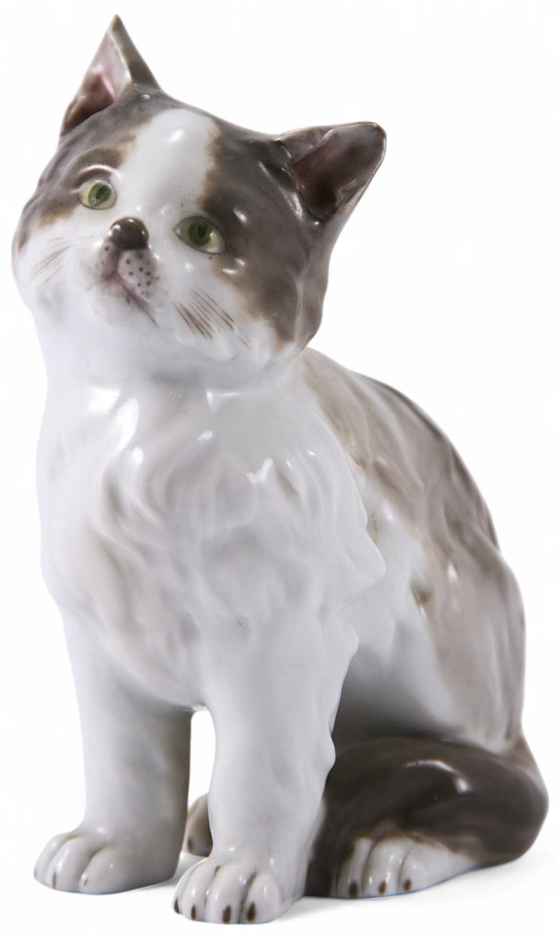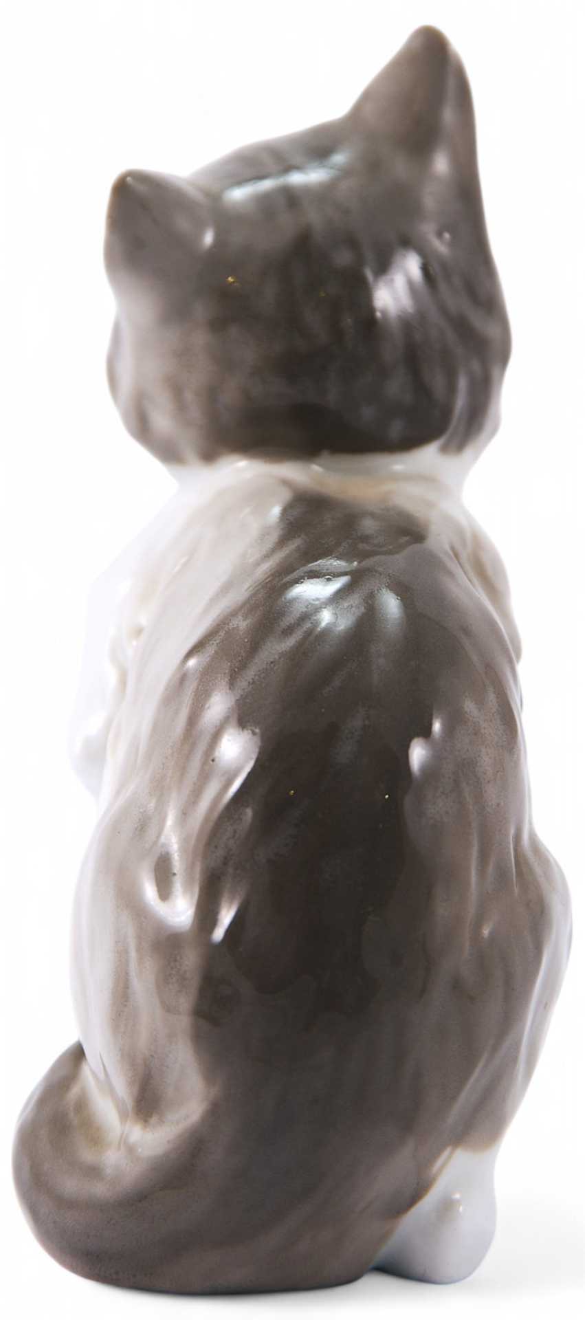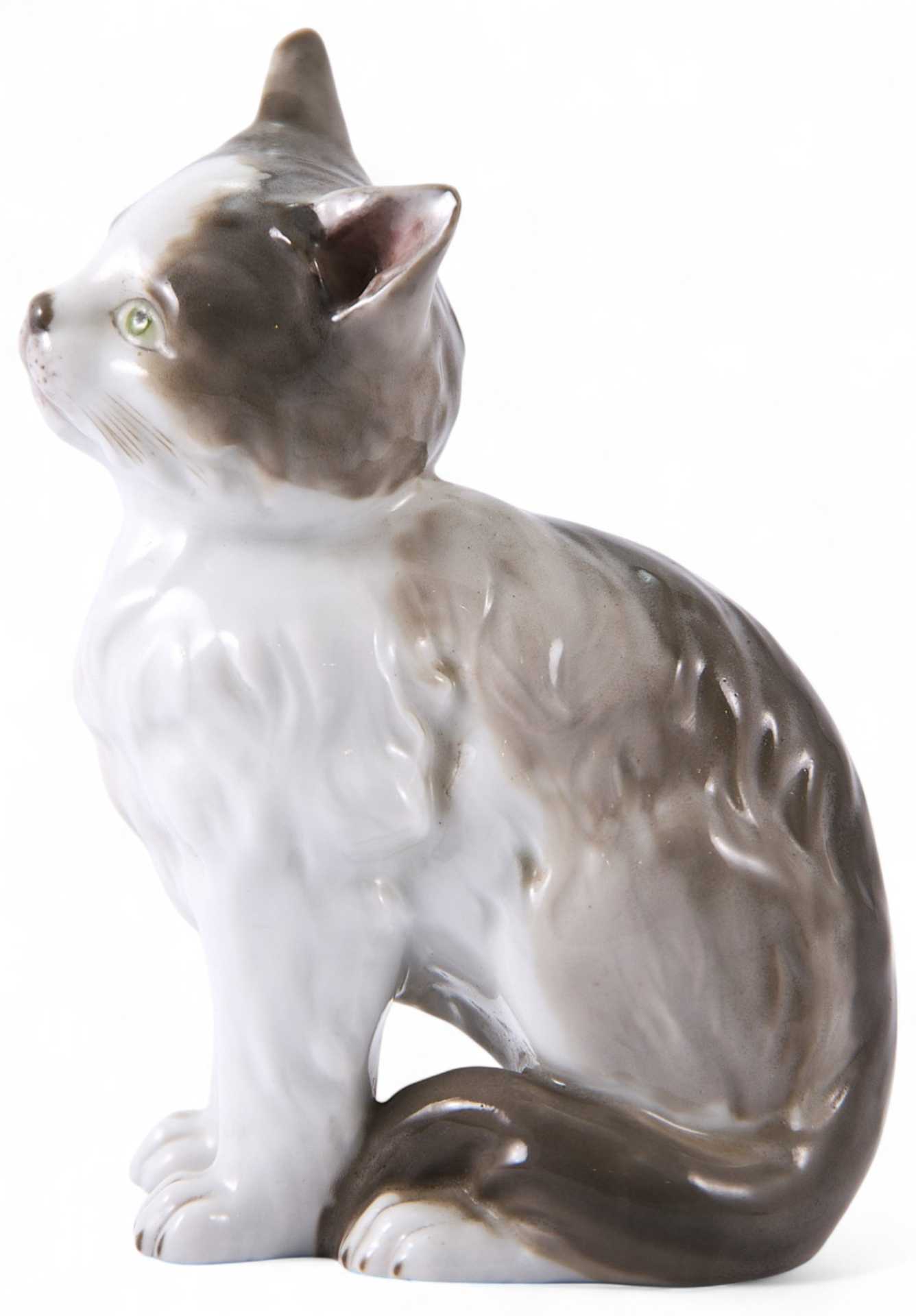 Фарфоровая скульптура сидящего котенка, на основании синее клеймо фирмы Heubach (Хойбах) Германия ставившееся в период с 1882 по 1915 гг.