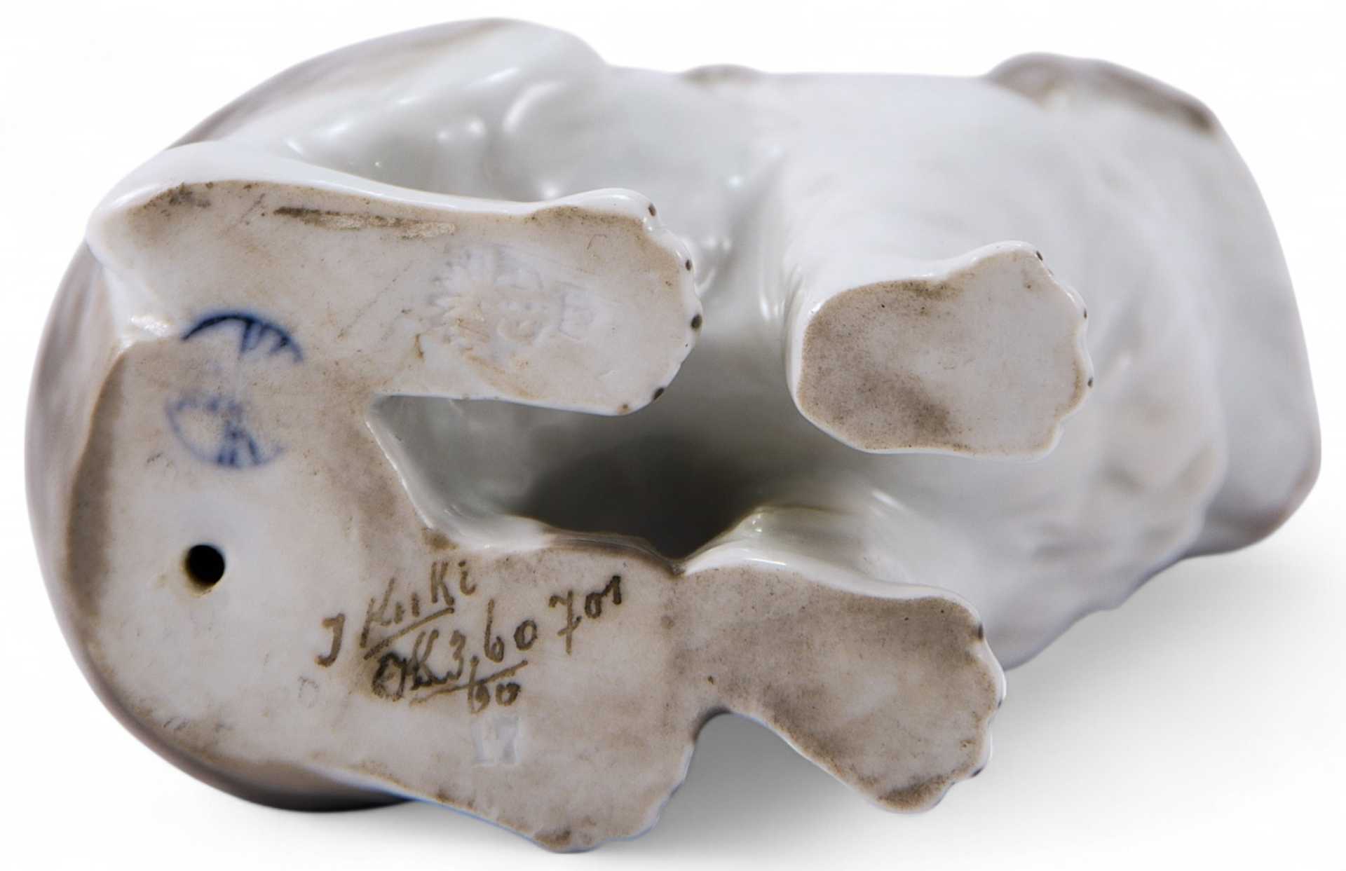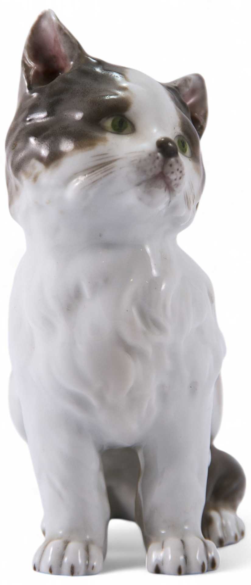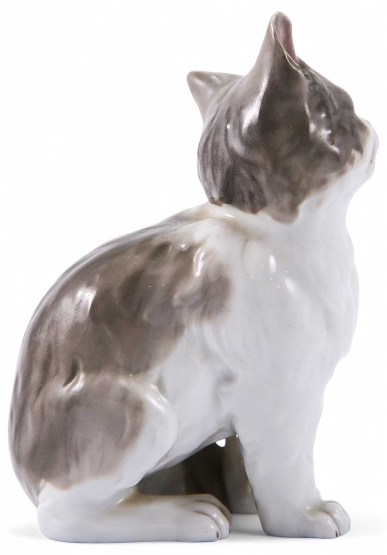 Фарфоровая скульптура сидящего котенка, на основании синее клеймо фирмы Heubach (Хойбах) Германия ставившееся в период с 1882 по 1915 гг.