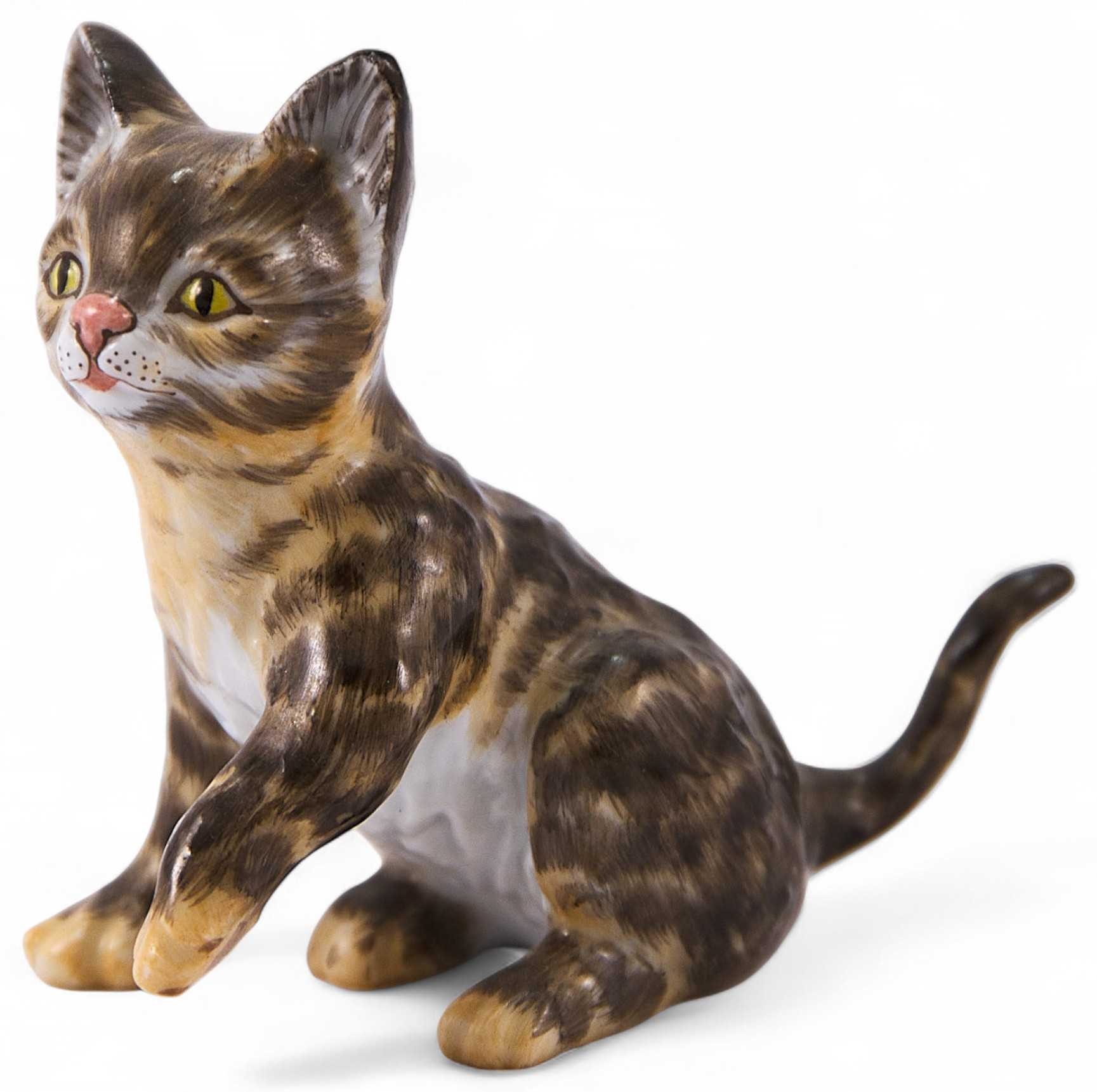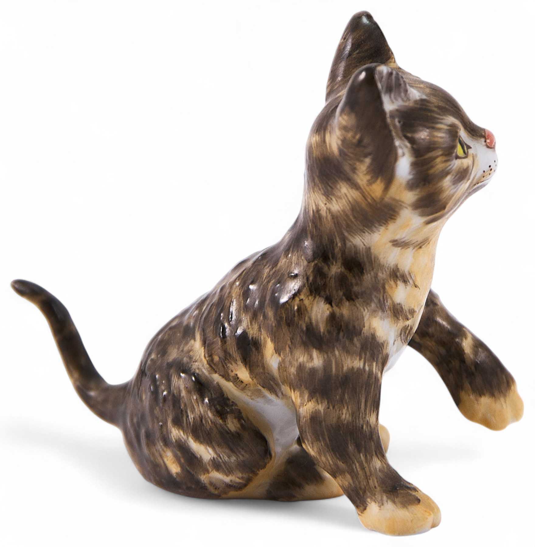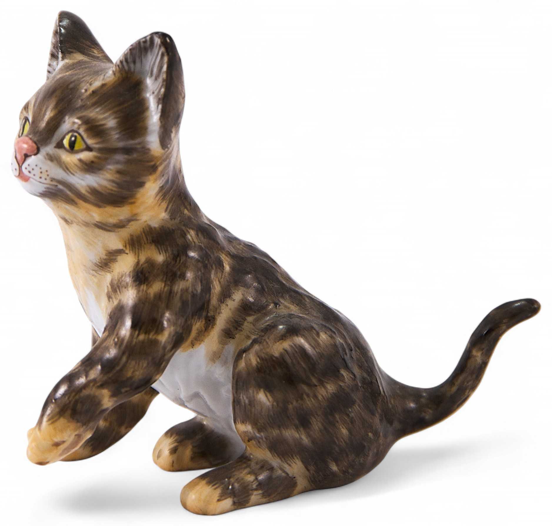 Представленная скульптура котенка, которая произведена на фарфоровой мануфактуре Аугартен (Вена).