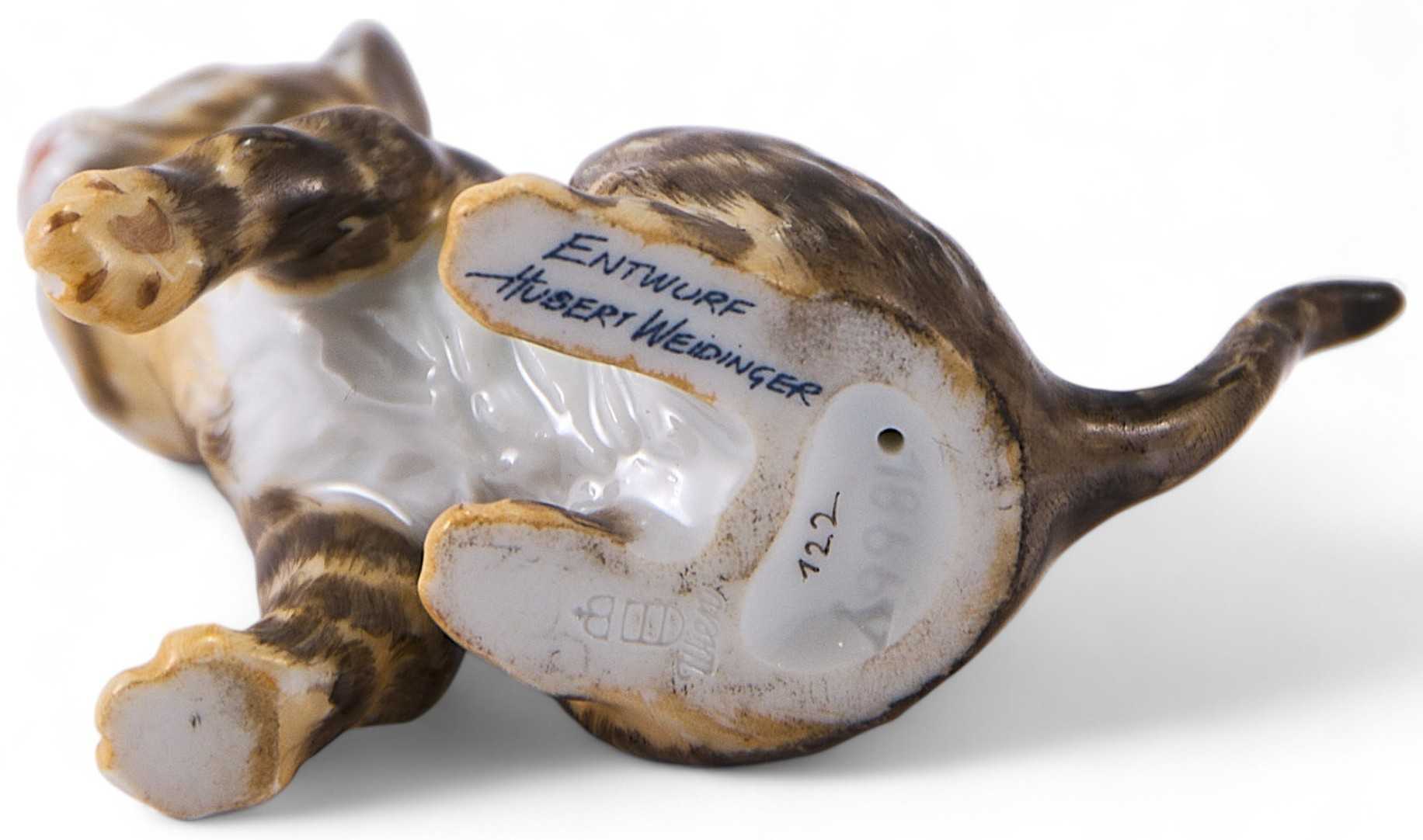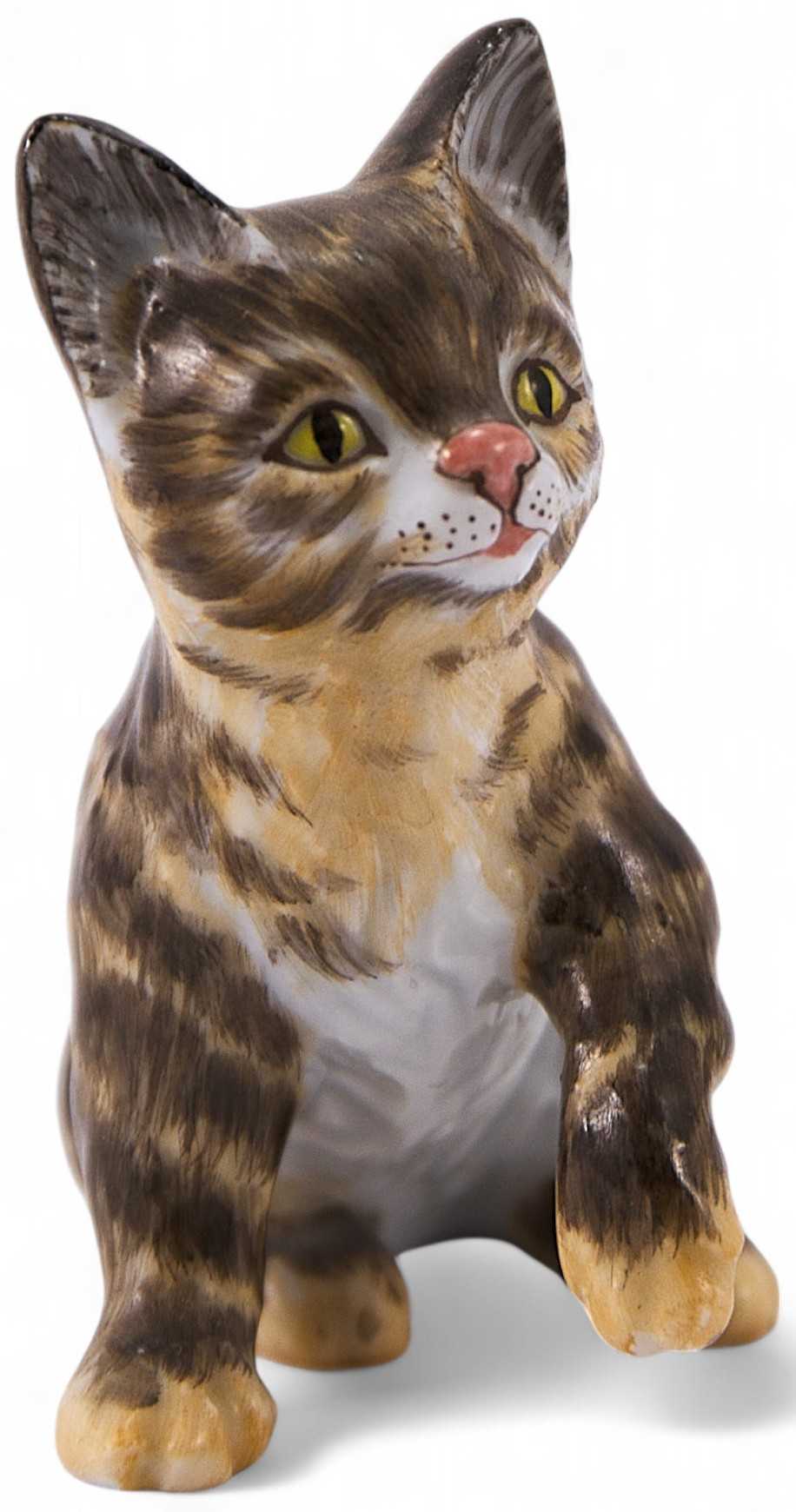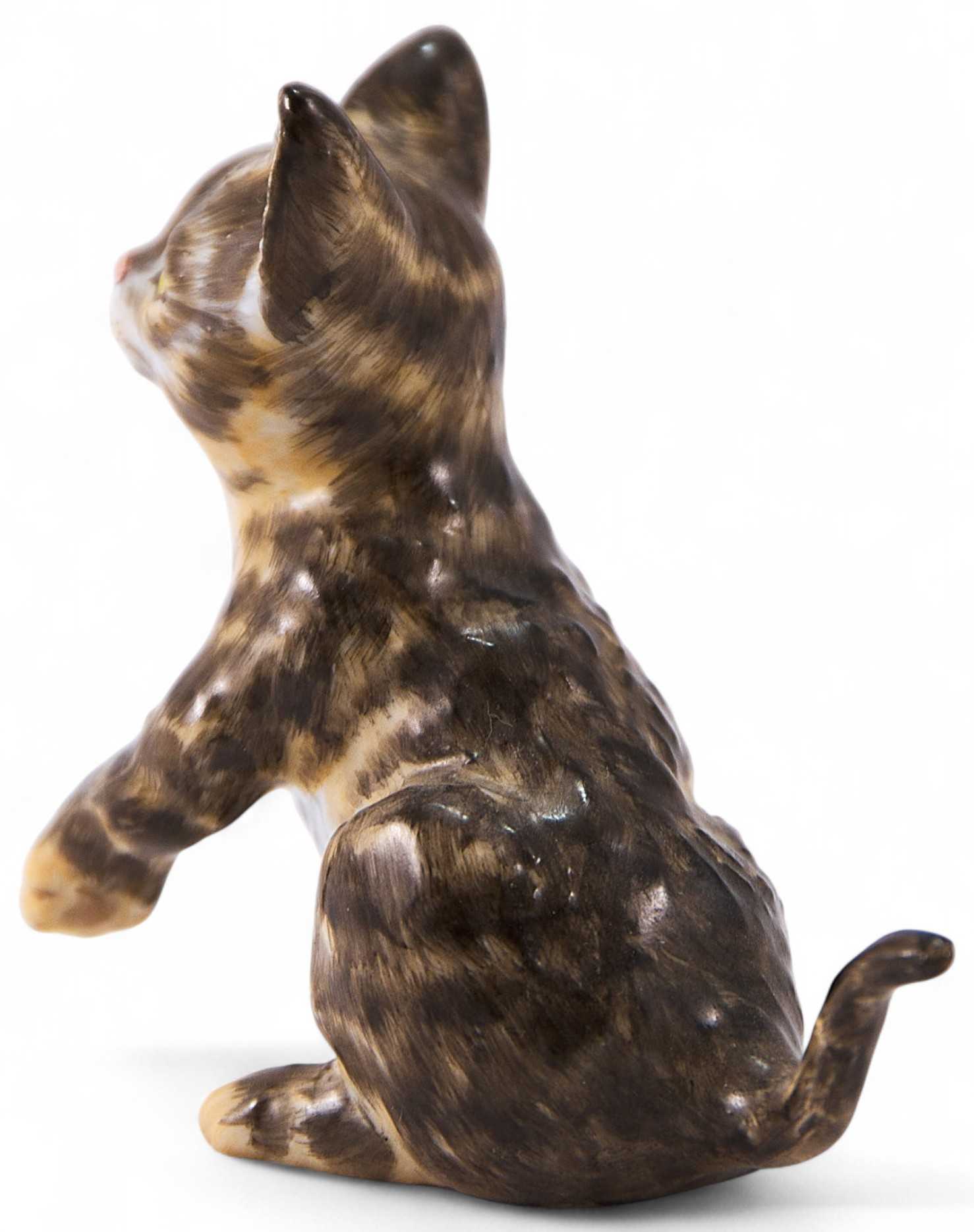 Представленная скульптура котенка, которая произведена на фарфоровой мануфактуре Аугартен (Вена).