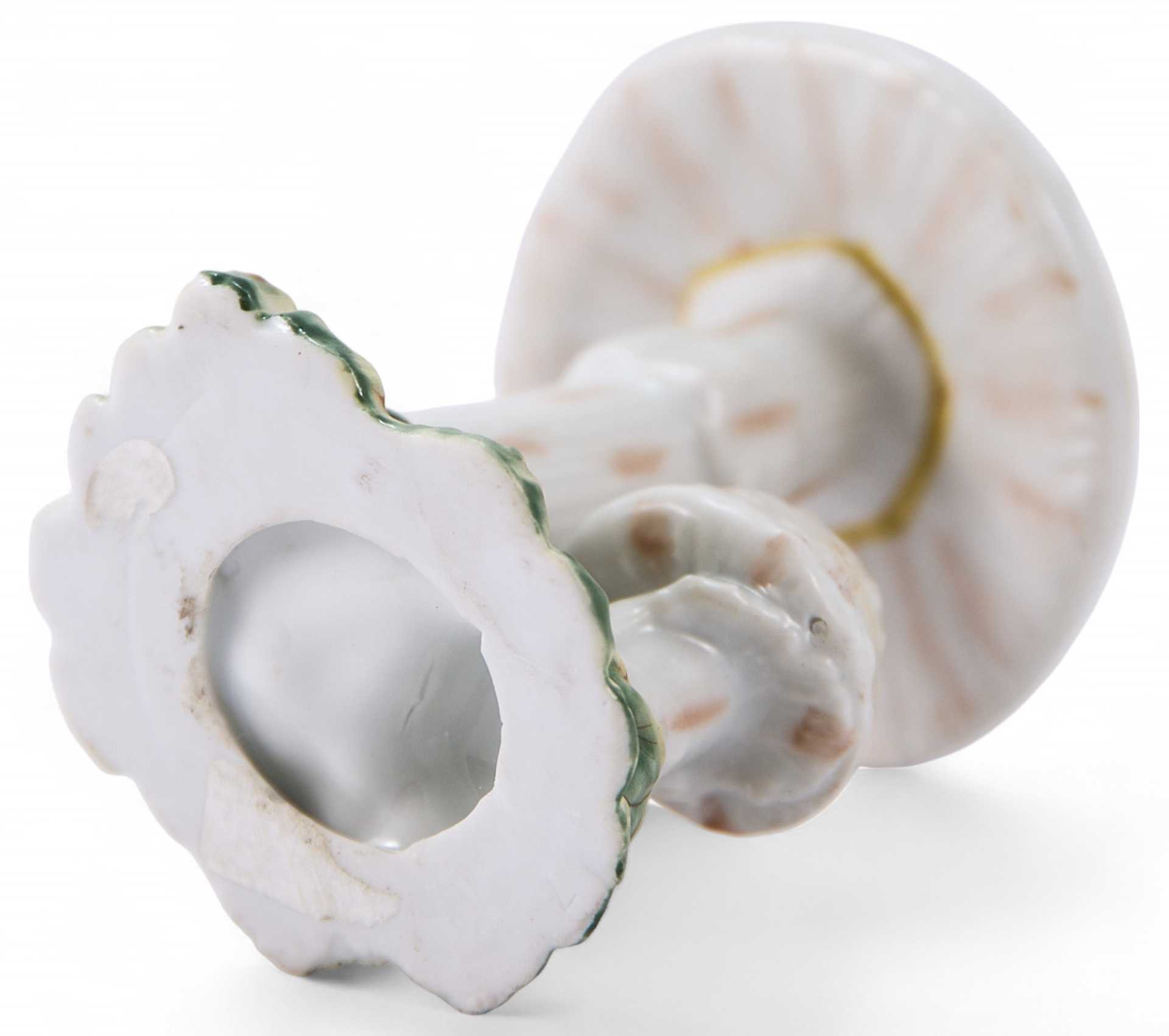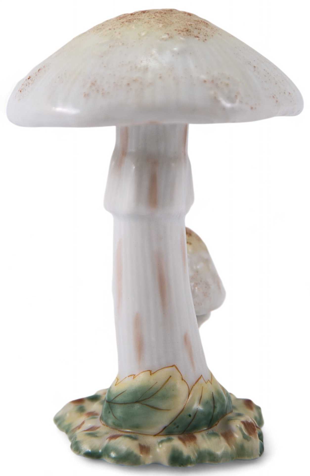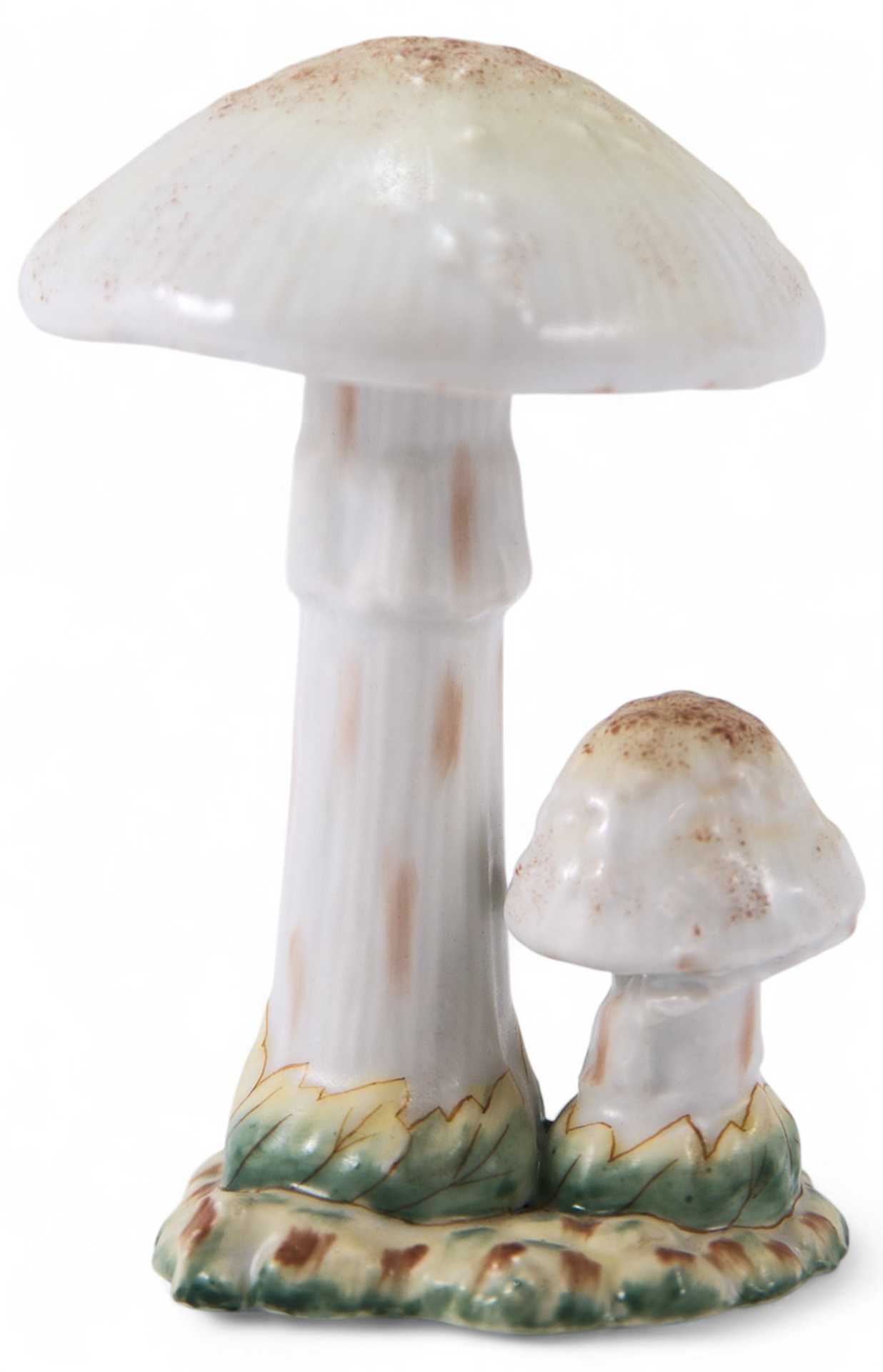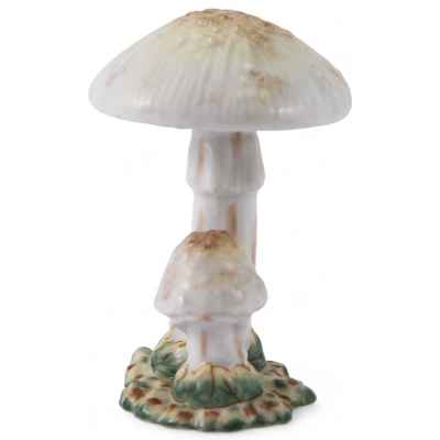 Представлена садовая декоративная фигура представляющая два гриба. Производство подобных декоративных фигур довольно широко распространено в европейском фарфоровом производстве начиная с середины ХХв. и предназначается для украшения небольших (обычно домашних) миниатюрных садов и клумб.