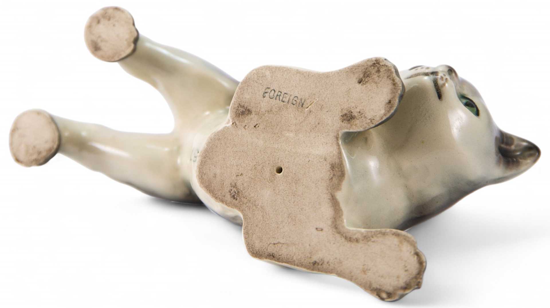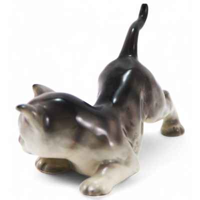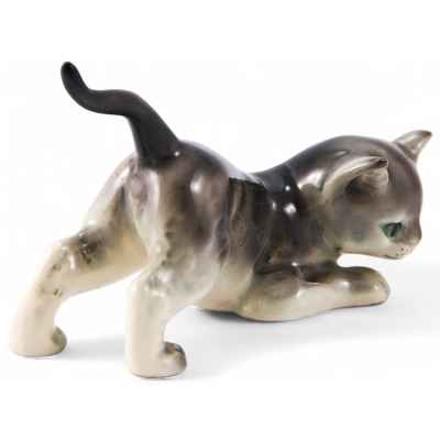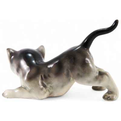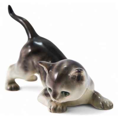 Представлена скульптура крадущегося котенка. На скульптуре имеются клейма: печатное клеймо фабрики-изготовителя — фабрика фарфора Розенталь, с подписью «Bavaria» с одной точкой под буквами «ѵа», что указывает на приблизительную датировку — около 1926 г.;