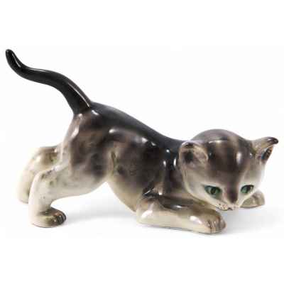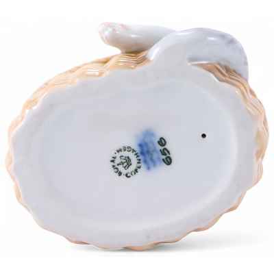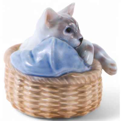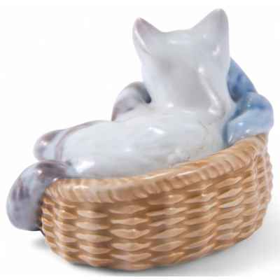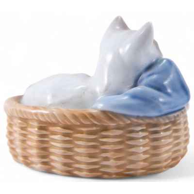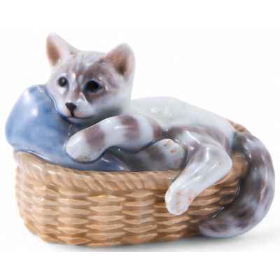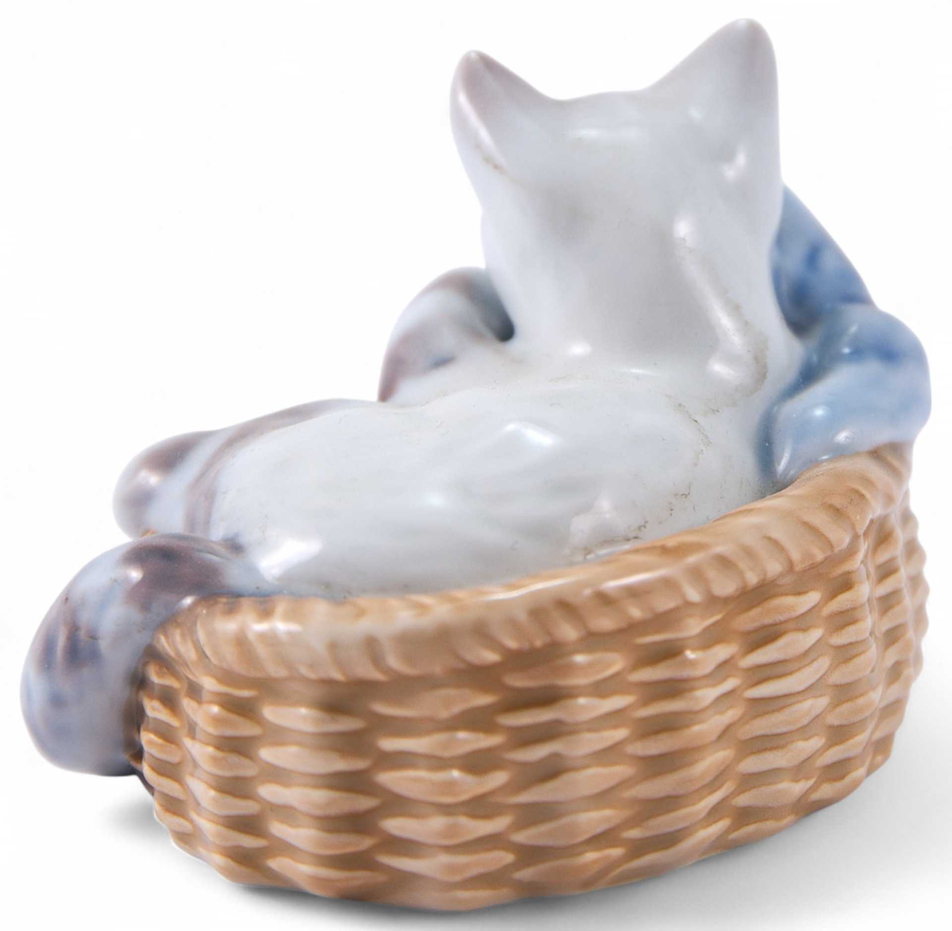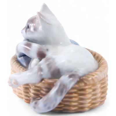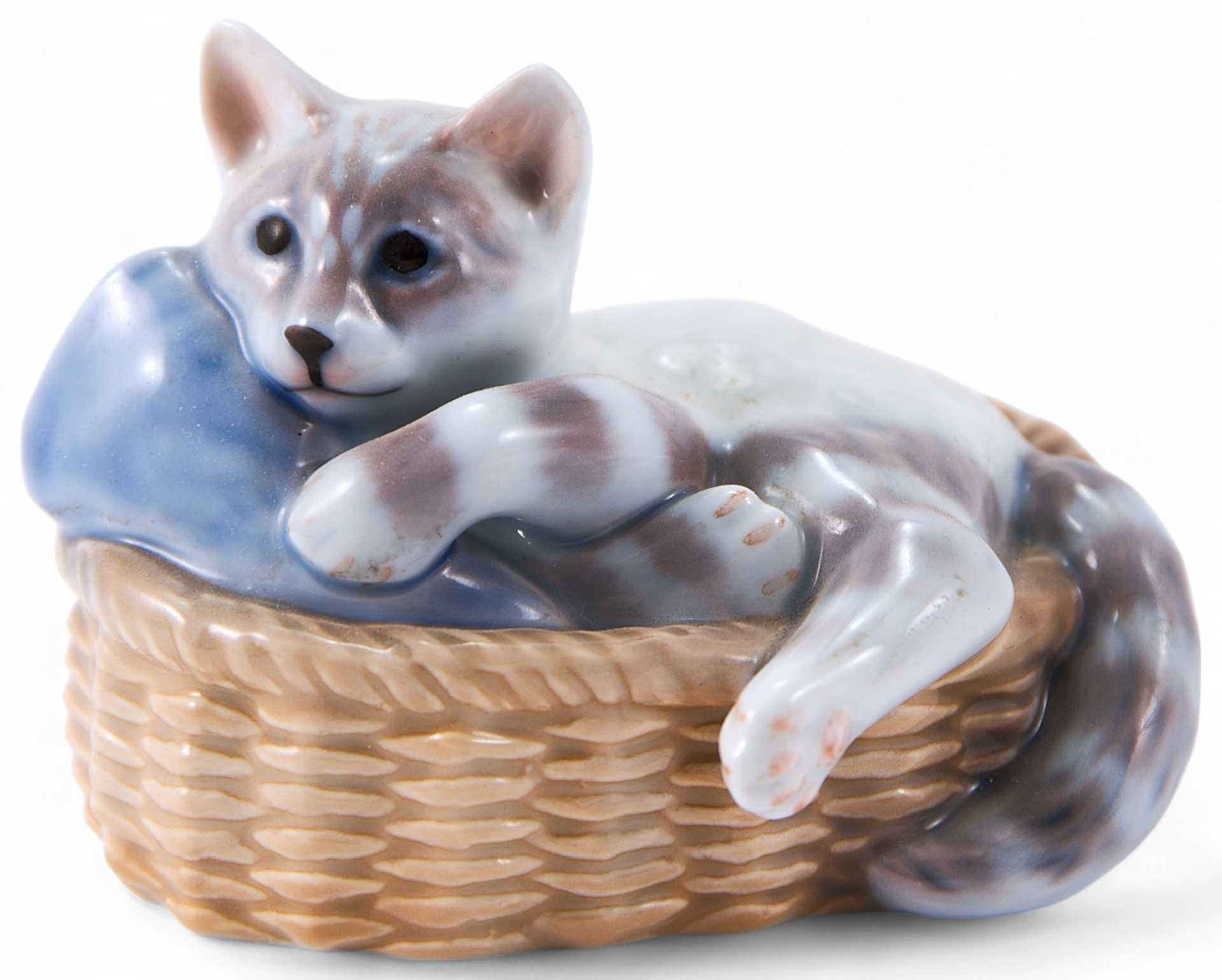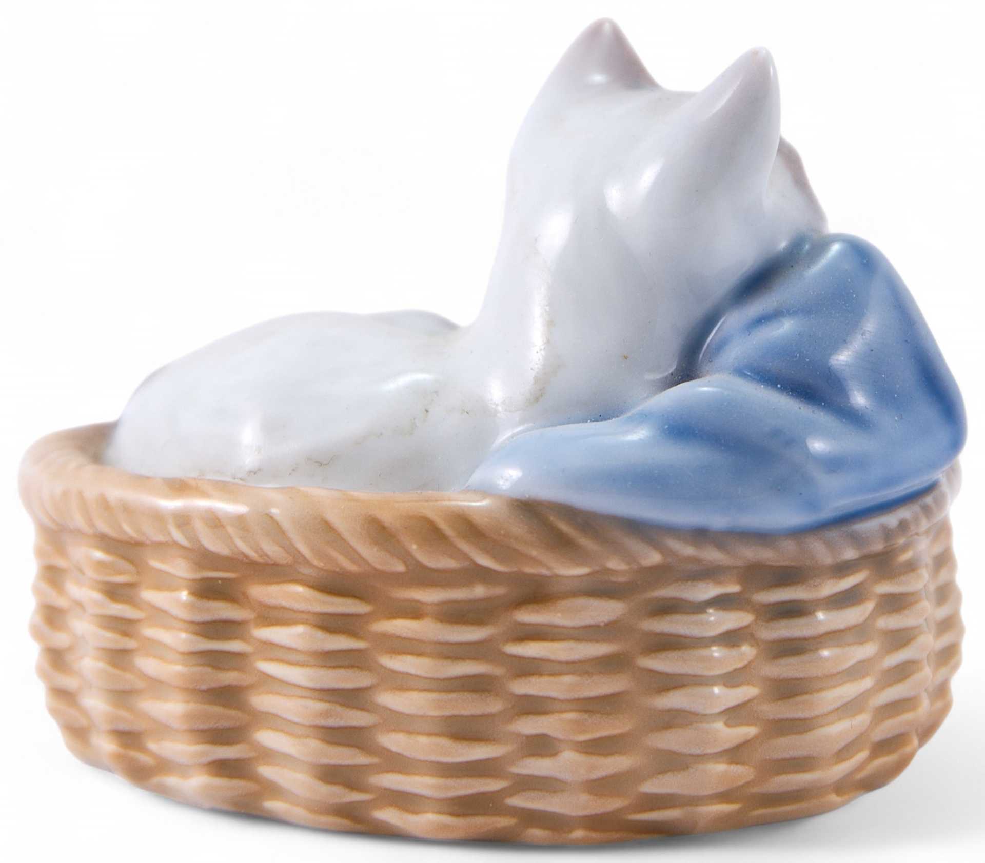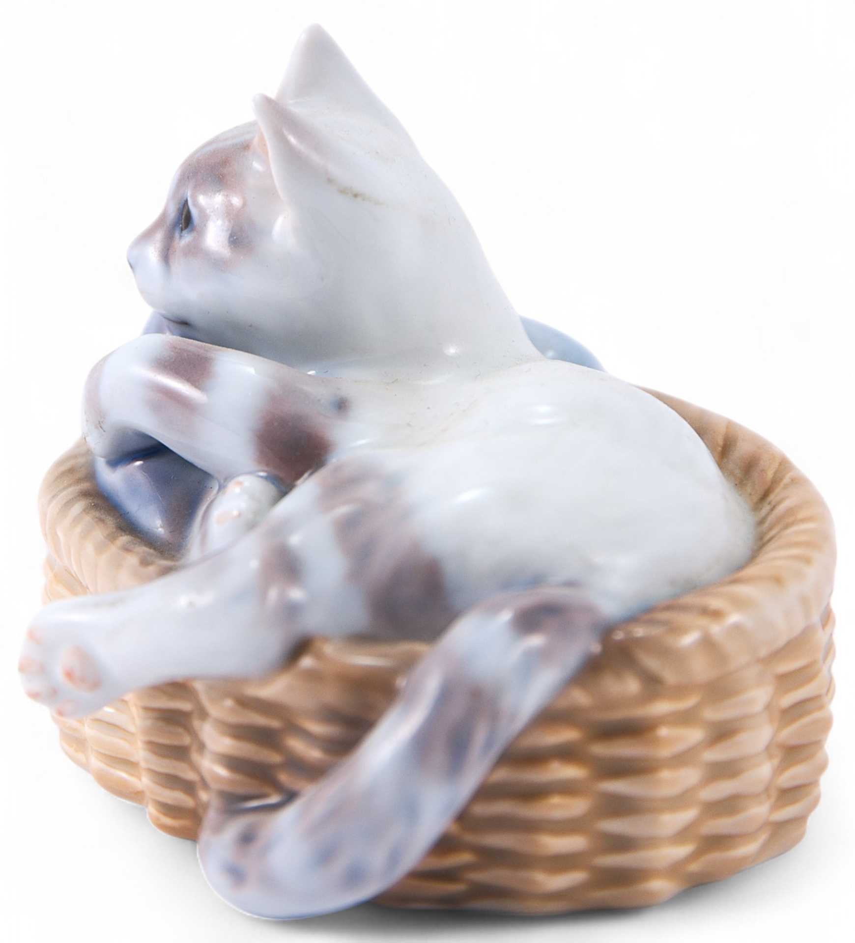 Скульптура котенка лежащего в корзинке. На основании фигуры клеймо Королевской копенгагенской фарфоровой мануфактуры. Royal Copenhagen Factory Основана в 1775 г. Франком Хенриком Мюллером.