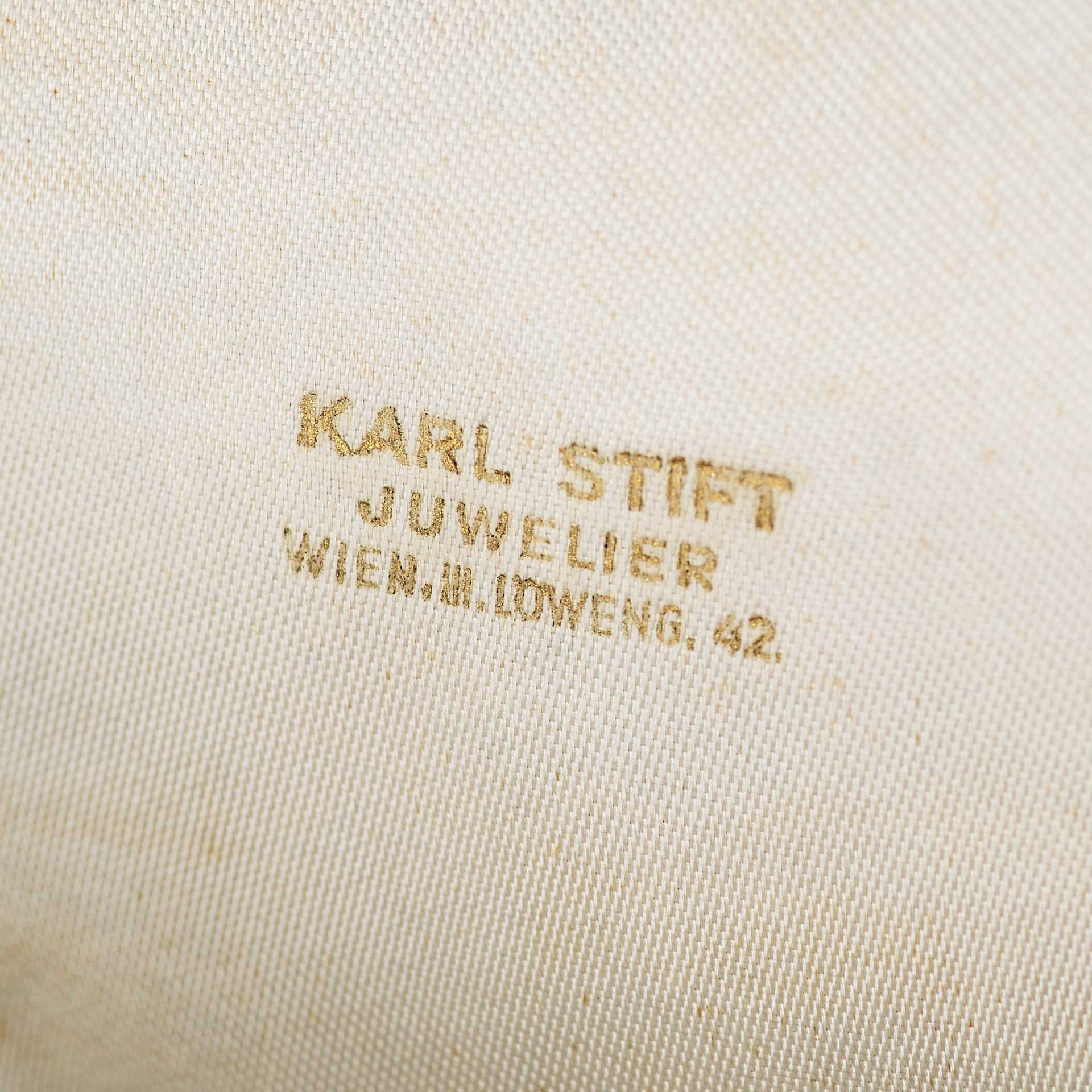1. Голова Дианы, в пятиугольном лепестковом картуше, увенчанная диадемой обращена вправо, с пробирными обозначениями 3, А - клеймо для изделий из серебра 800 пробы, принятое в Австрии с 1872 по 1922 гг. Буква «А» указывает