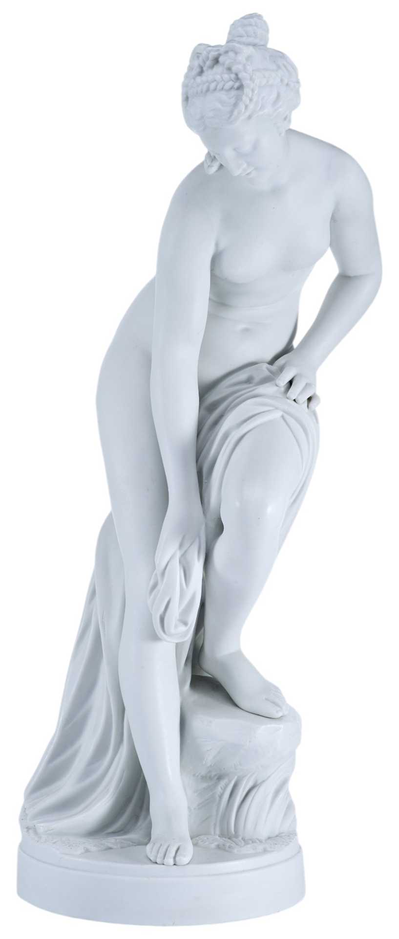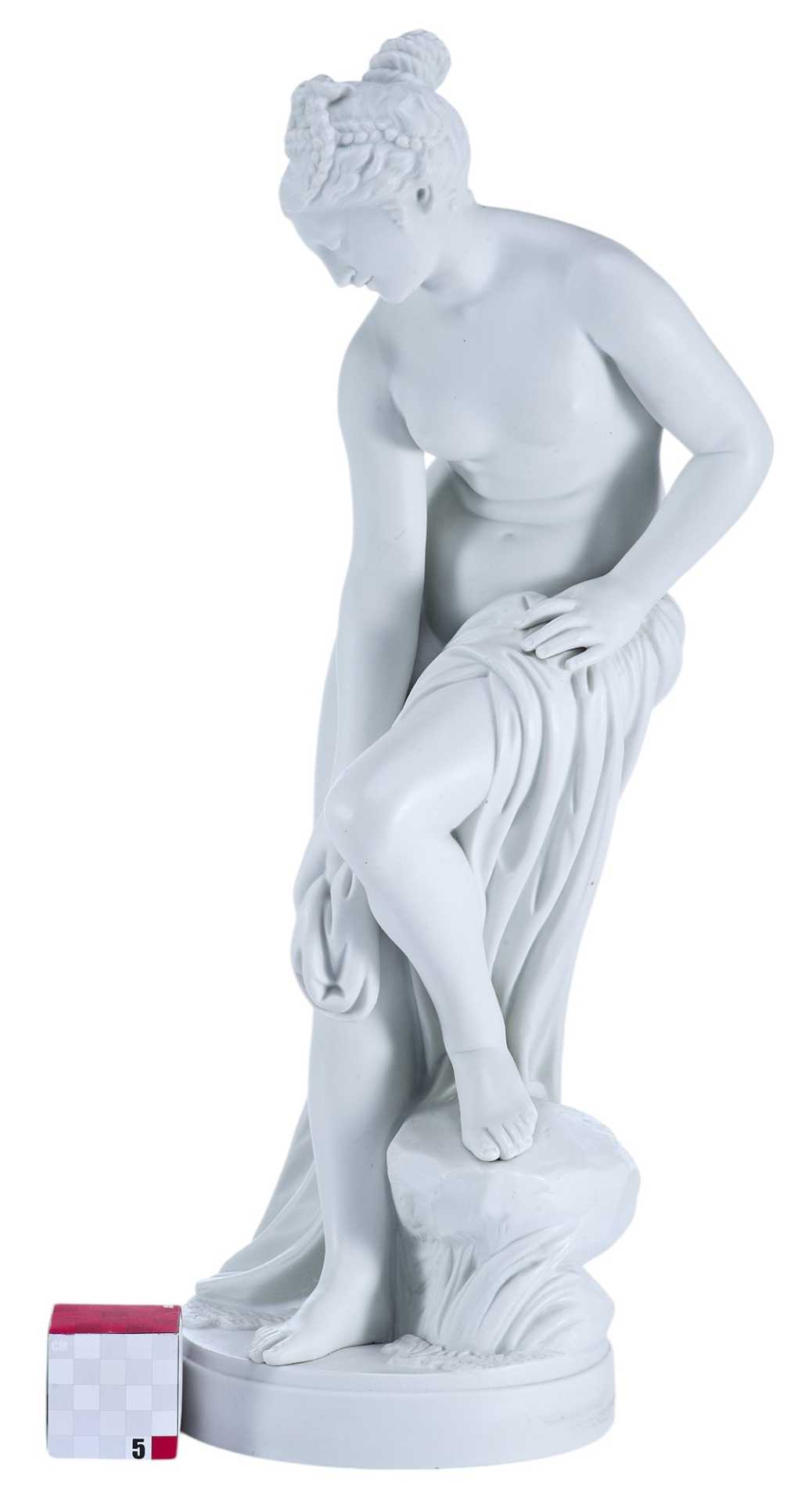 Скульптура обнаженной женщины, обтирающей свои ноги полотенцем, после купания.