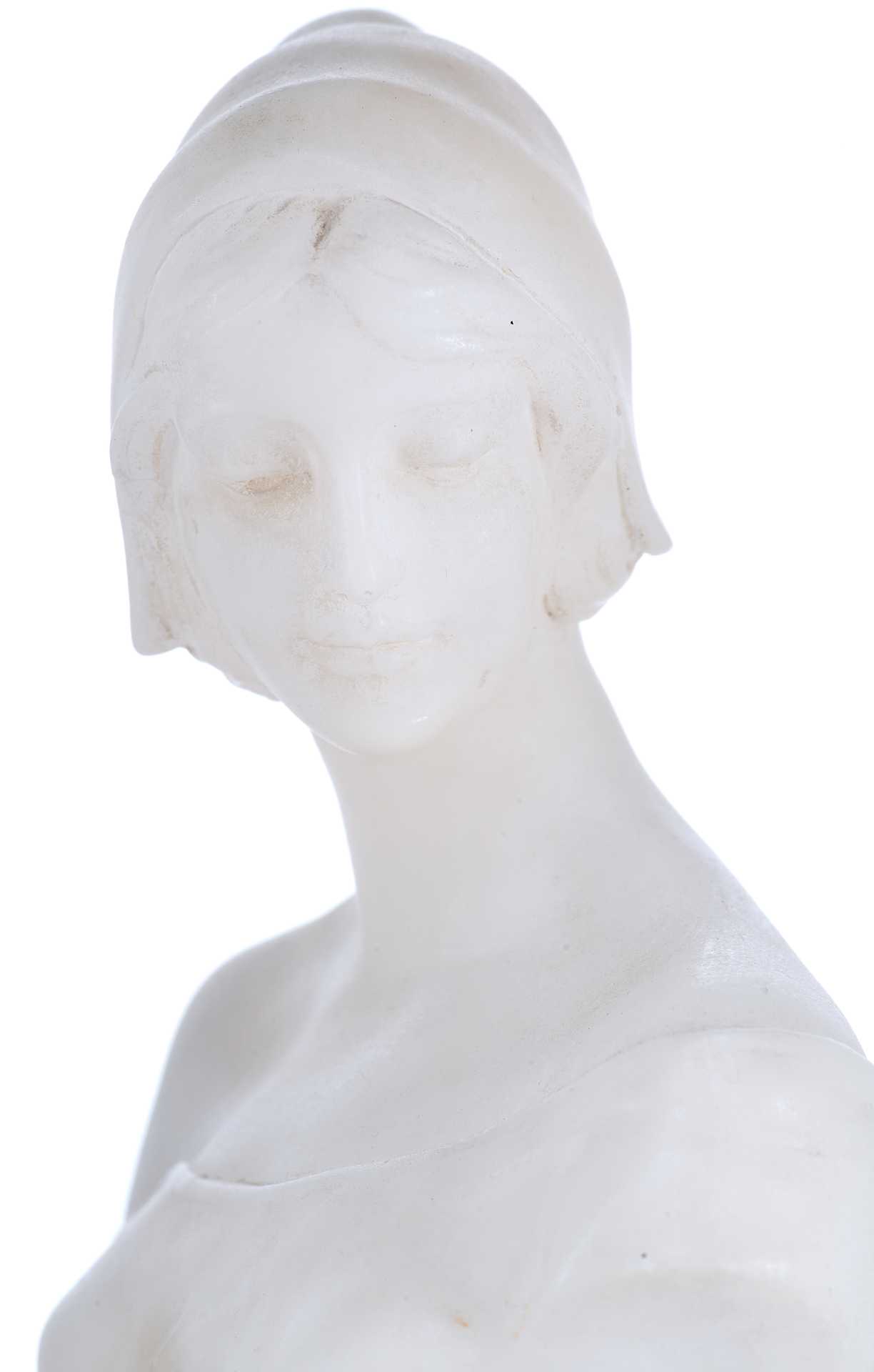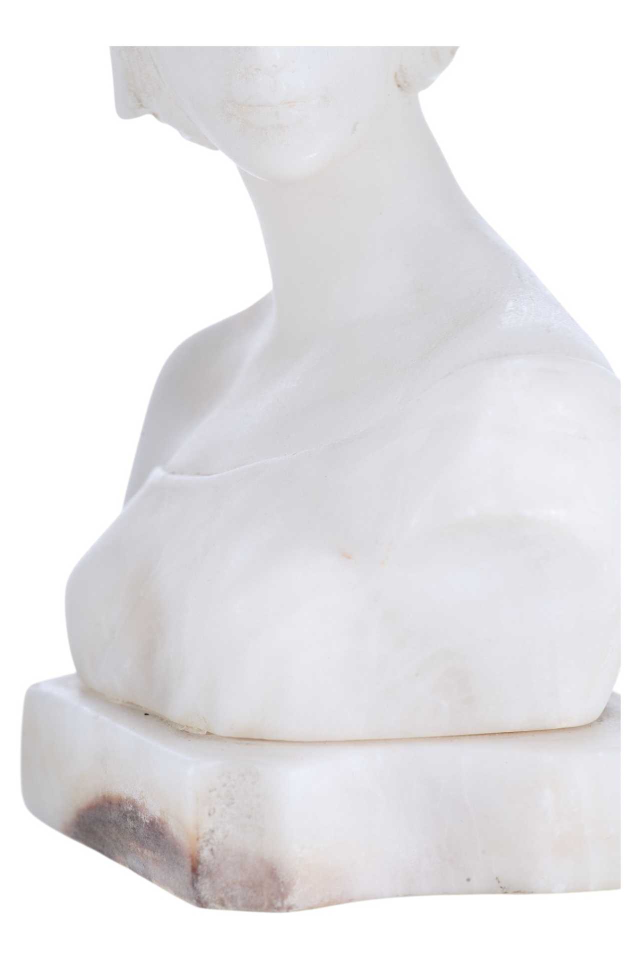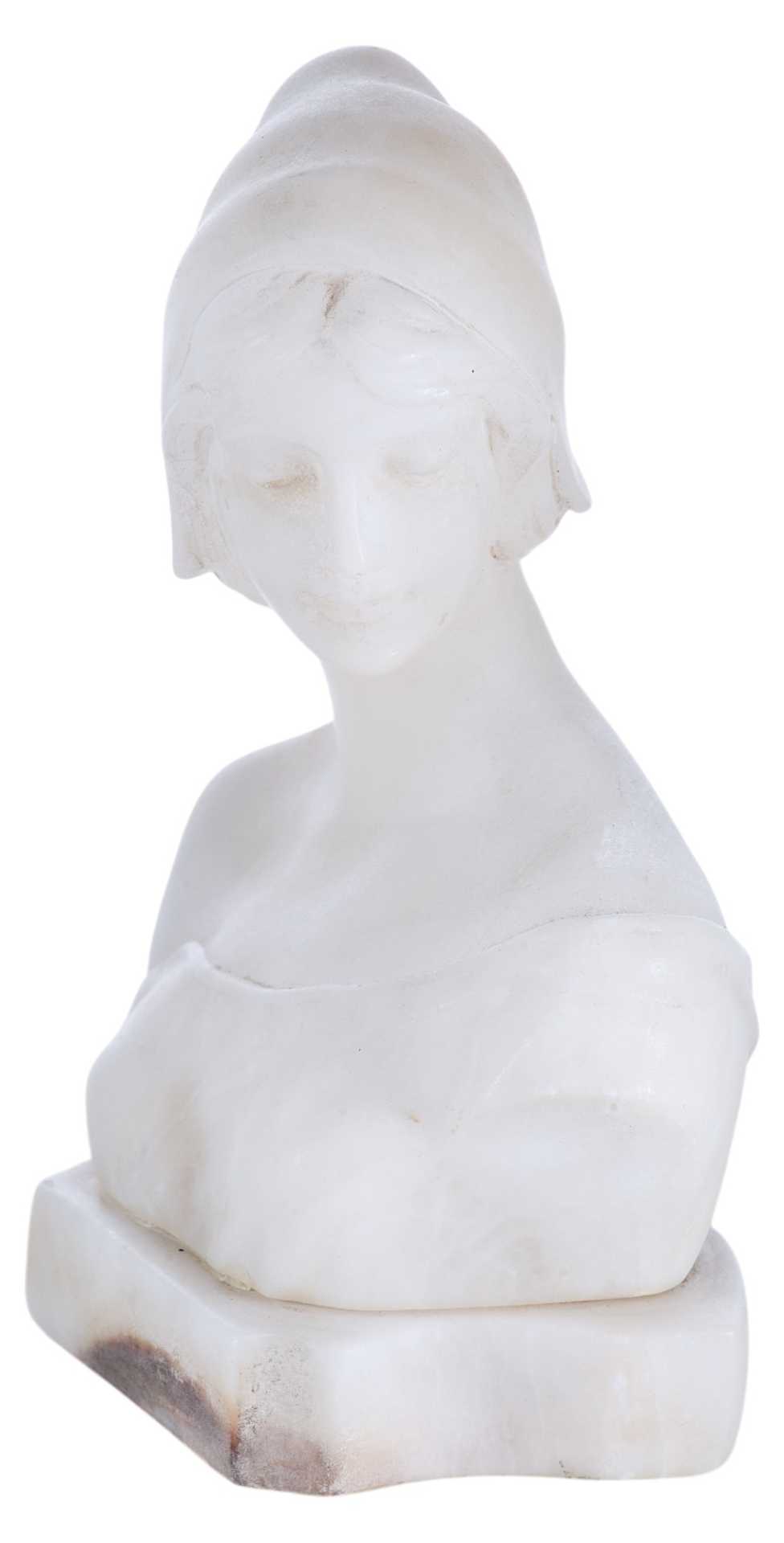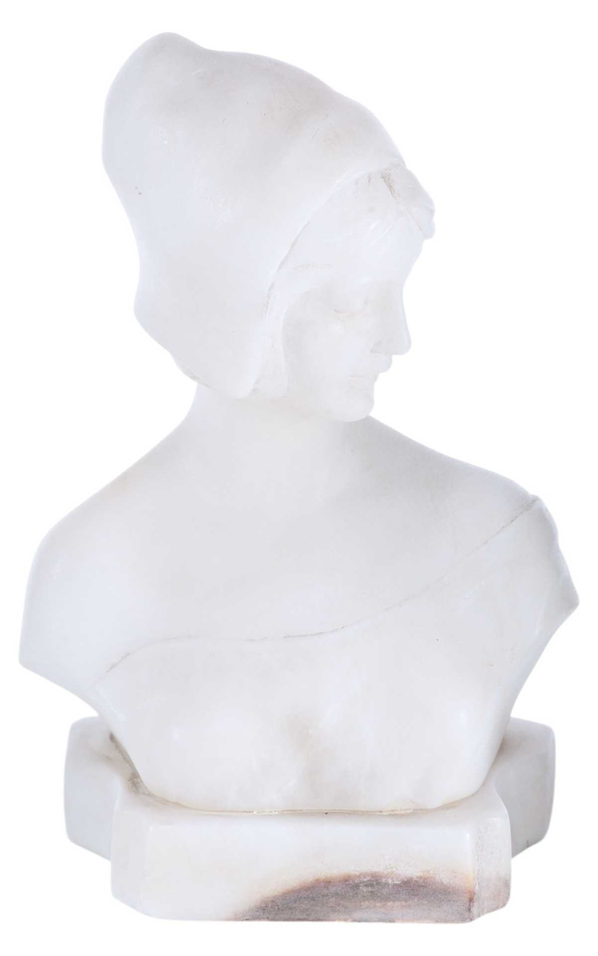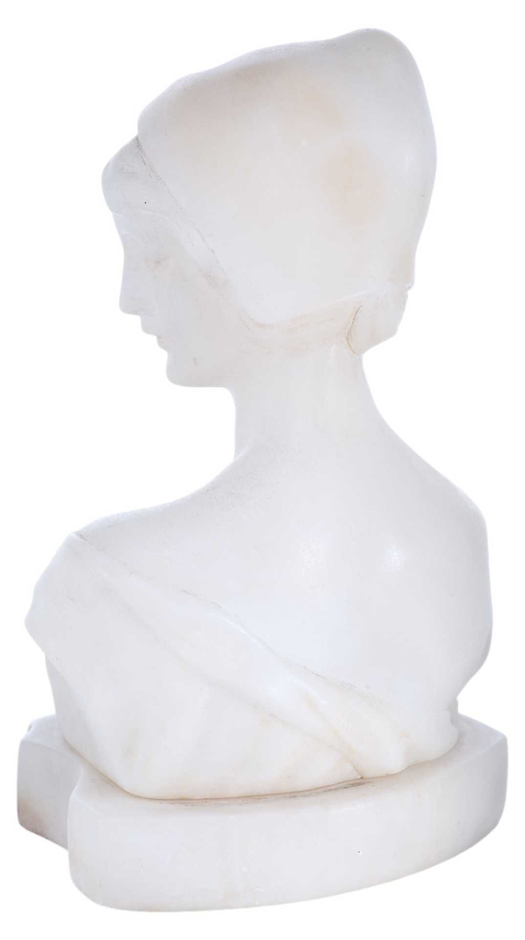 Бюст девушки в чепце, вырезанный вручную из алебастра.