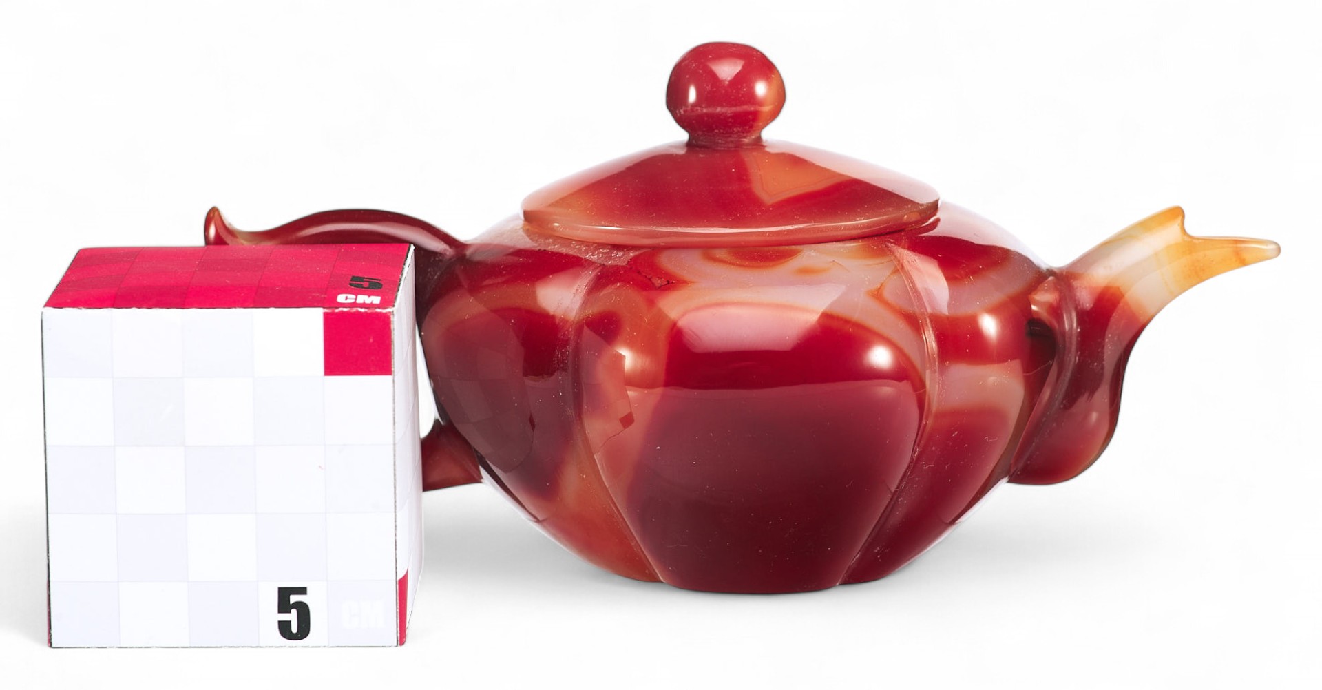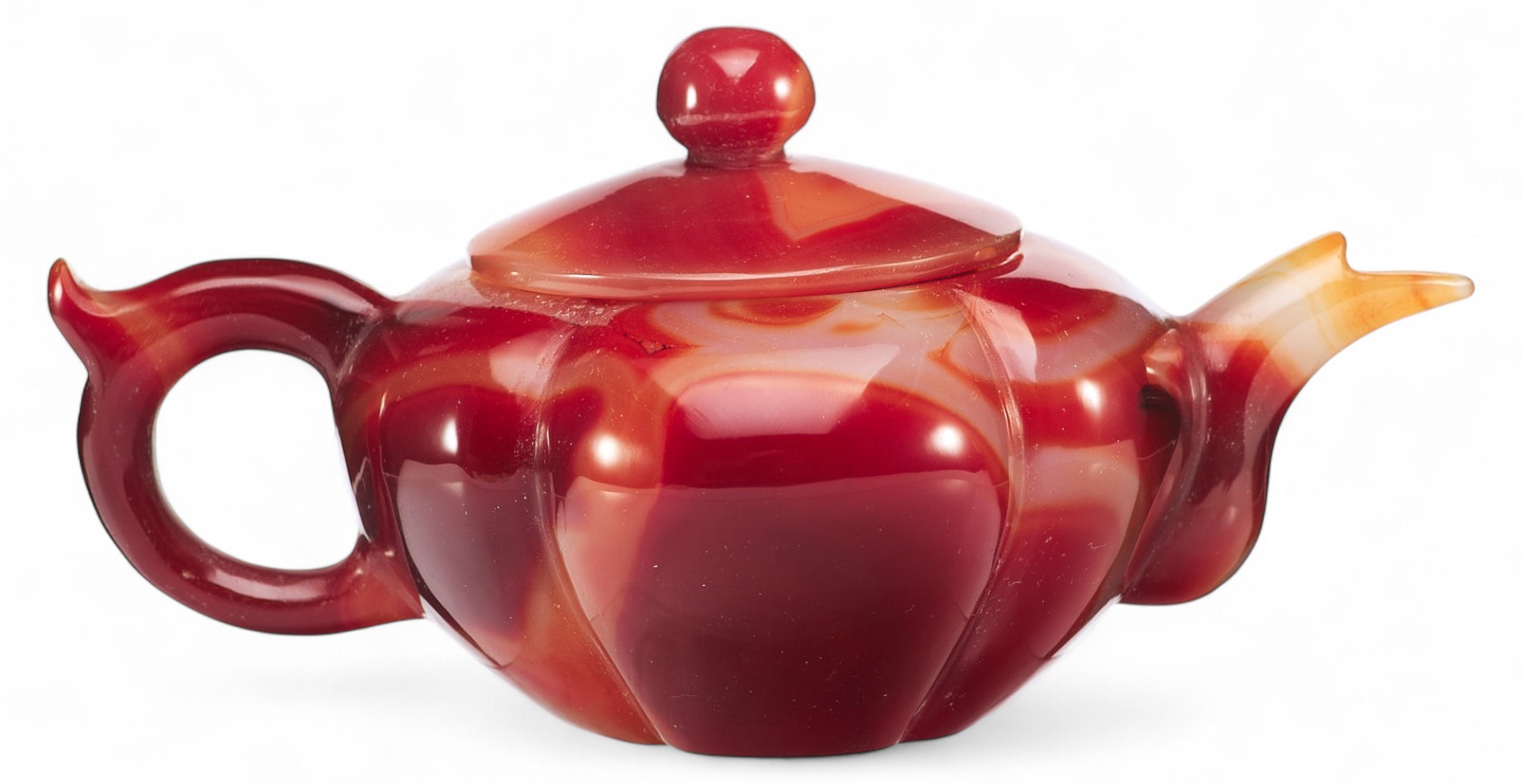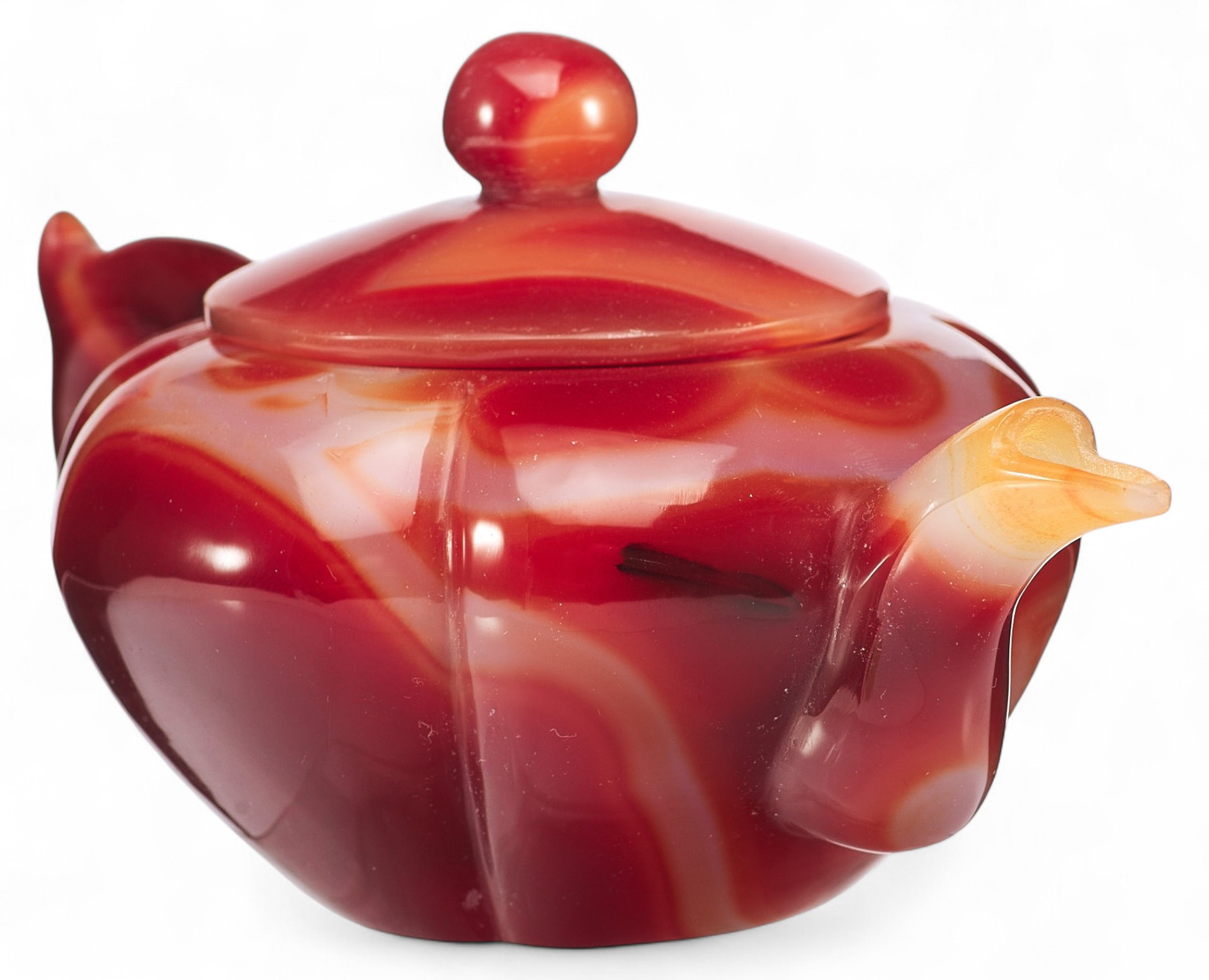 Представлен чайник, выполненный из слоистого агата. Форма чайника соответствует аналогичным китайским образцам.