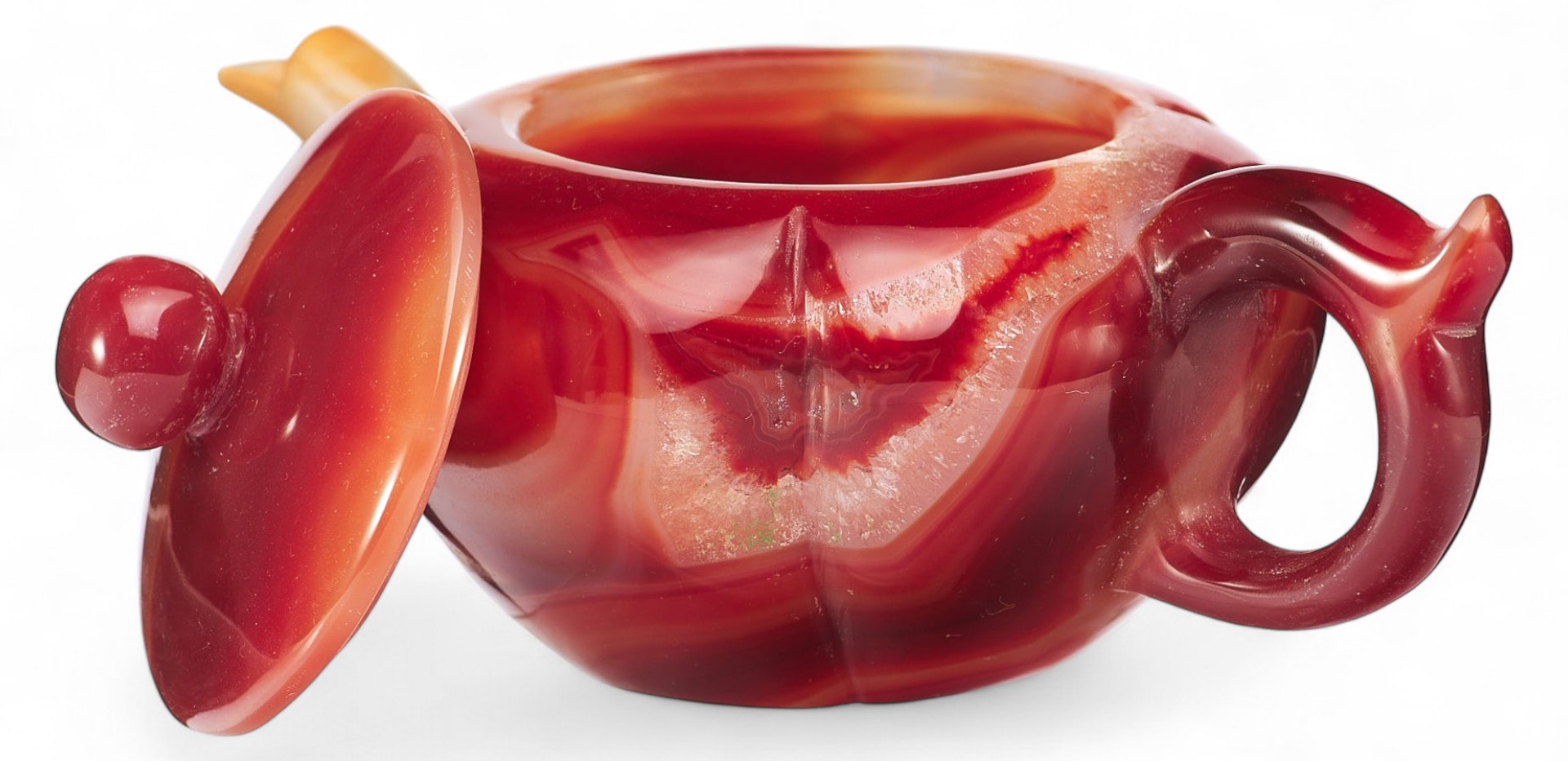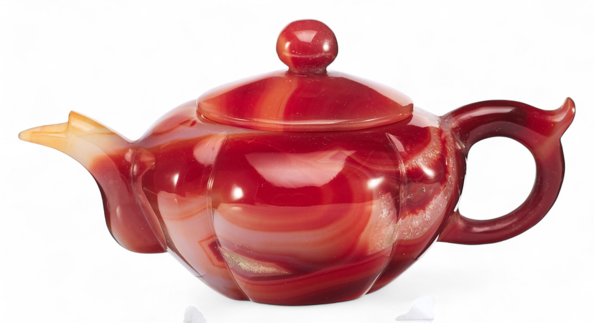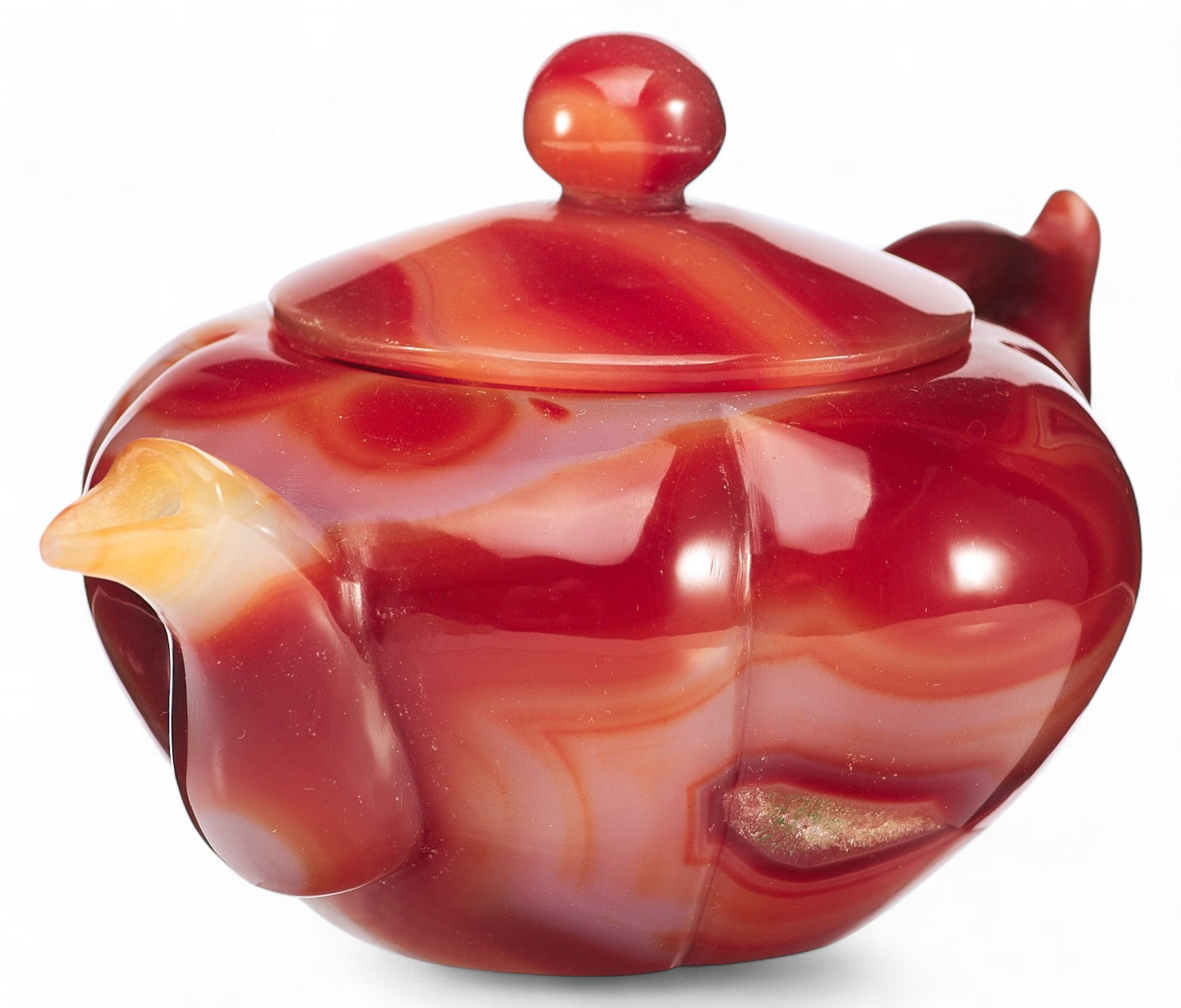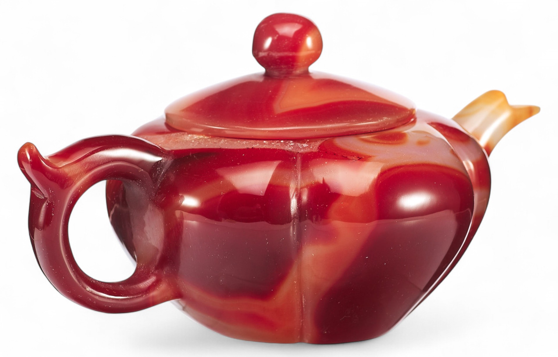 Представлен чайник, выполненный из слоистого агата. Форма чайника соответствует аналогичным китайским образцам.