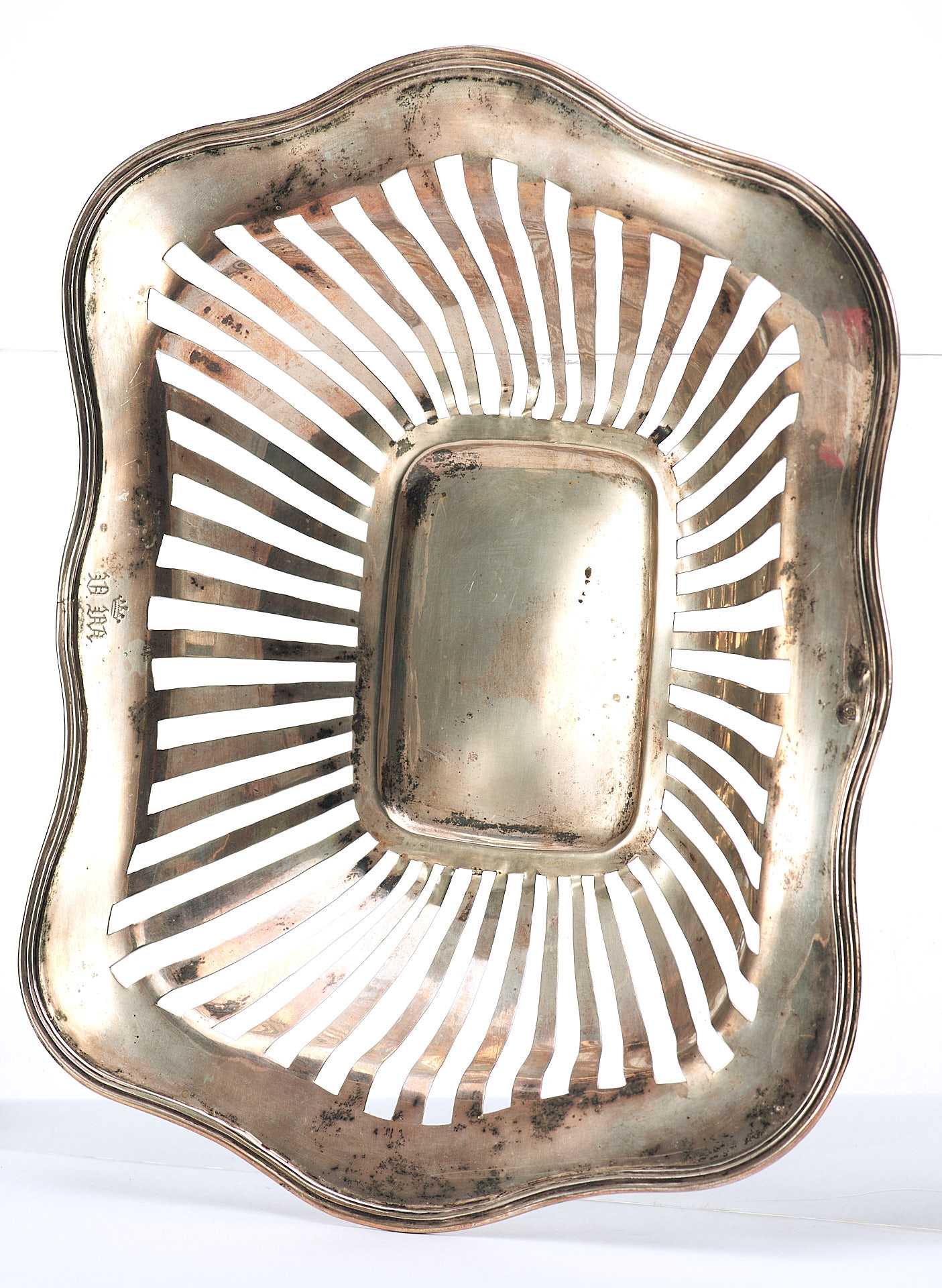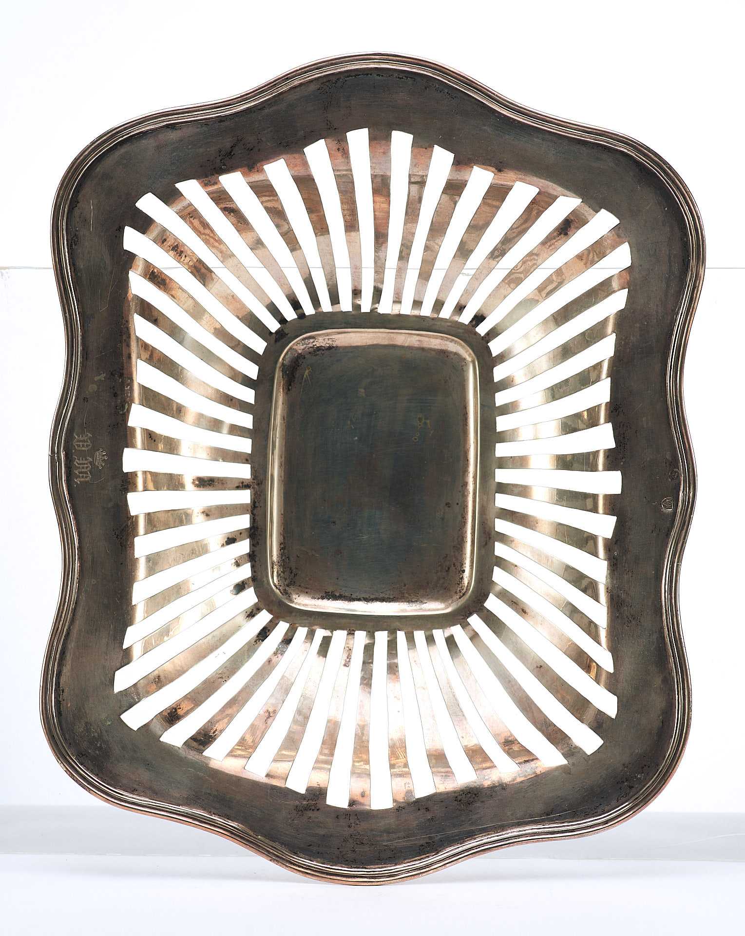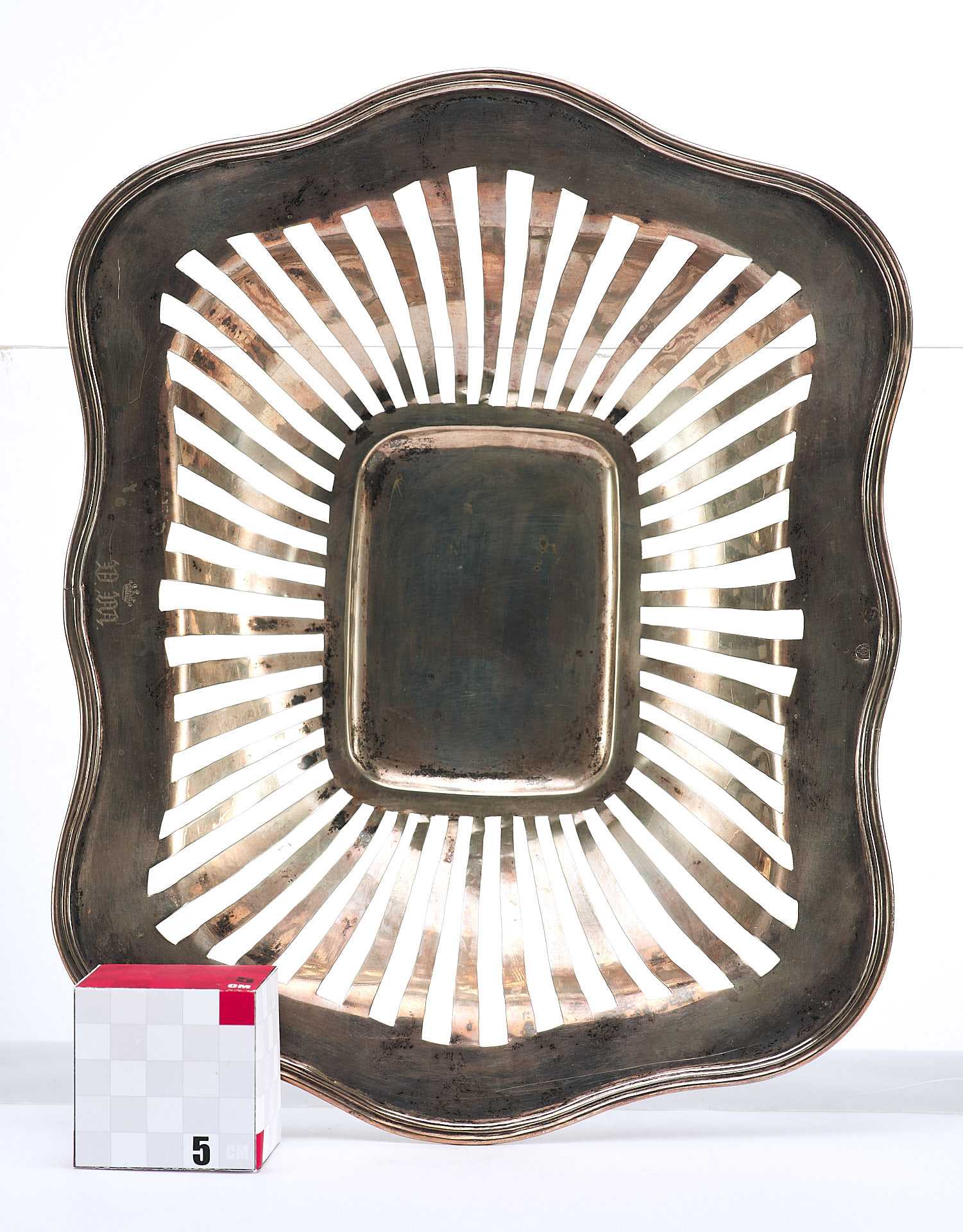 На экспертизу представлена серебряная сухарница с волнообразными краями.