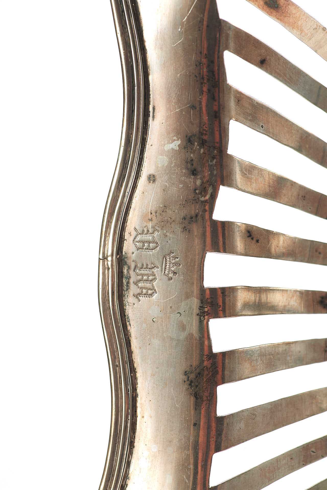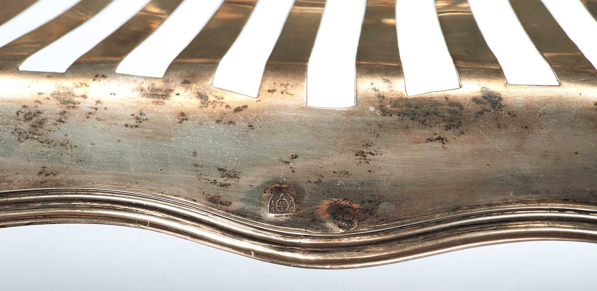 1. Австрийское клеймо, ставившееся на изделиях из серебра до 1867 г. с указанием даты производства — 1861, местом производства — литера «А» (Вена) и числовым указателем пробы серебра — «13» (812-1000).