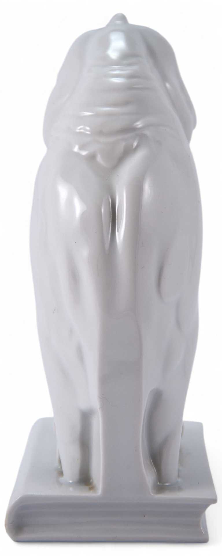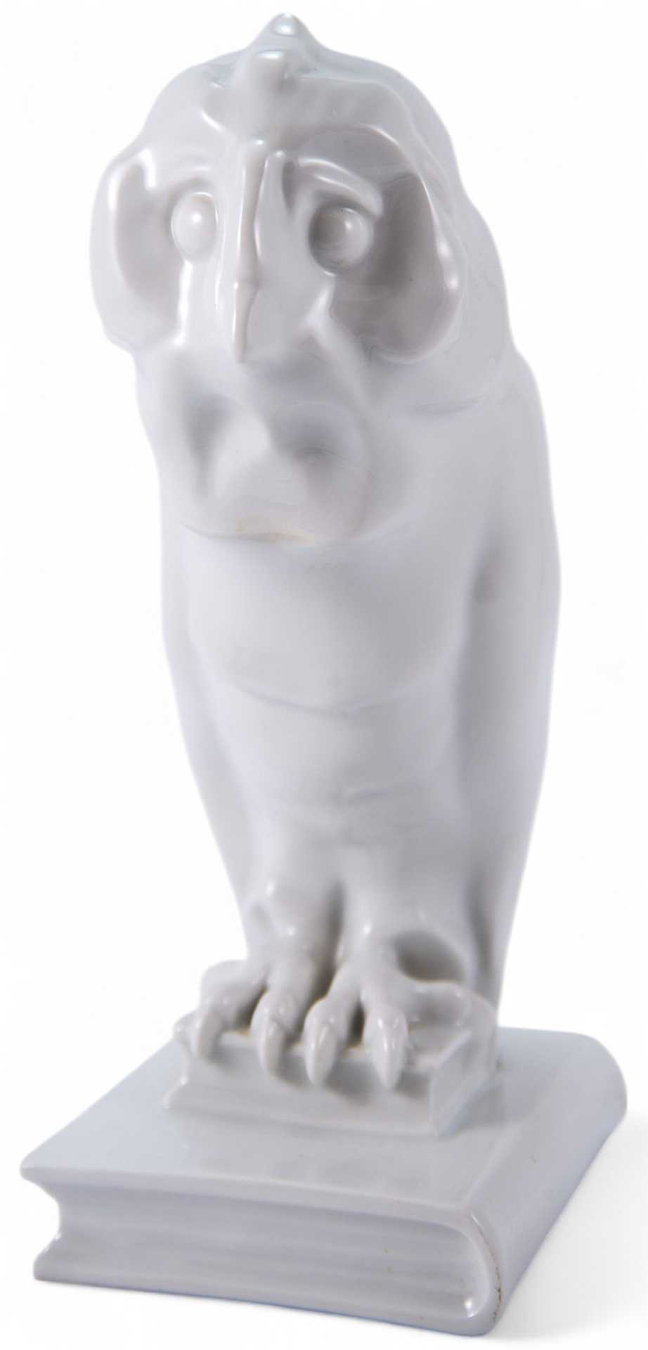 Представлена скульптура совы, сидящей на книге. Сова является символом мудрости и проницательности. В античные времена сова становится атрибутом одной из почитаемых греческих богинь Афины Пронойи (Провидящей). От афинской традиции ведет свое происхождение мудрая сова в европейских сказках и баснях, и эмблематическое изображение мудрости — сова, сидящая на стопке книг. На основании клеймо фарфоровой фабрики Херенд (Herend), которое ставилось в период 1950-х гг.